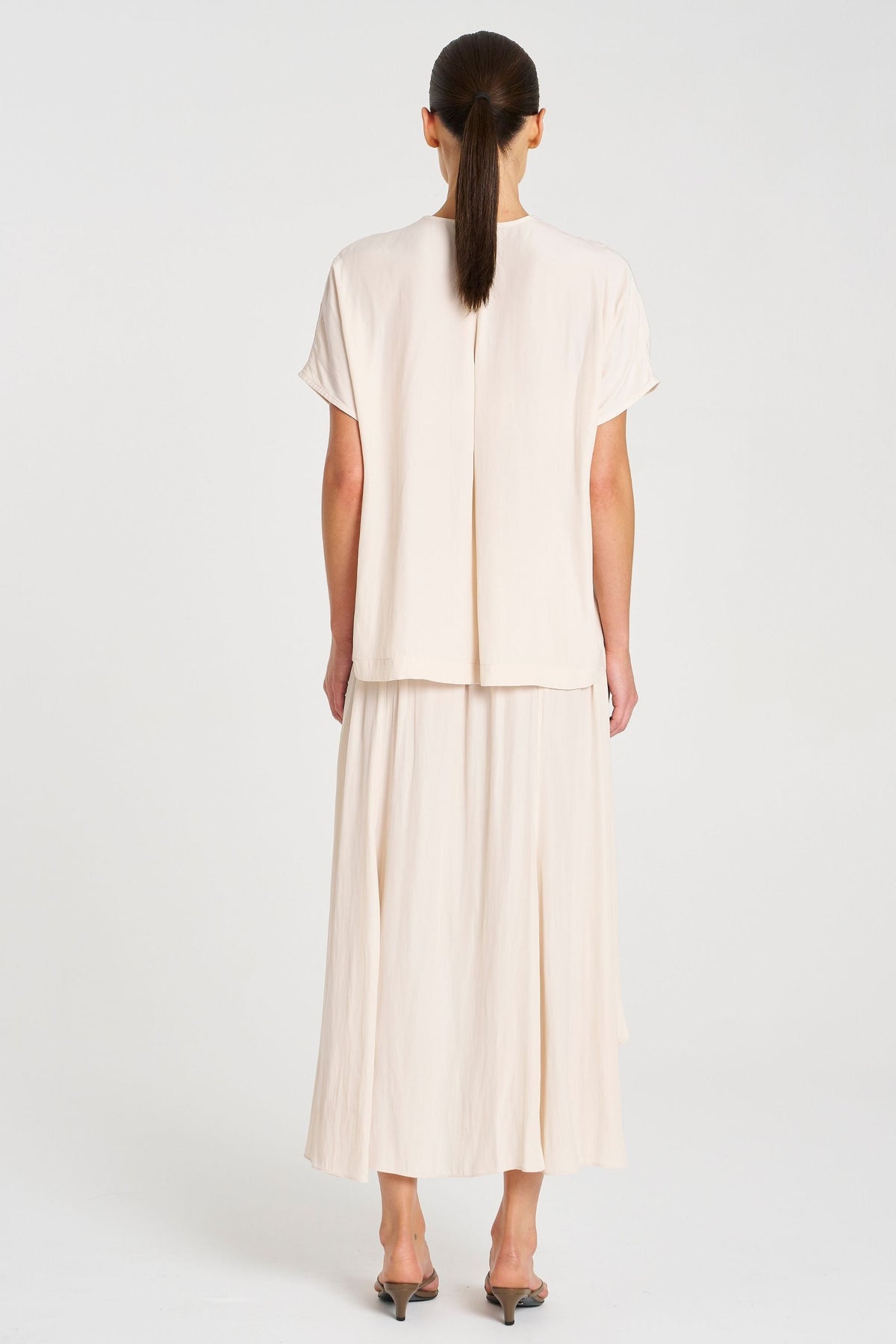 Crafted from Mela Purdie's classic Mache, a fine Denier technical weave with an airflow finish. The Wedge Tab Shell features a cap sleeve and a flattering neckline with a button closure.