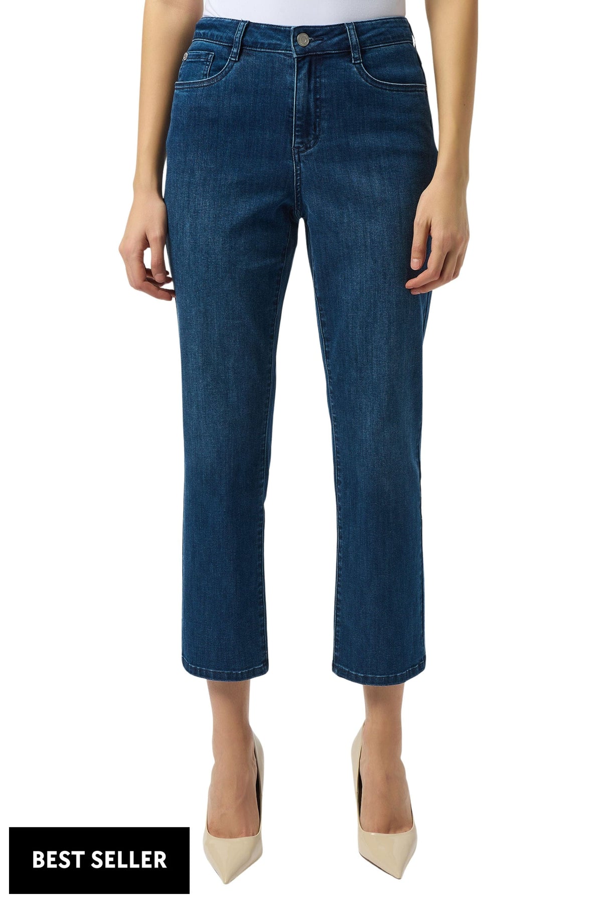 Crafted with Joseph Ribkoff FEATHERWEAVE™ denim, Margot is a classic straight leg jean that is likely to become your best-friend and most comfortable pair yet. With a five-pocket style, ankle-grazing length, vintage wash, they look and feel like a favourite well-worn pair of jeans that she'll reach for again and again.