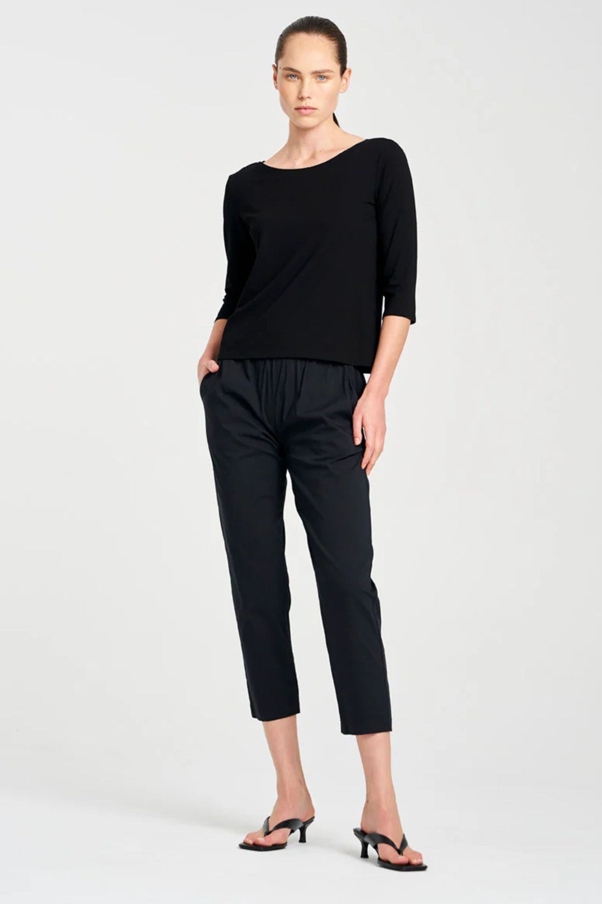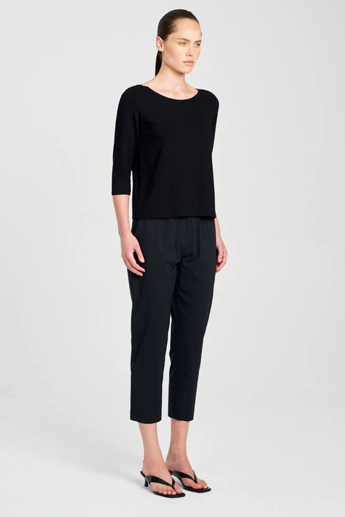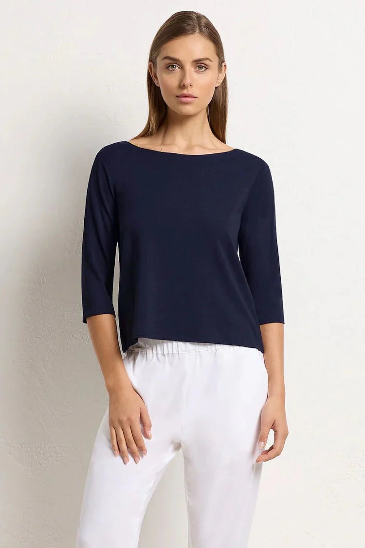 Crafted from Mela Purdie's staple Matte Jersey, the classic Relaxed Boat Neck, features a slightly relaxed 3/4 Length sleeve and relaxed body finishing just below the waistline. Wear it with the soft zip pant for the perfect travel ensemble.