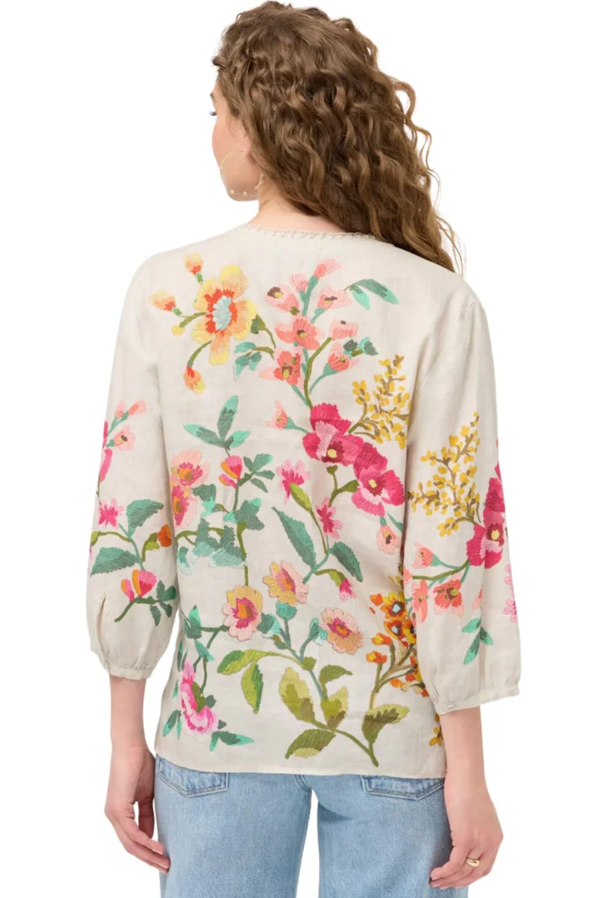 JOHNNY WAS BLOUSE SPLIT NECK LINEN BLOUSE - J10426-1