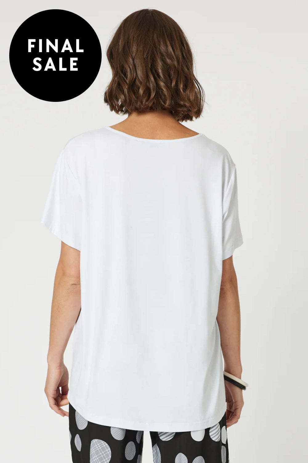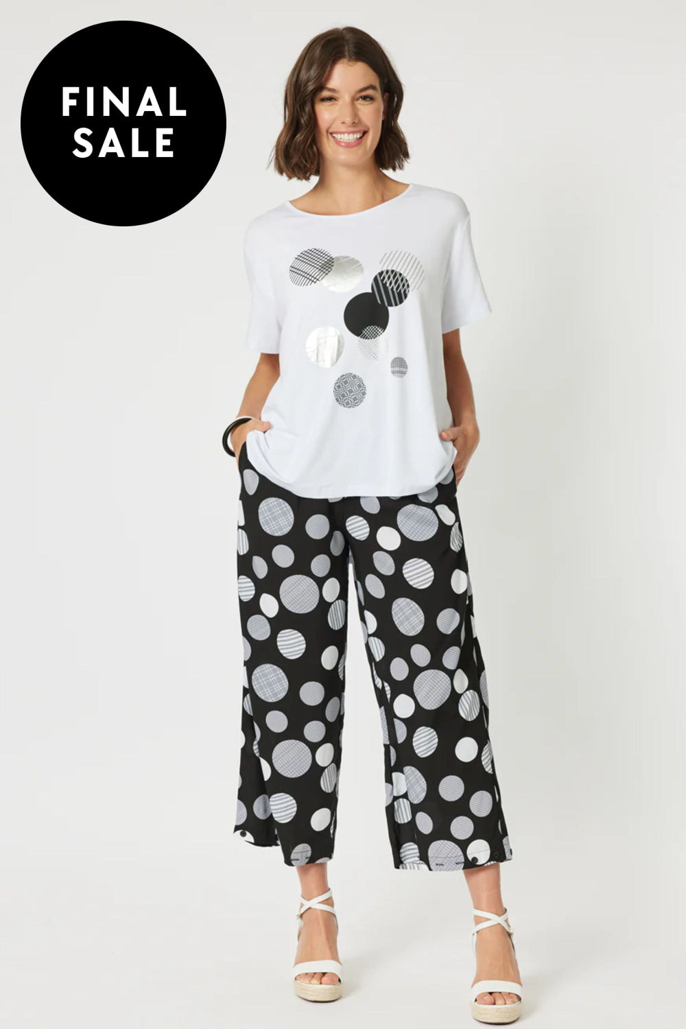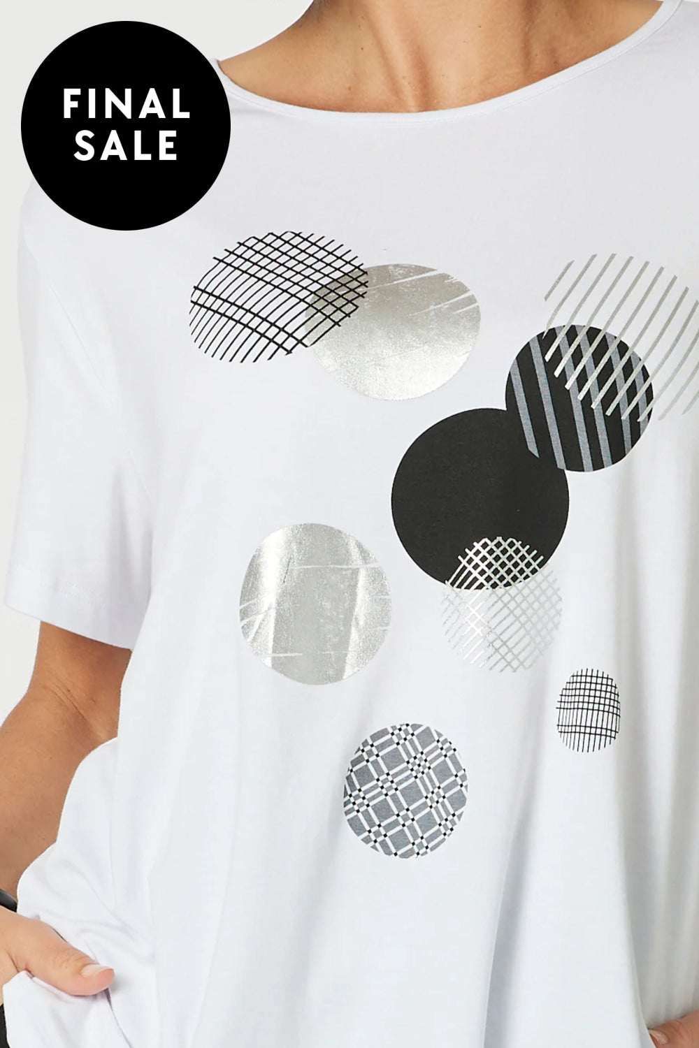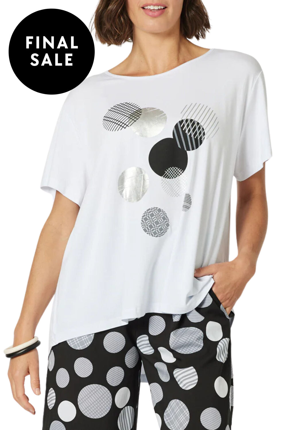 Bring your t-shirt game to the next level with the ECLIPSE TEE from Clarity! Made with super soft stretch viscose jersey, this tee offers supreme comfort and style. The metallic touches in the print add a playful twist to your wardrobe. Get dressed with ease and a touch of glam!