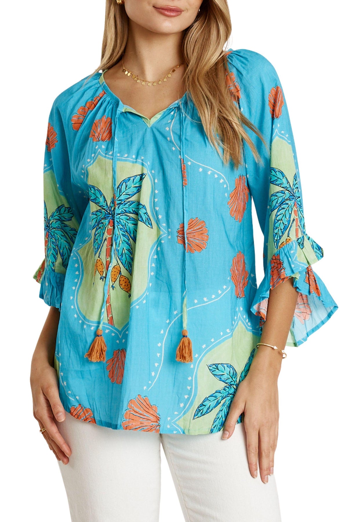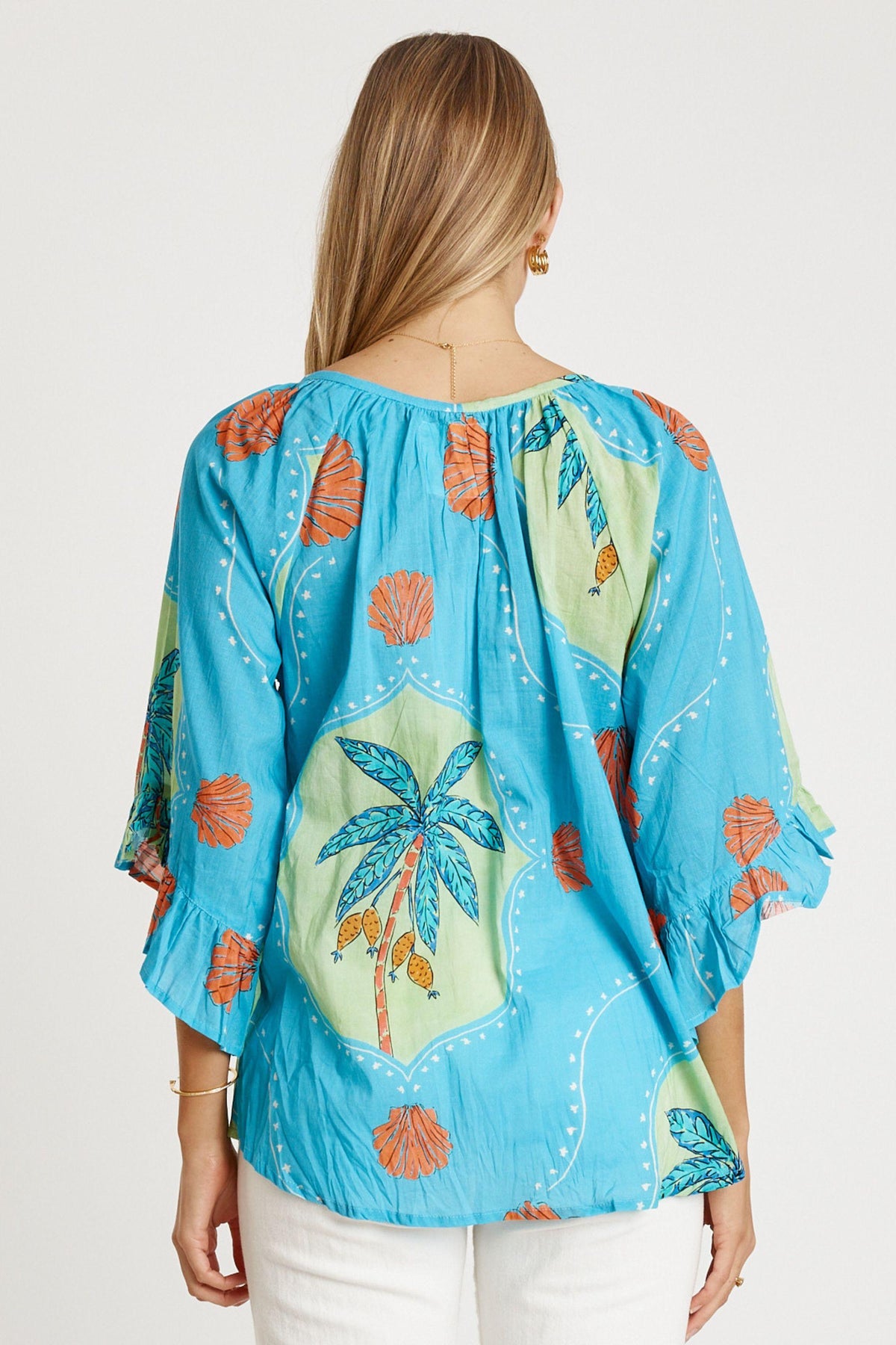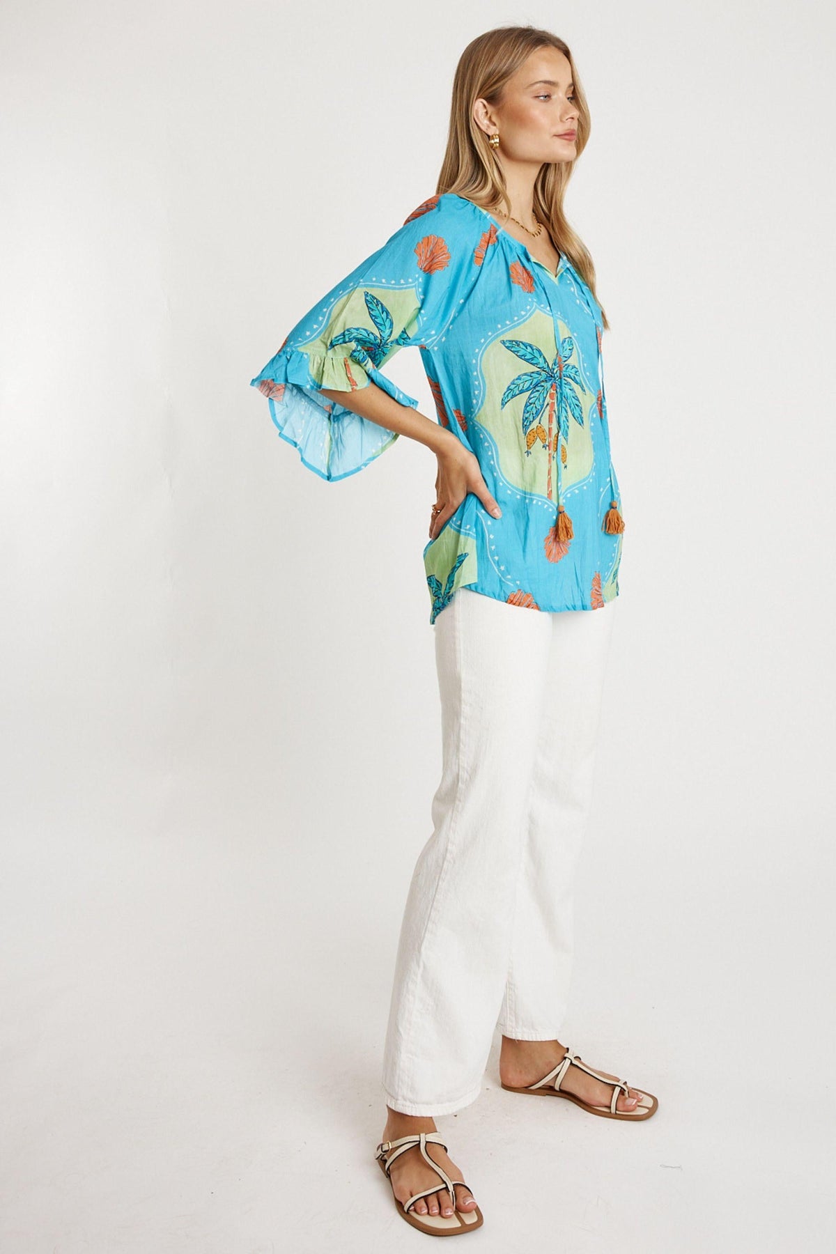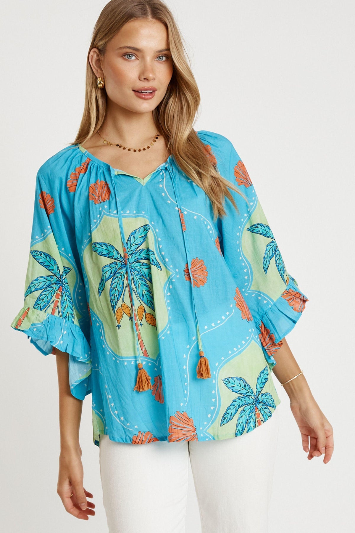 Bringing an easy mix of comfort and pretty detail, the LulaLife Anaya Top is made for relaxed, everyday wear. Crafted from 100% cotton, it feels soft, breathable, and perfect for warm days. The V-neck with adjustable ties and tassels adds a playful touch, while the gentle gathers from the neckline give it a floaty, relaxed shape. The wide raglan sleeves with a flounce hem and 3/4 length design keep things airy and feminine. Finished with a soft curved hem and proudly designed in Australia, this top pairs beautifully with denim, linen, or your go-to summer pants.