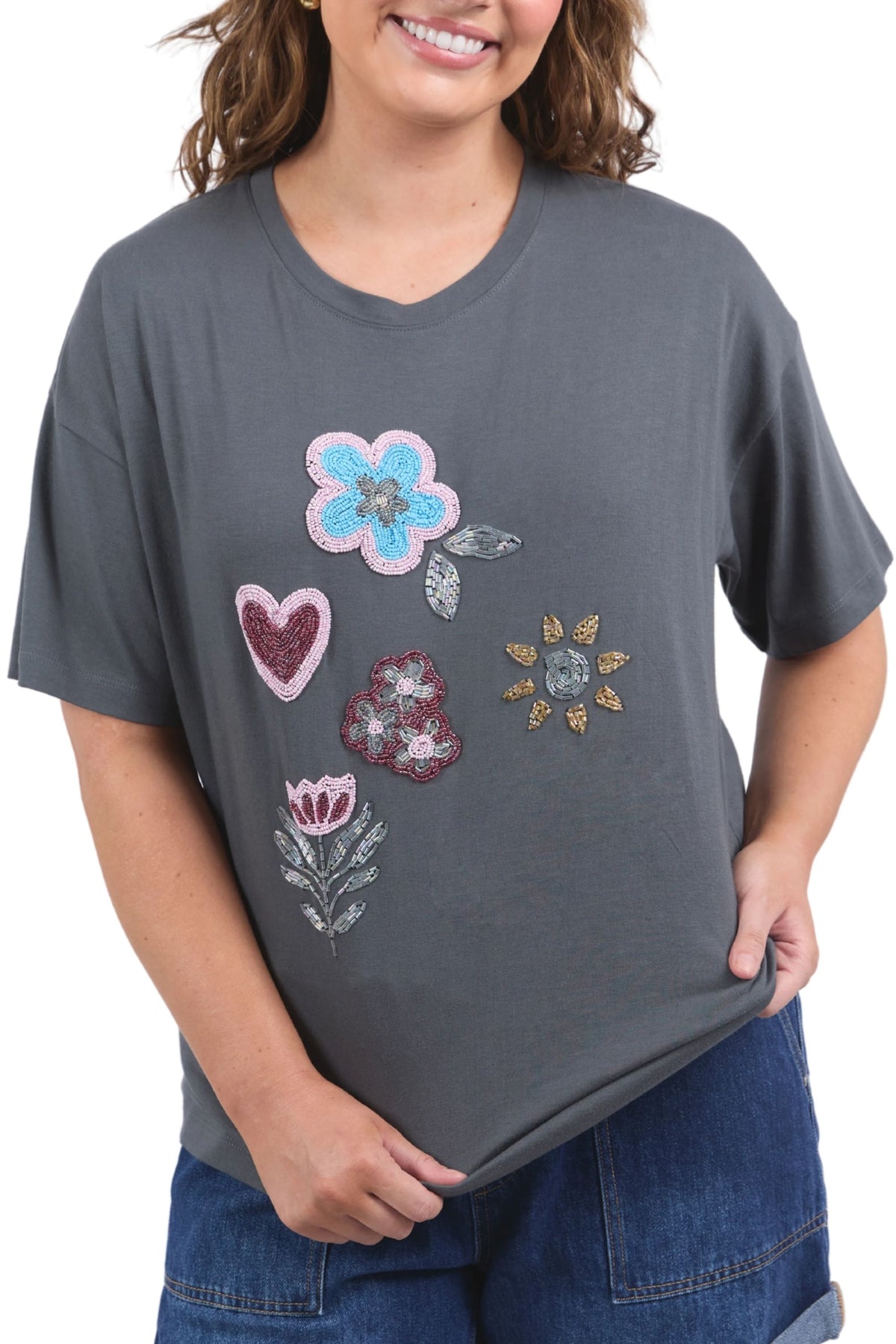 Just so so pretty! The Estelle Tee features an exclusive Elm design that's been hand beaded for beauty, colour and fun! This relaxed tee features a drop shoulder and will be that 'dressy' tee in your wardrobe this season.