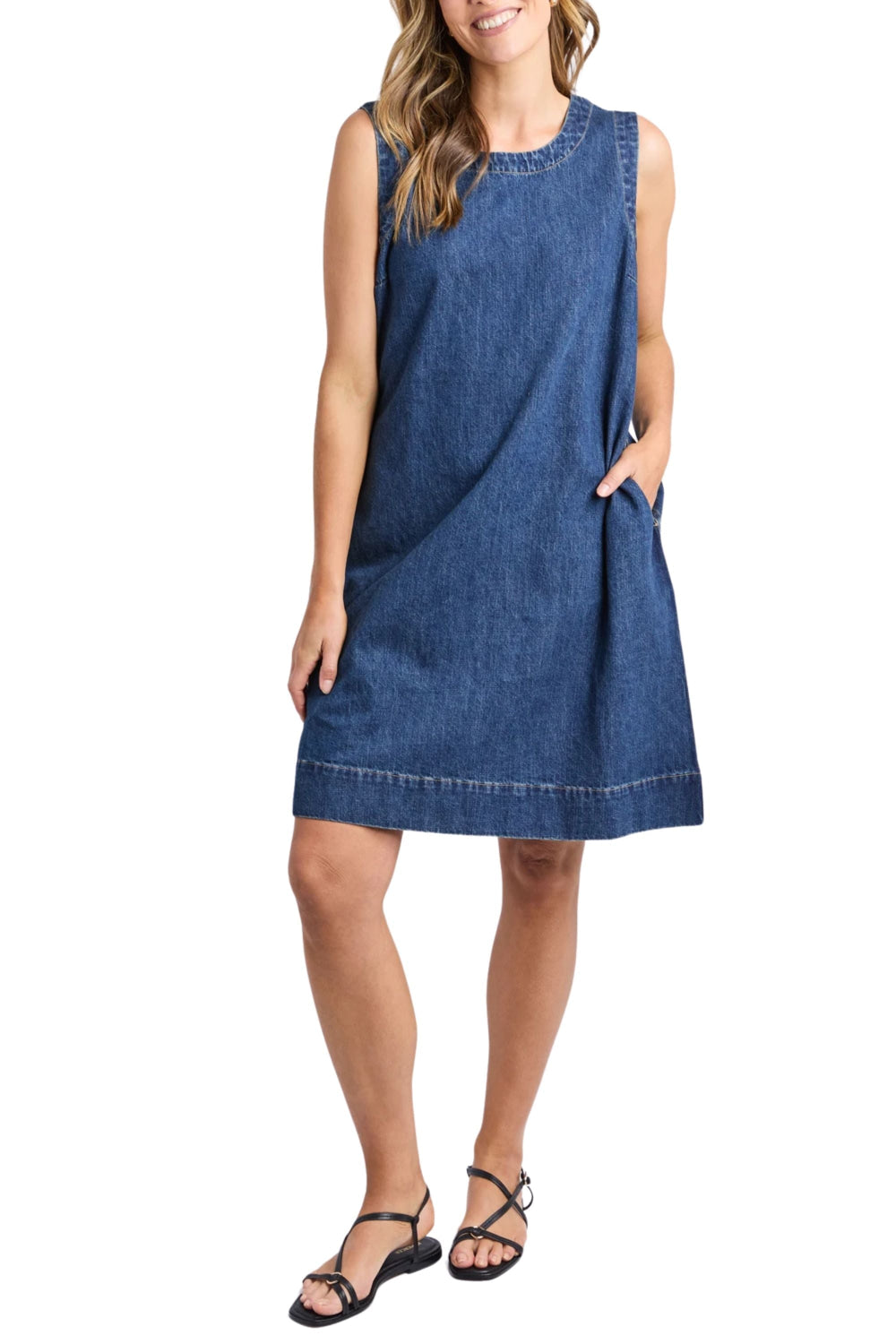 Meet the denim dress you’ll live in all season long. The Sonny Denim Dress by Elm is that easy, throw-on piece that feels relaxed but still looks pulled together. Made from 100% cotton denim, it has a soft structure that drapes beautifully without feeling heavy. The A-line shape gives you comfort and movement, while the sleeveless cut keeps it cool for warm days.