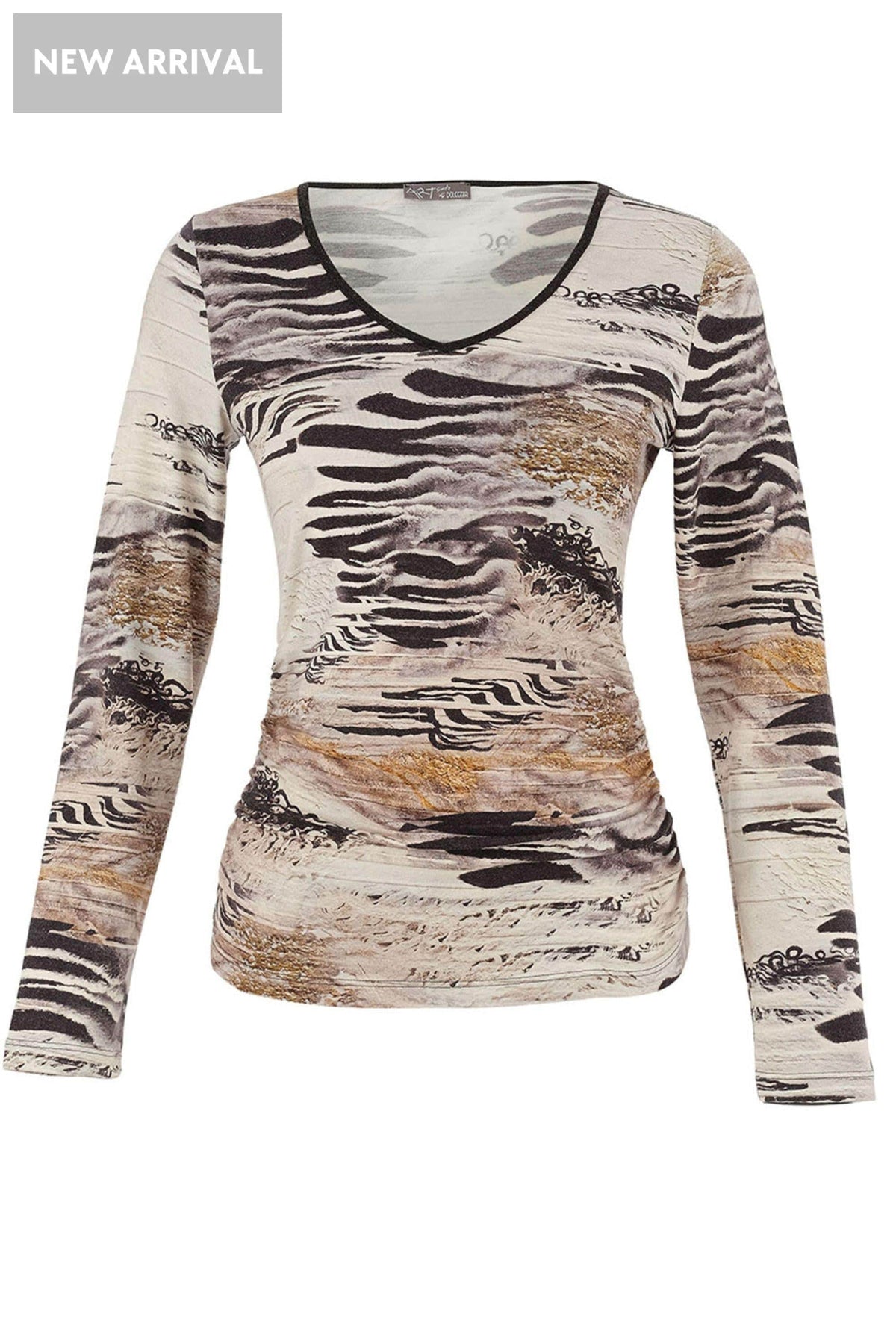 Make an understated statement with this printed jersey knit pullover. The flattering V-neckline and fluid drape create an effortlessly chic silhouette perfect for weekend outings—dress it up with tailored trousers or down with your favourite denim. A versatile piece that rewards repeat wearing.