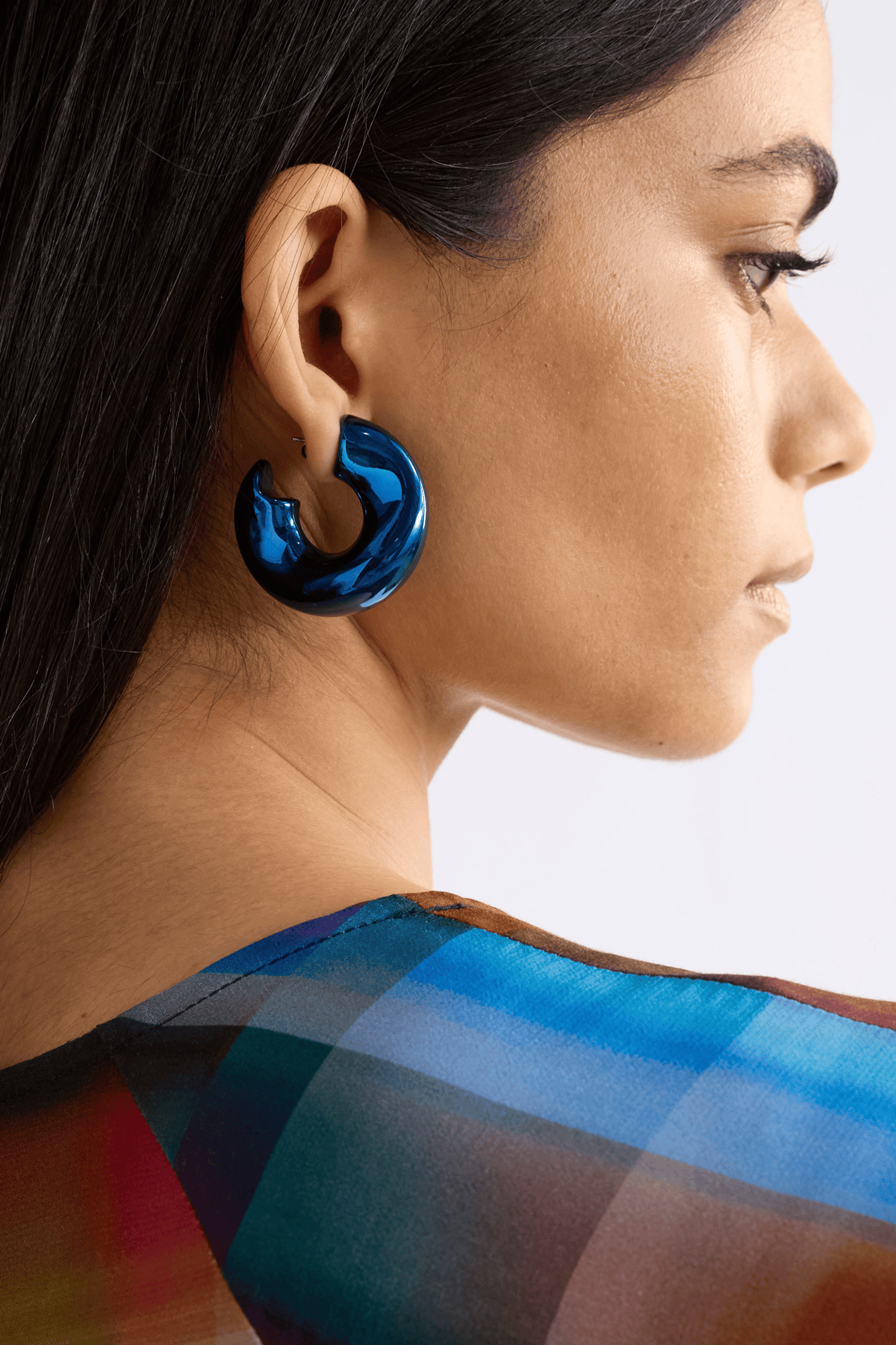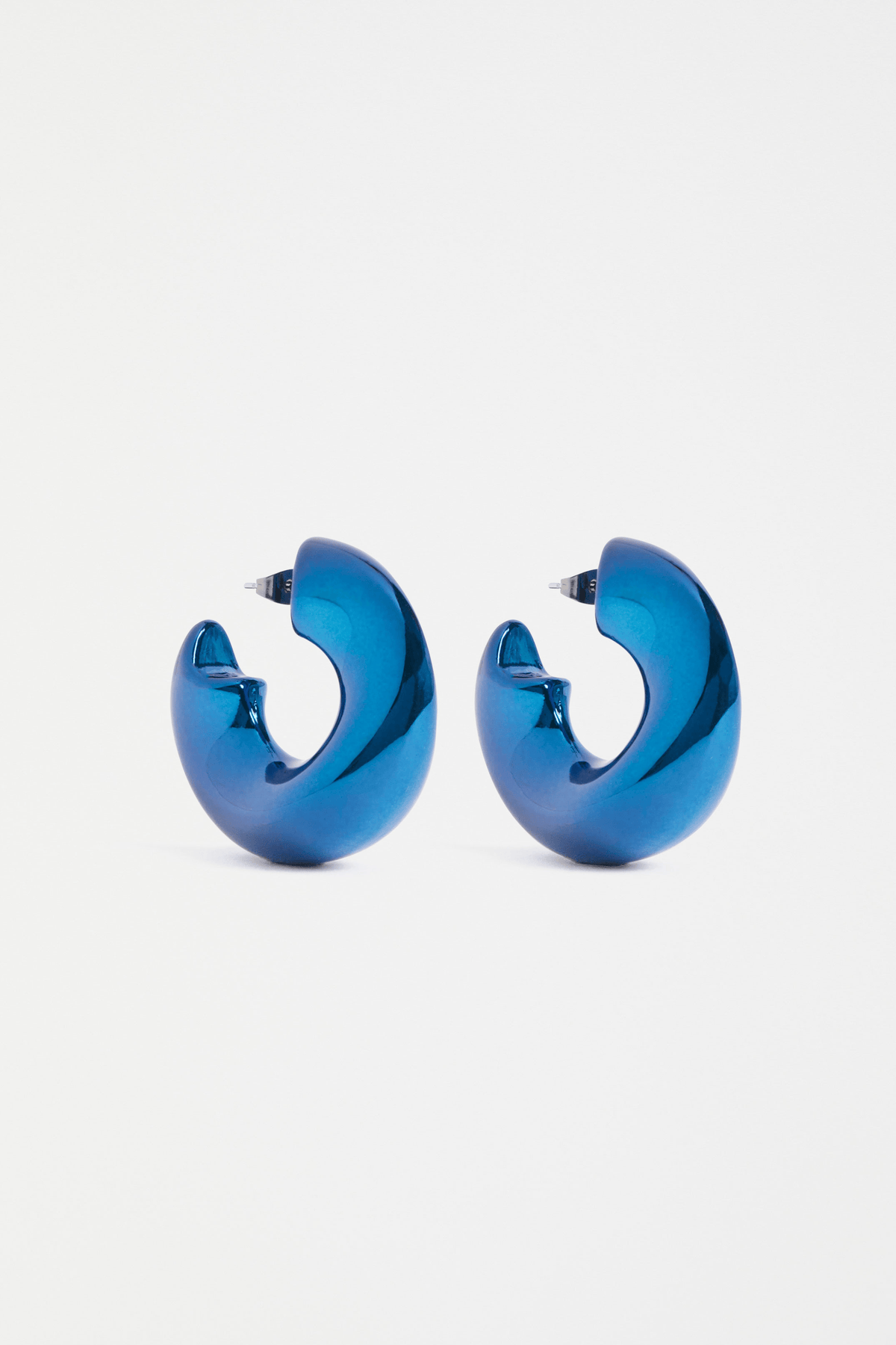 Make a statement in the Askla Hoop Earring, these sculptural, chunky, mid-sized hoops have a reflective metallic coloured finish that will add a playful bold touch to your day or evening outfits. This open-end design has a standard stud back post, making them easy to wear while creating maximum impact.