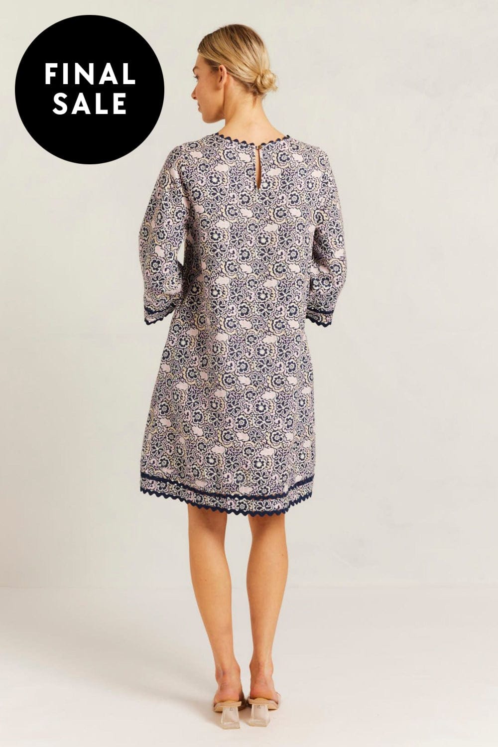 • Navy Raya Print with cuff and hem trim detailing