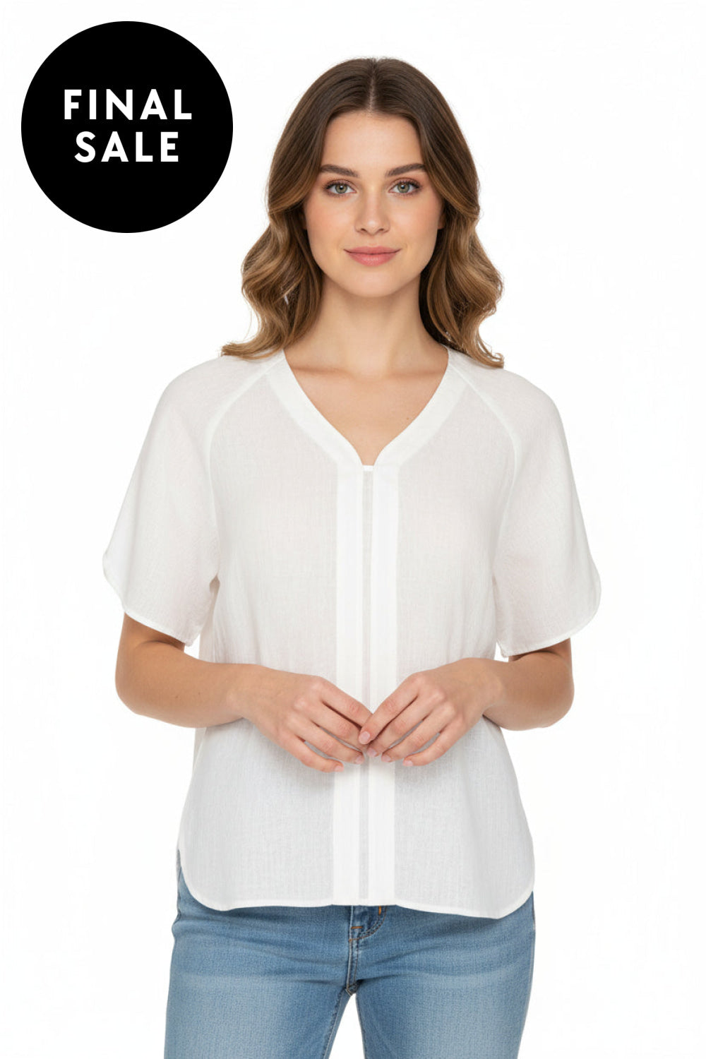 Featuring a relaxed fit, V-neckline, and raglan sleeves, this tee exudes effortless elegance. The centre front panel adds a touch of sophistication, while the curved hem offers a flattering silhouette. Elevate your wardrobe with this timeless piece.
