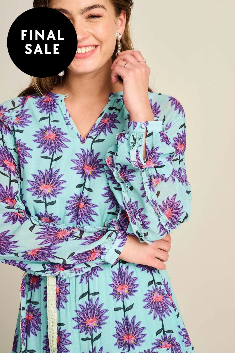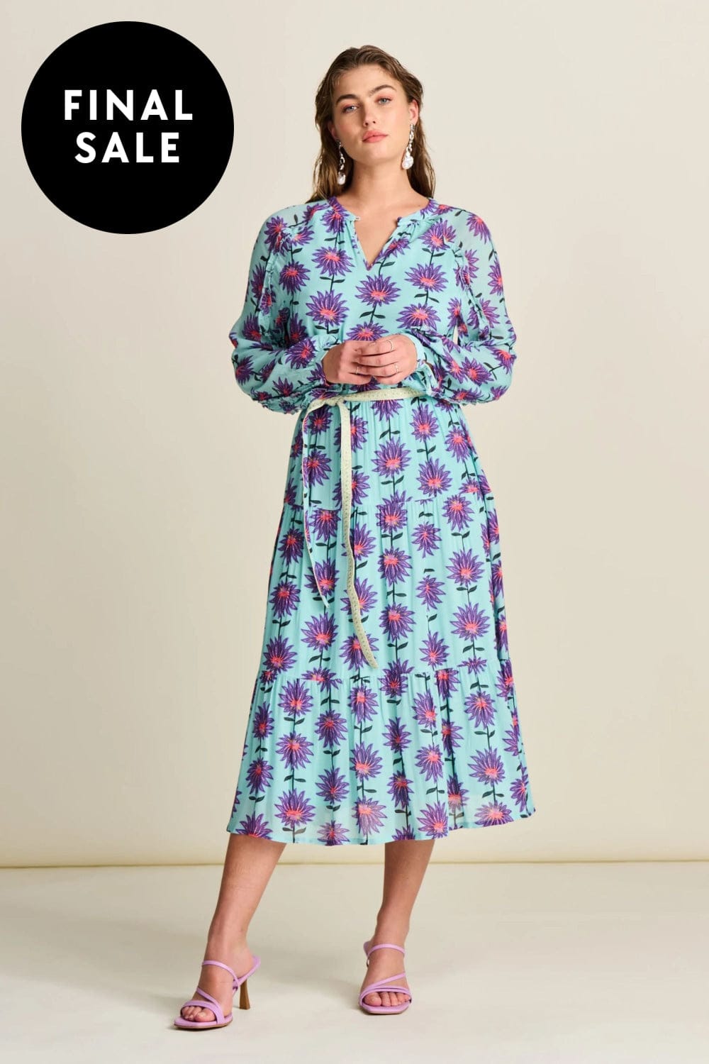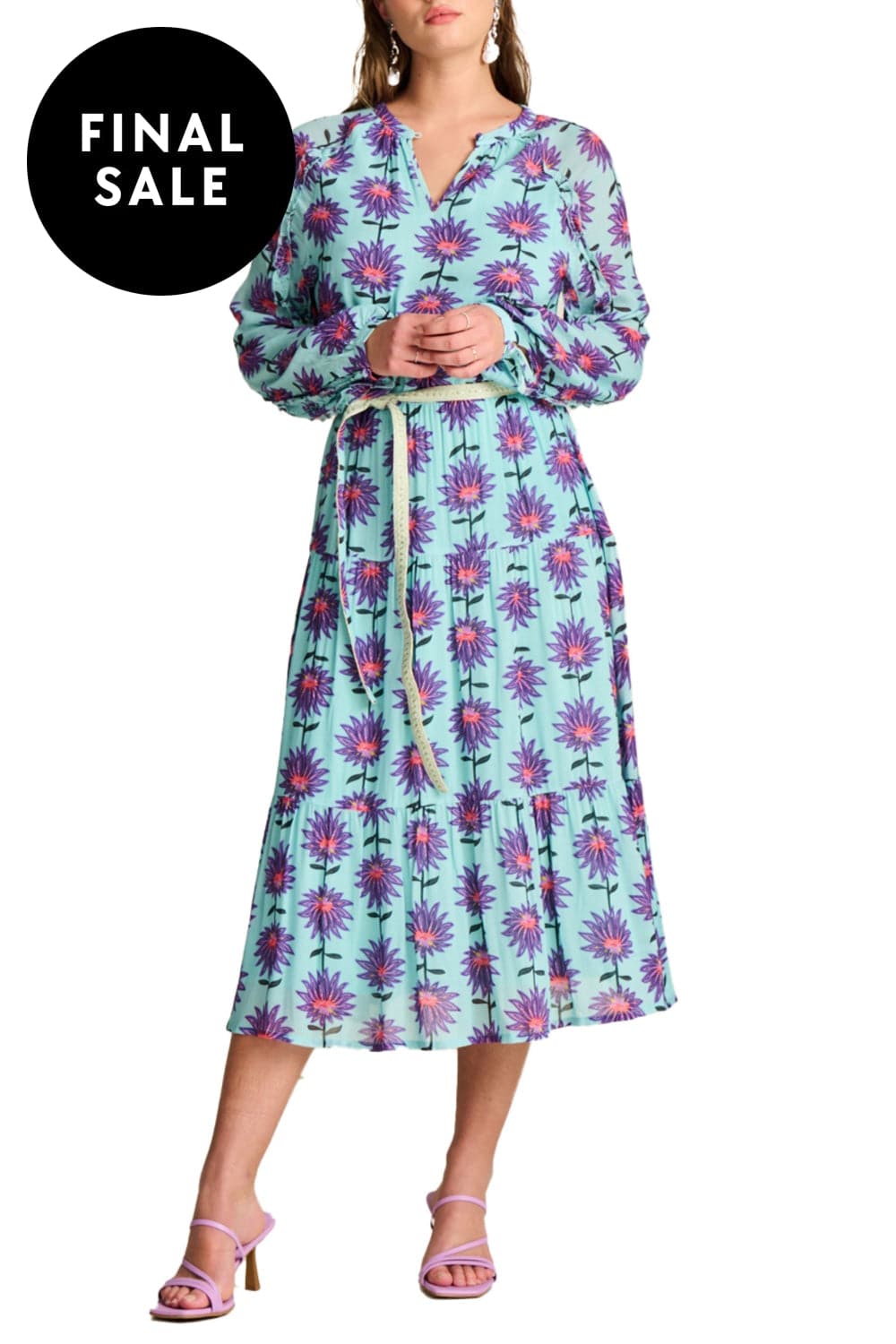 • The dress has an A-line and a flowy fit with long sleeves. The model in the photo is 173 cm tall and wears size 8.