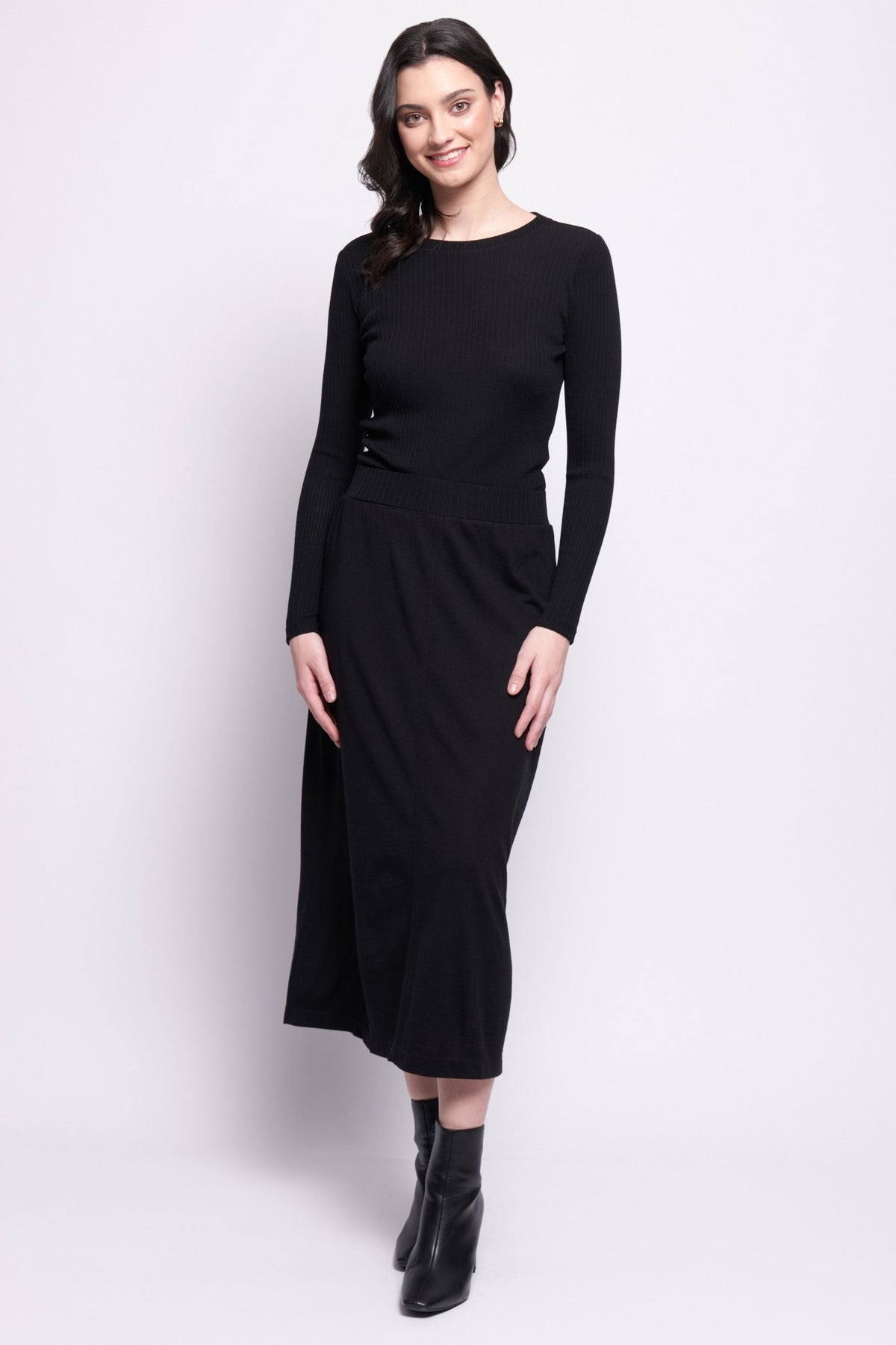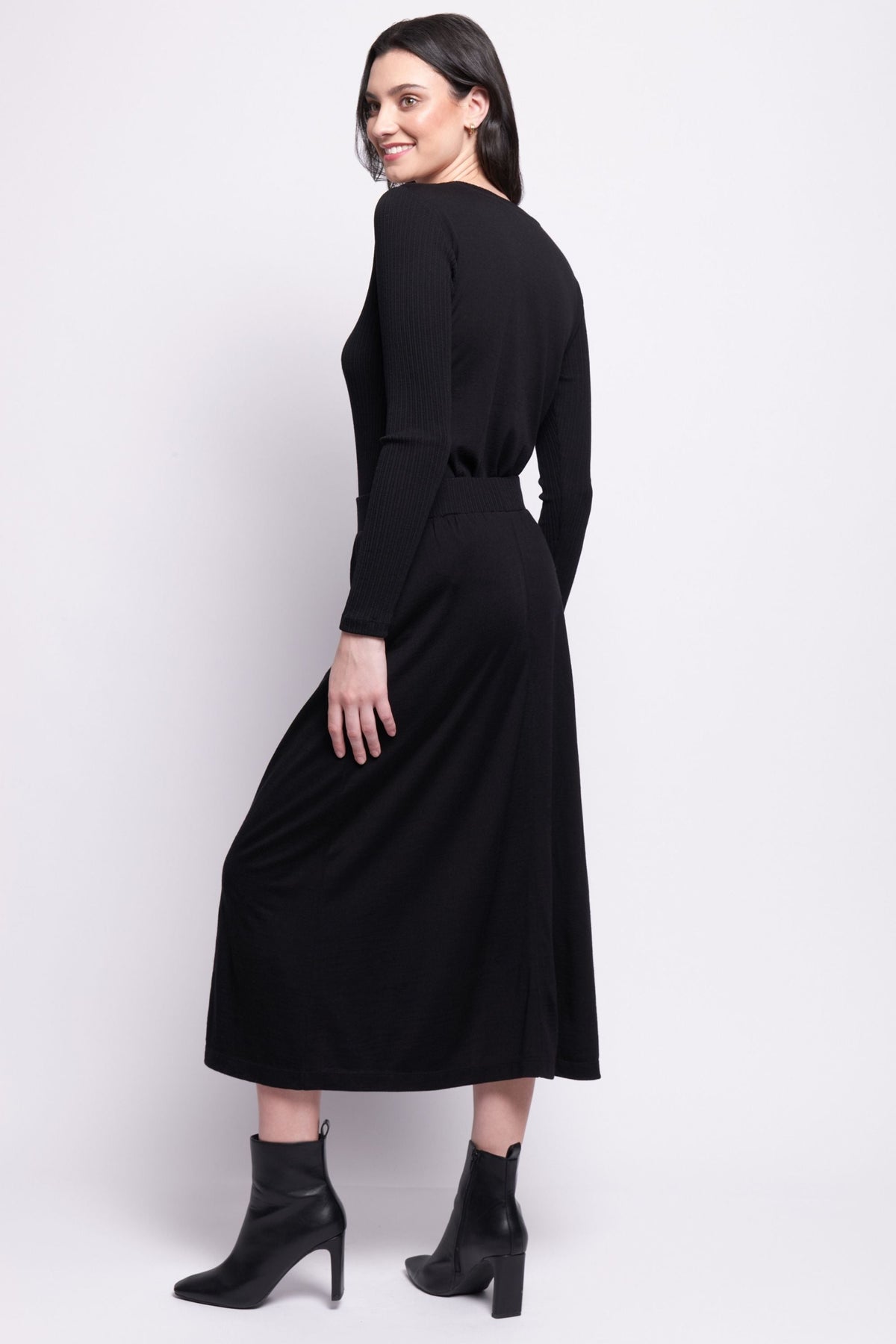 Elevate your winter wardrobe with the A Game Skirt. Made with luxurious merino wool, this pull-on skirt effortlessly transitions from day to night. Stay warm and stylish while remaining elegant and exclusive.