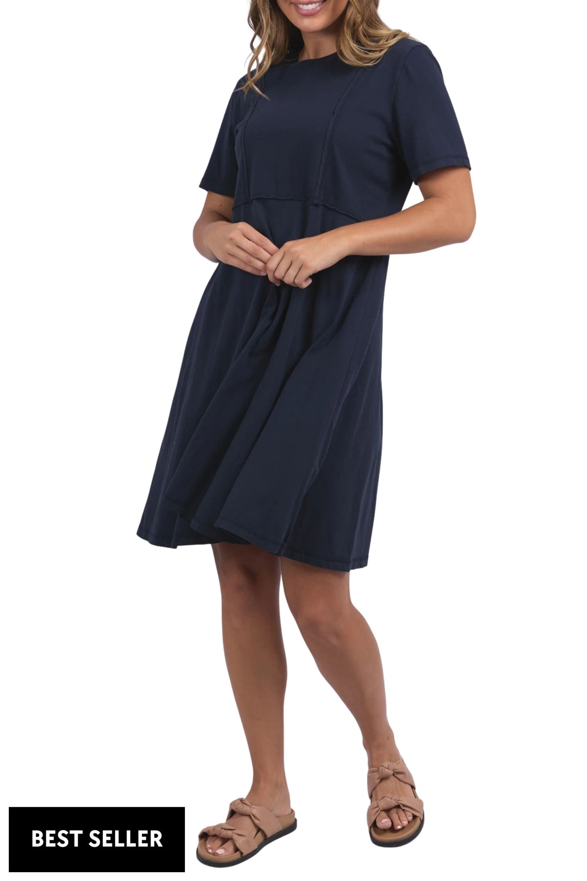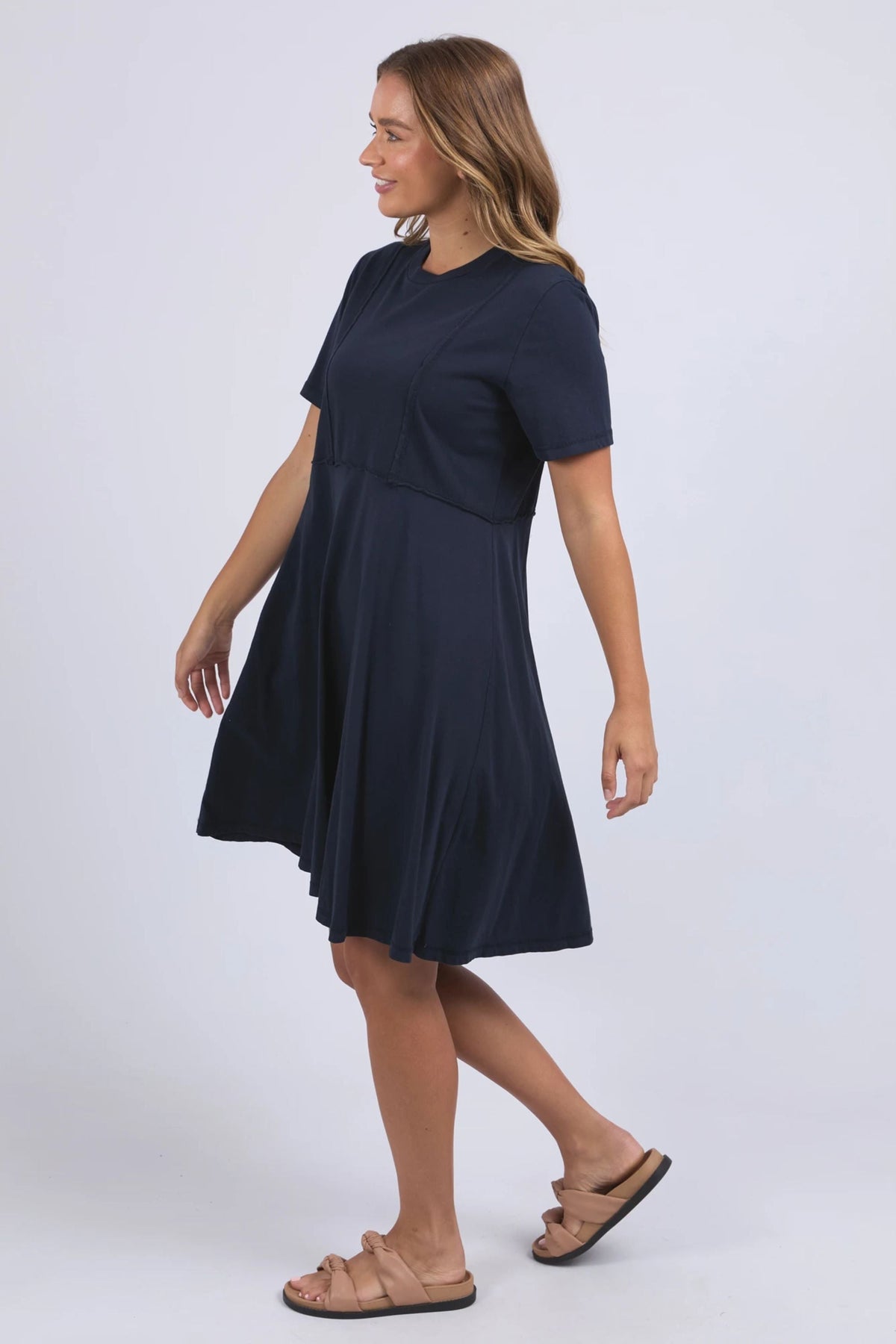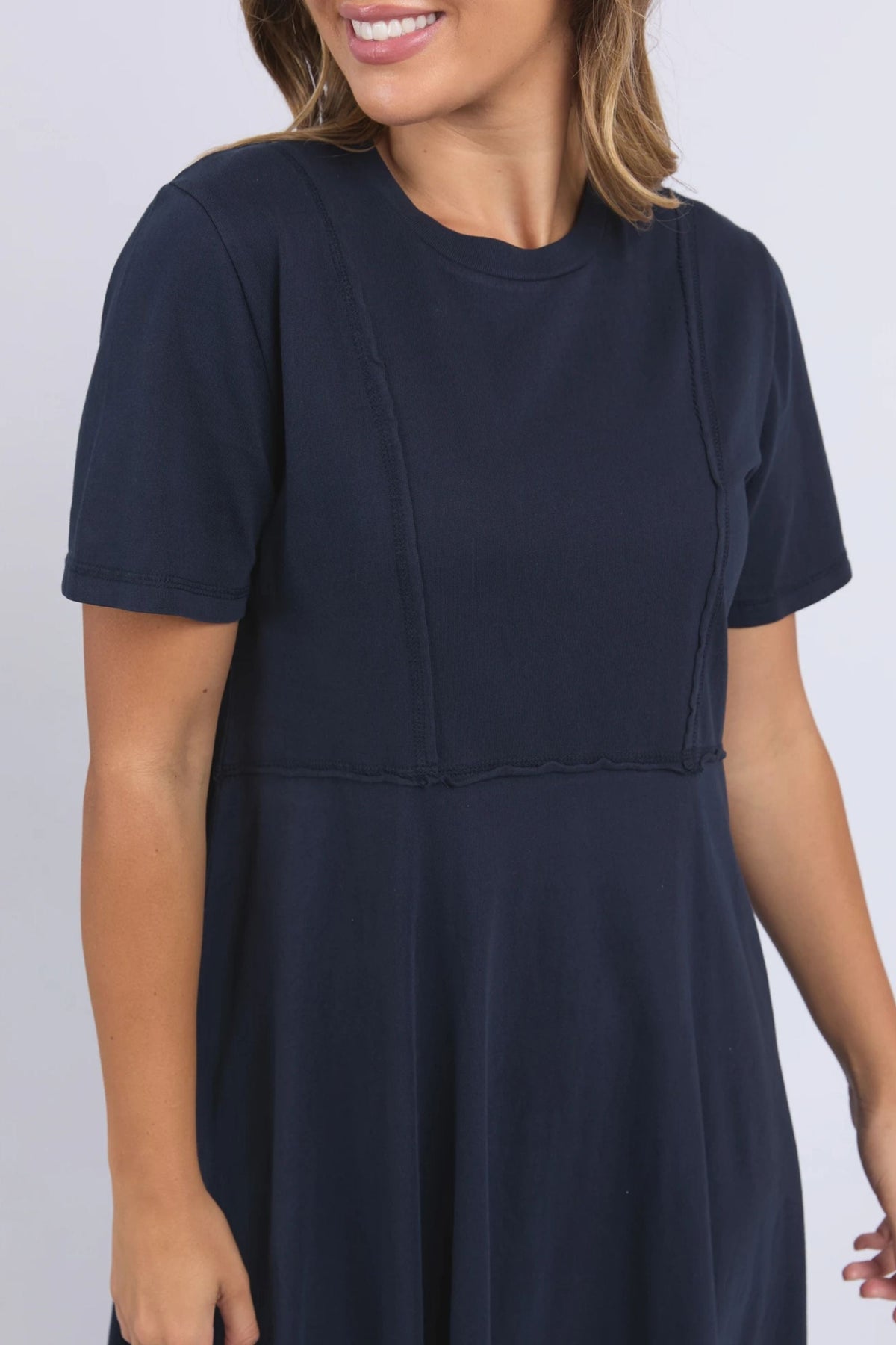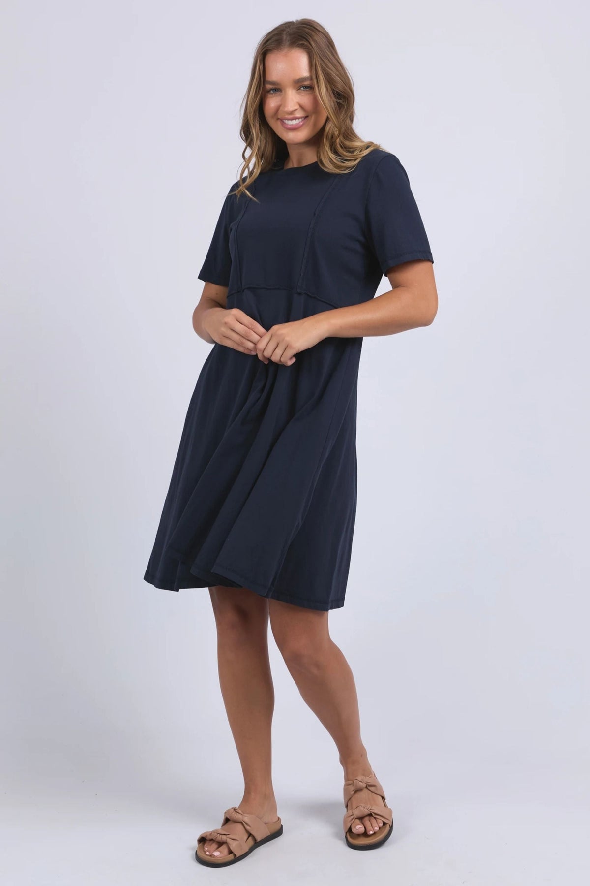 A shift dress for everyday wear. The Eva features a flattering v-neckline, short sleeves and side pockets. Made from 100% cotton poplin, this fresh and fun dress is ideal for all day, everyday. Where it with slides or sneakers for a casual look or dress up with heels or sandals.