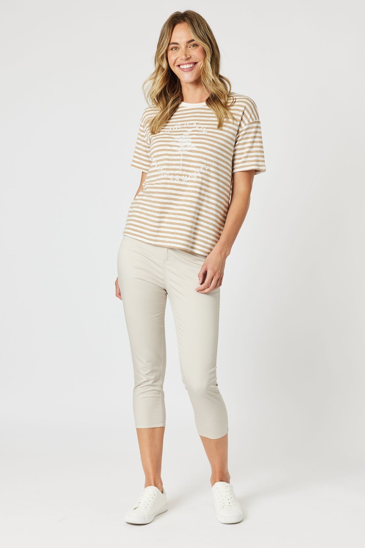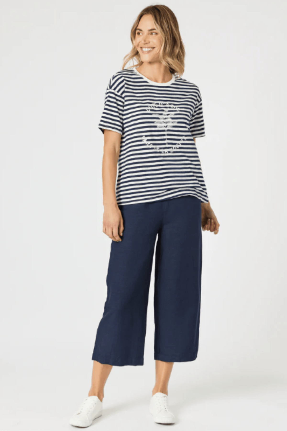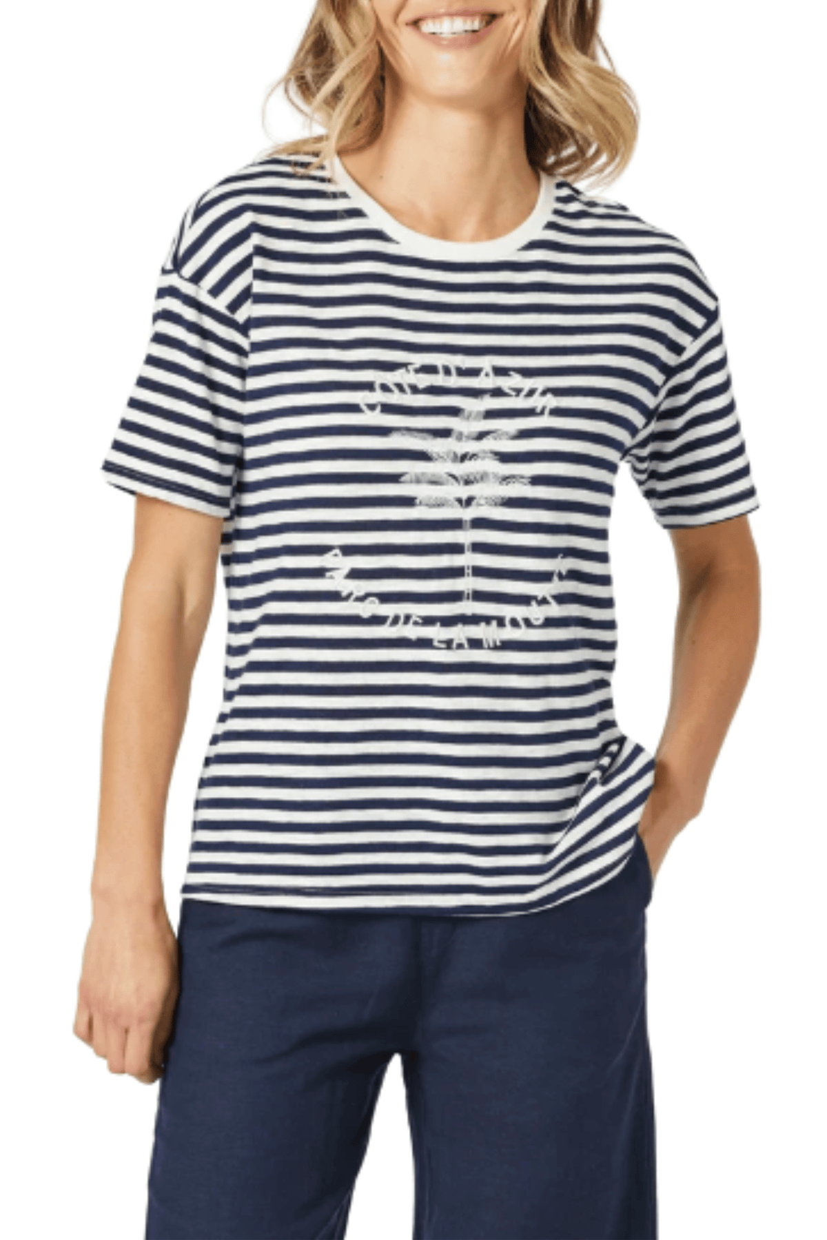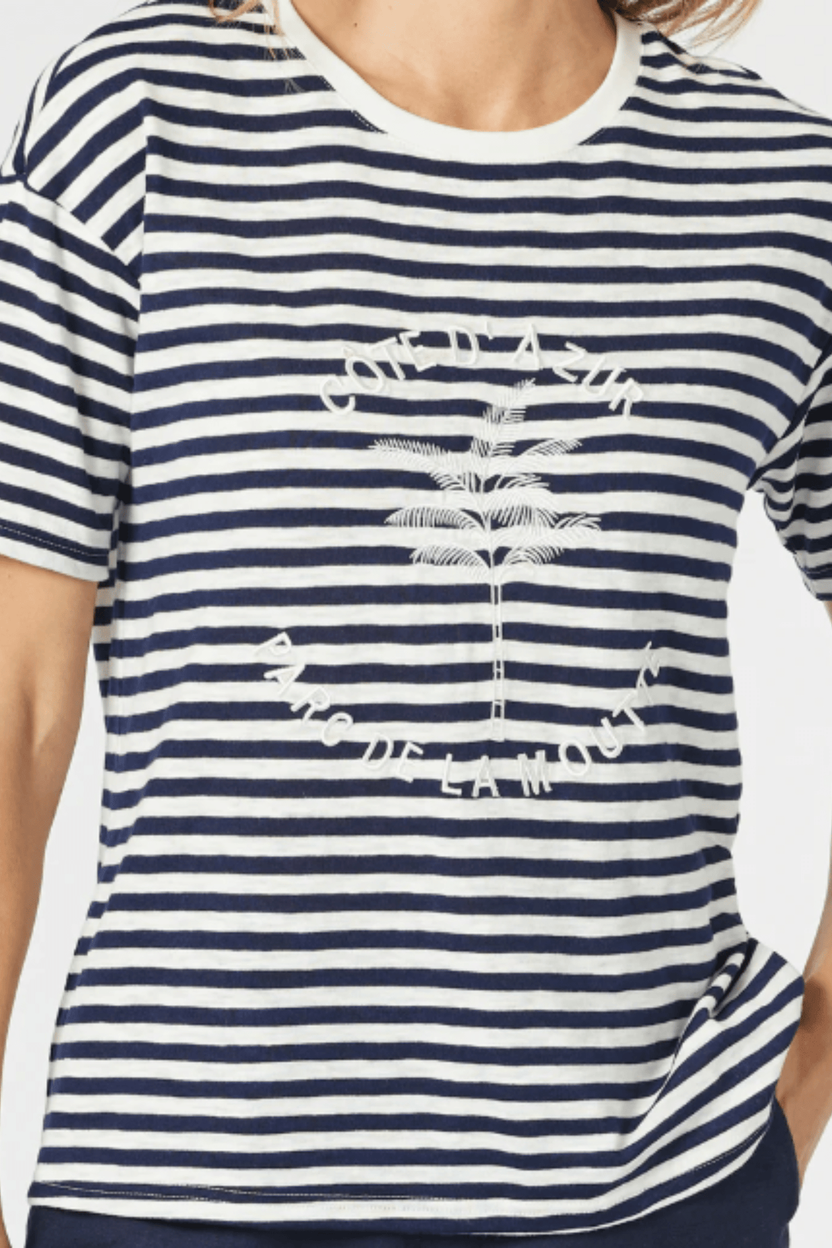 Channel effortless coastal charm with the Côte D’Azur Stripe Tee - a timeless classic with a playful twist. Featuring soft, all-over stripes and a delicate embroidered motif, this tee brings a touch of personality to your everyday style. Made from soft fabric, it offers a classic fit and hip-length cut that pairs perfectly with jeans, shorts, or skirts. Whether you're seaside or street-side, this is your go-to for casual comfort with a hint of French flair.