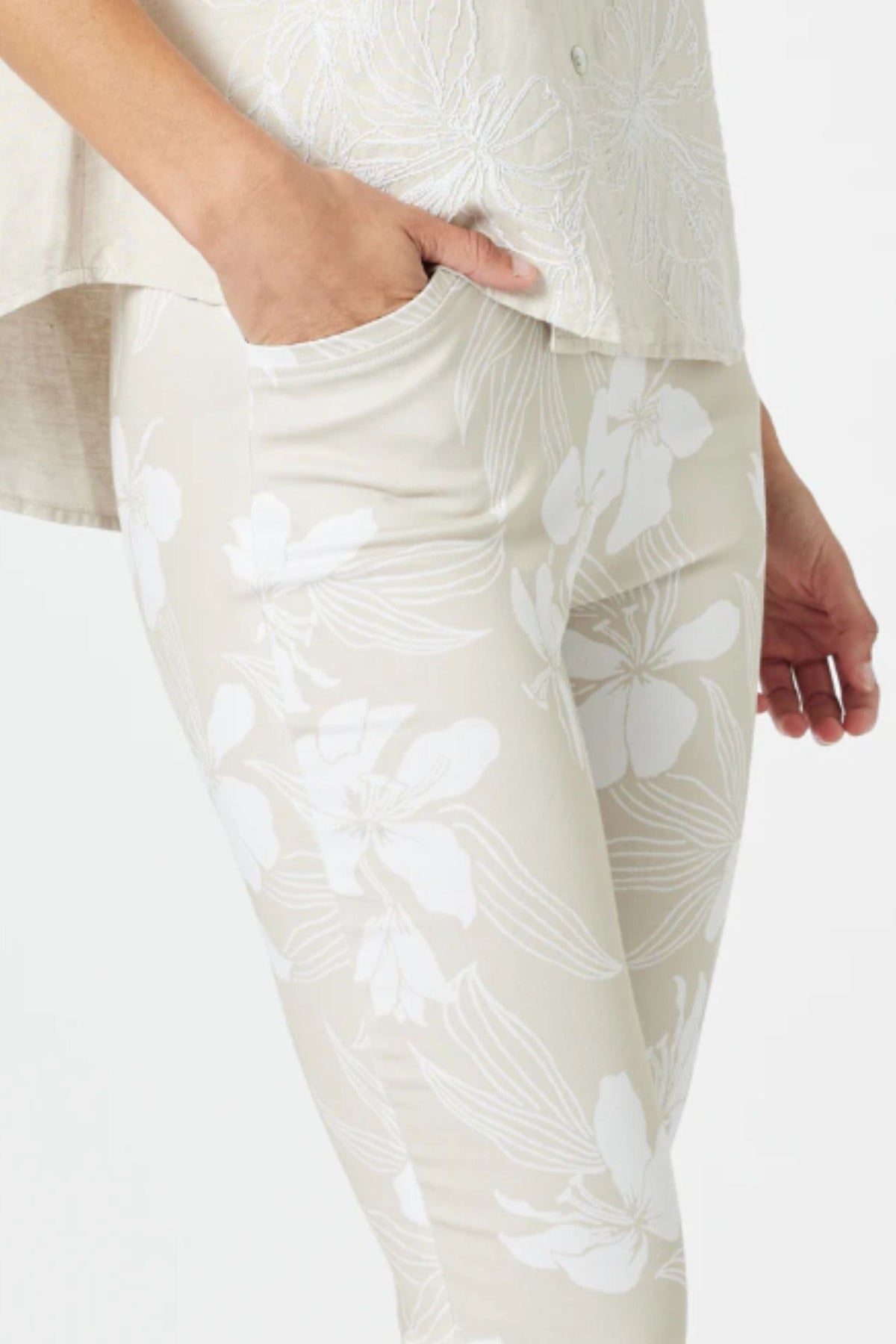 Effortlessly stylish and endlessly comfortable, the Morro Bay Floral Pants are a must-have for warm-weather dressing. Featuring a soft natural base with a crisp white floral print, these 7/8 length pants offer a fresh, modern look perfect for casual outings or relaxed weekends.