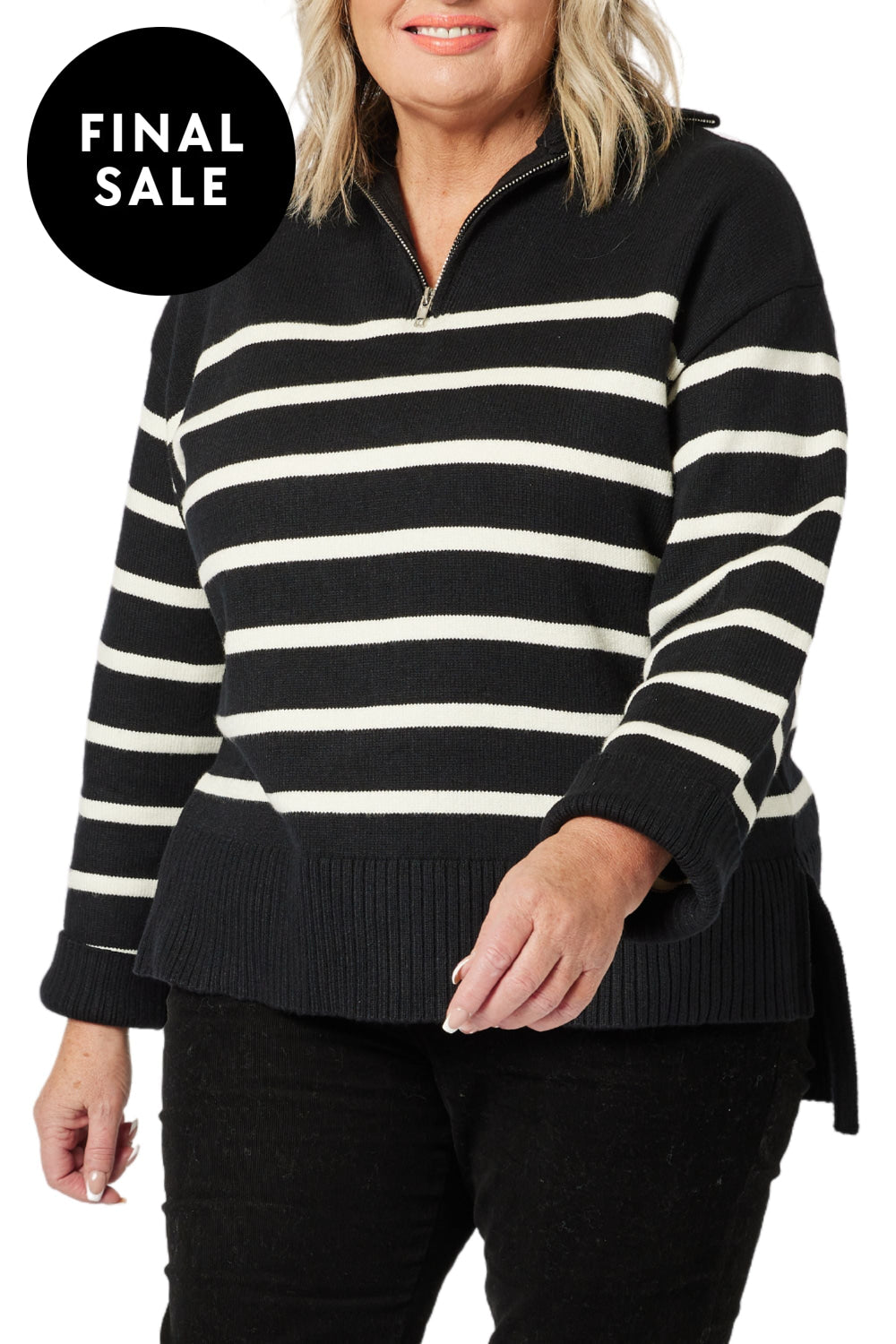 GORDON SMITH JUMPER XS / BLACK PALMA STRIPE ZIP KNIT - 44034GS