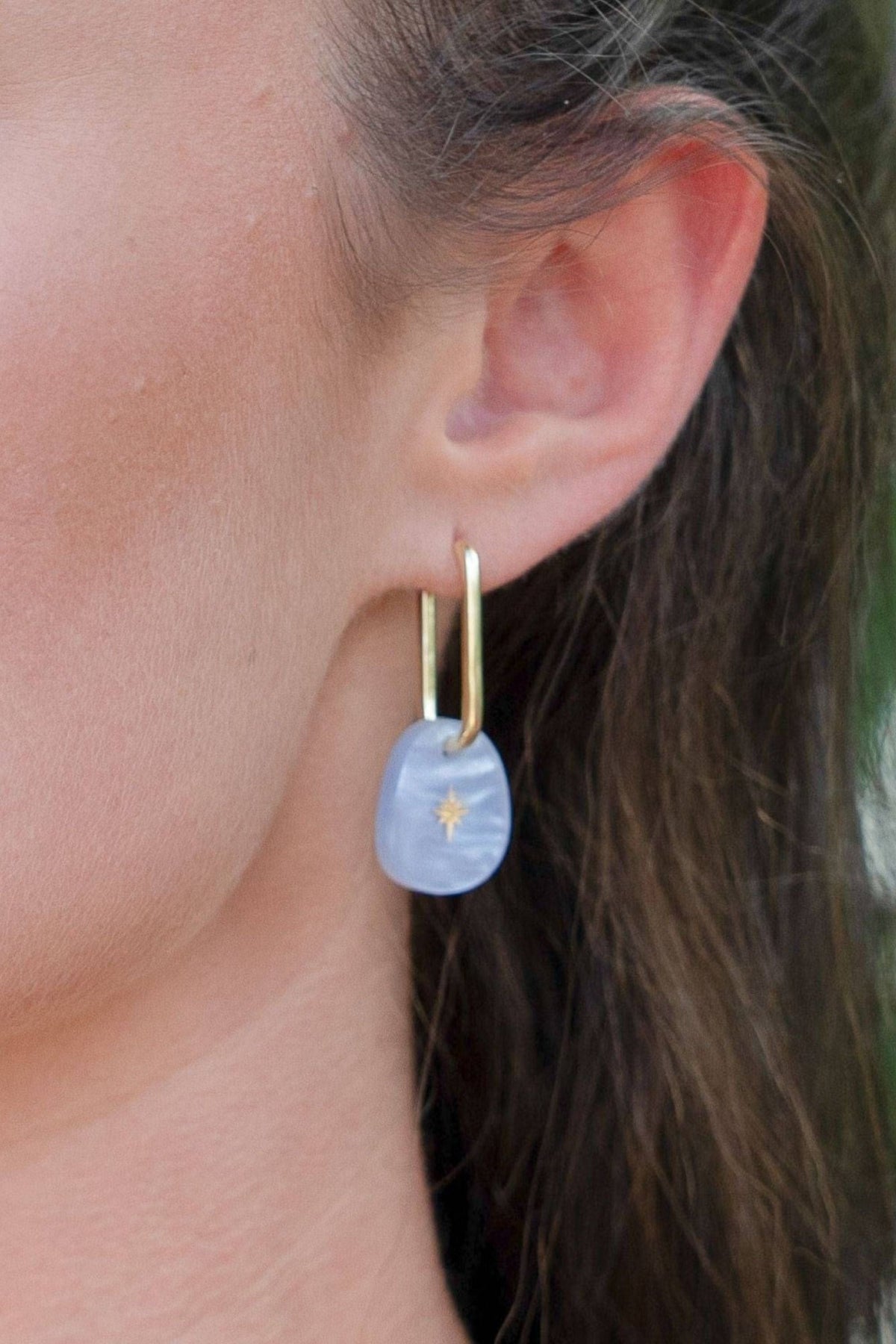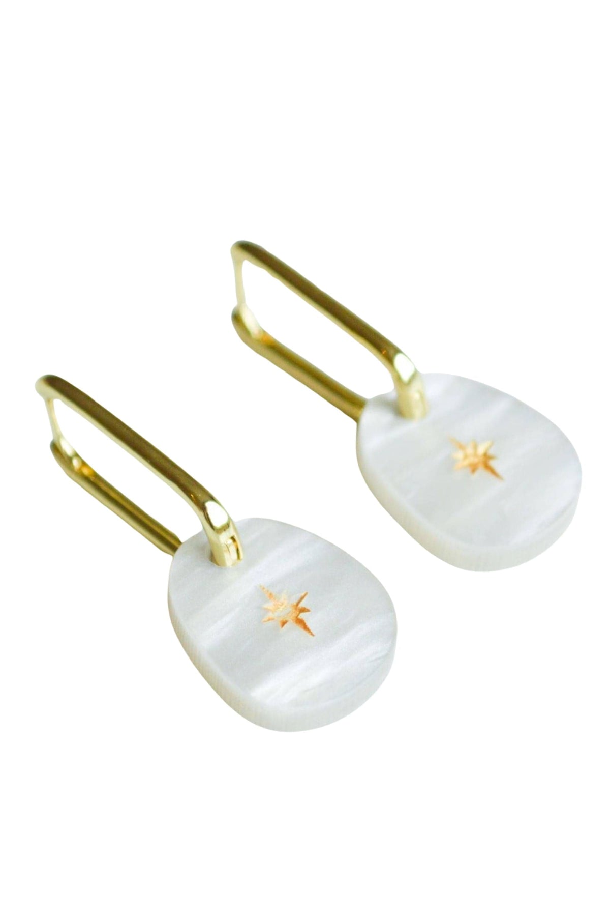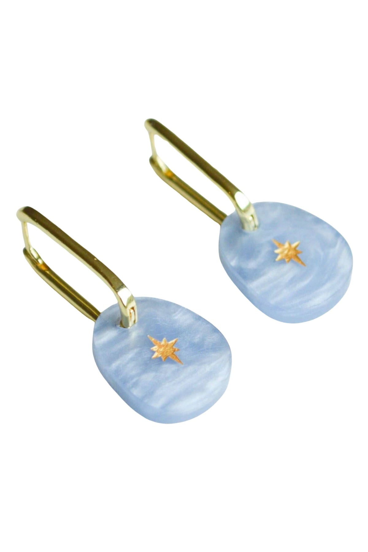 Luxuriously crafted from marbled amber acrylic, these delicate earrings feature a charmingly etched gold star. The ideal size for everyday elegance.
