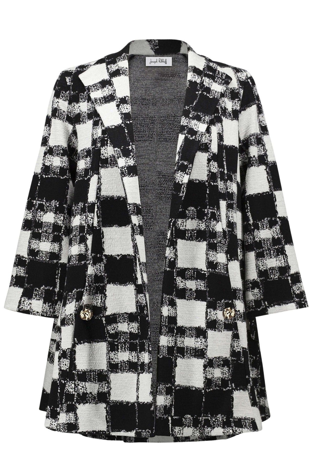 JOSEPH RIBKOFF JACKET BLACK-CREAM / 8 JACQUARD PLAID JACKET - 253017JR