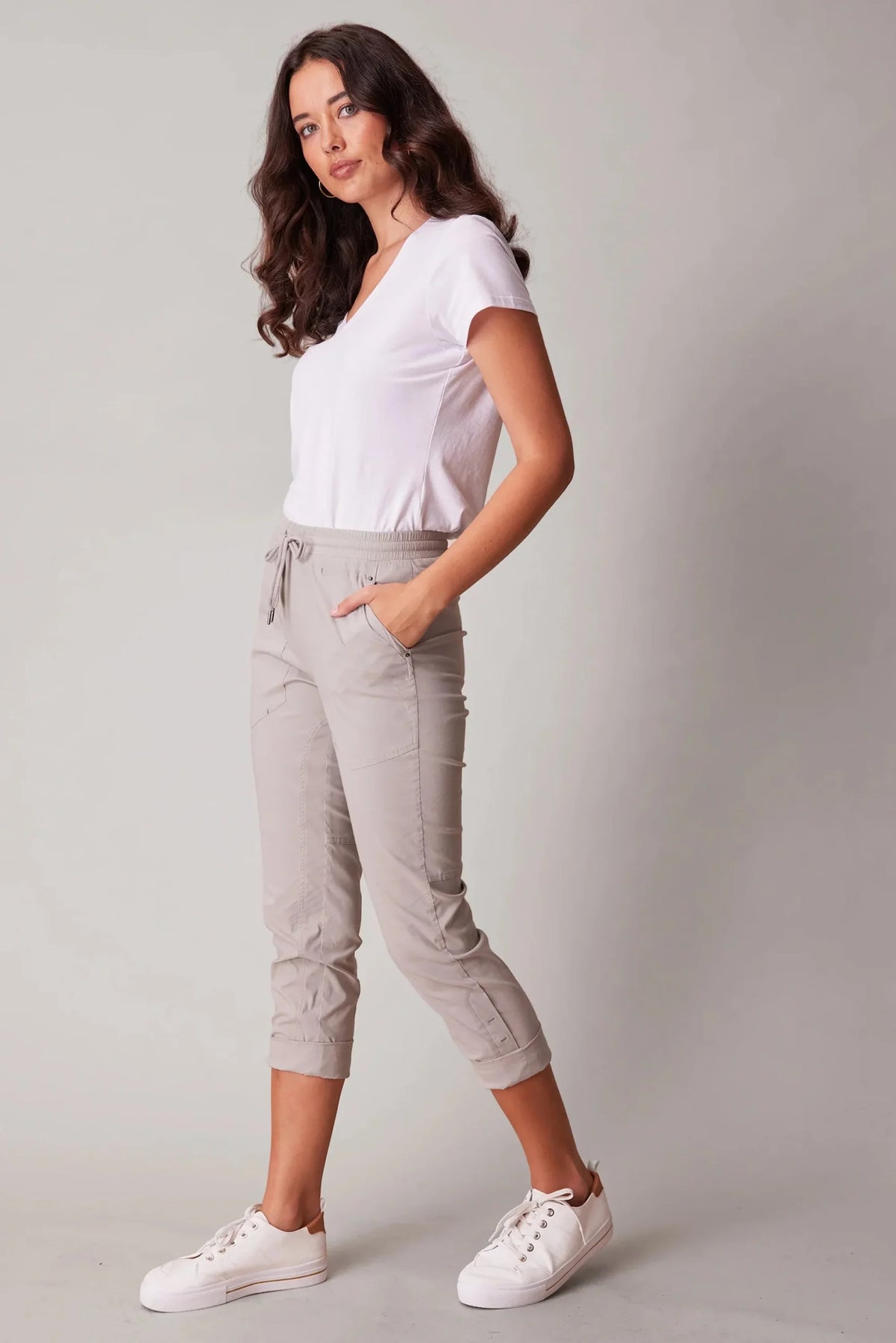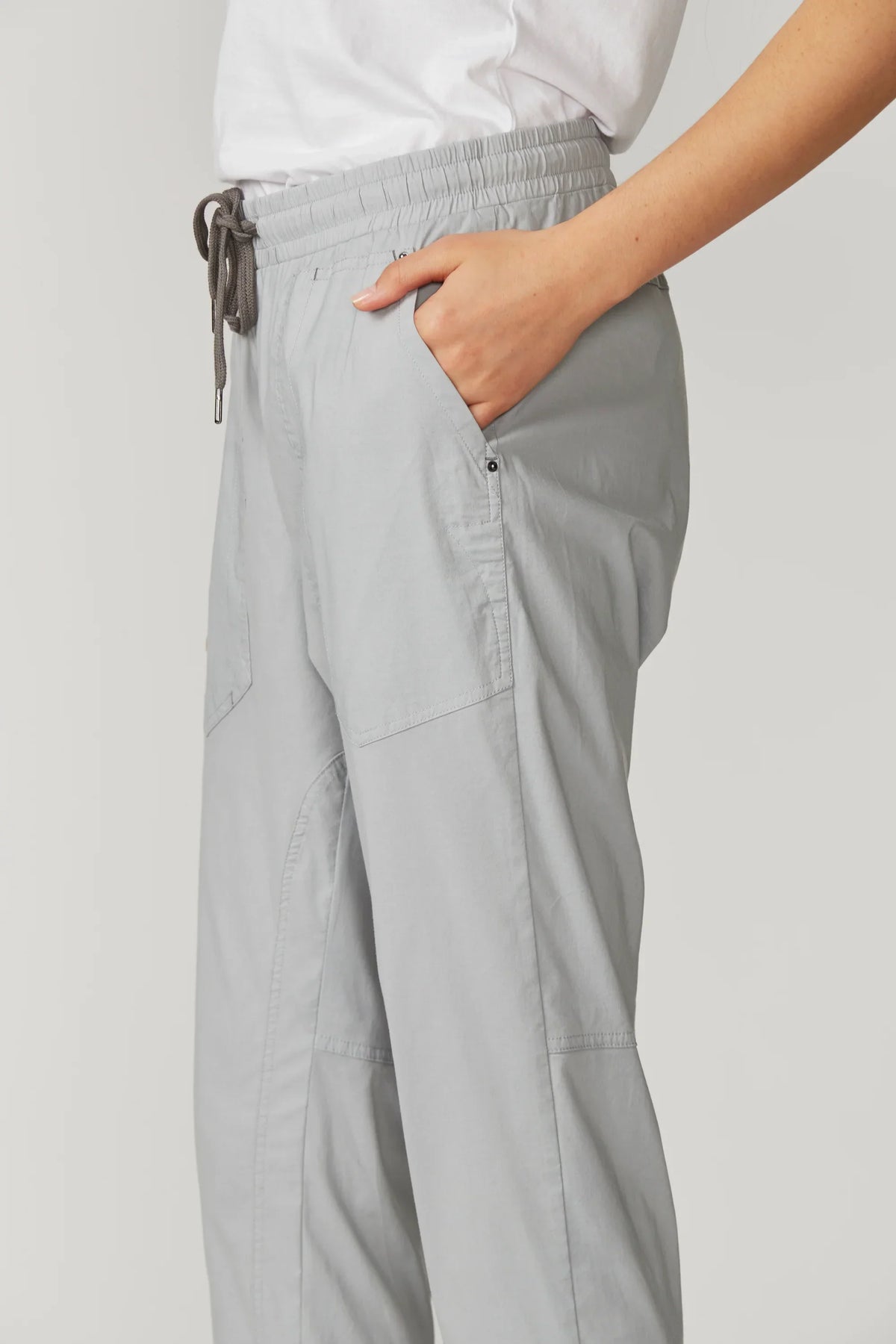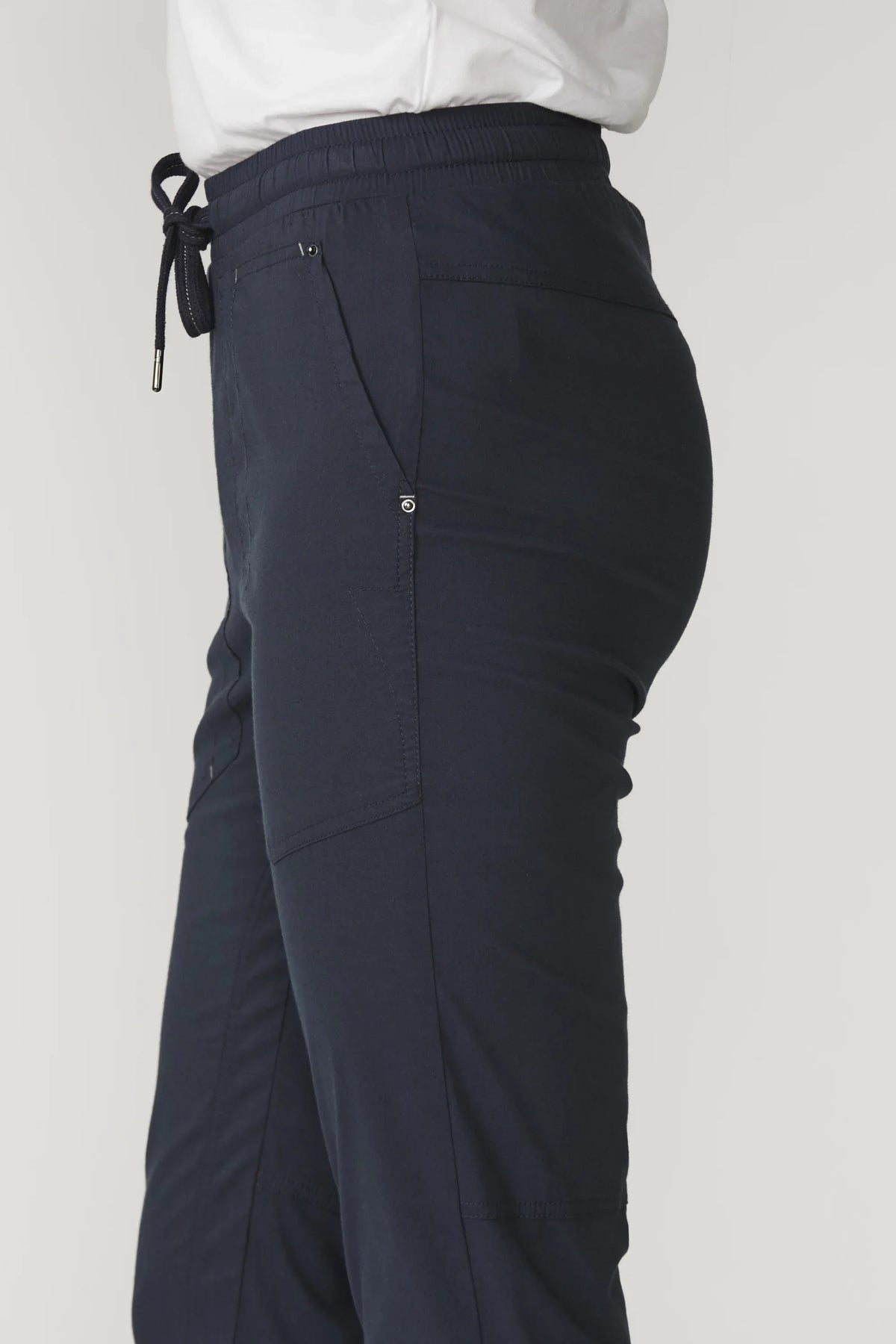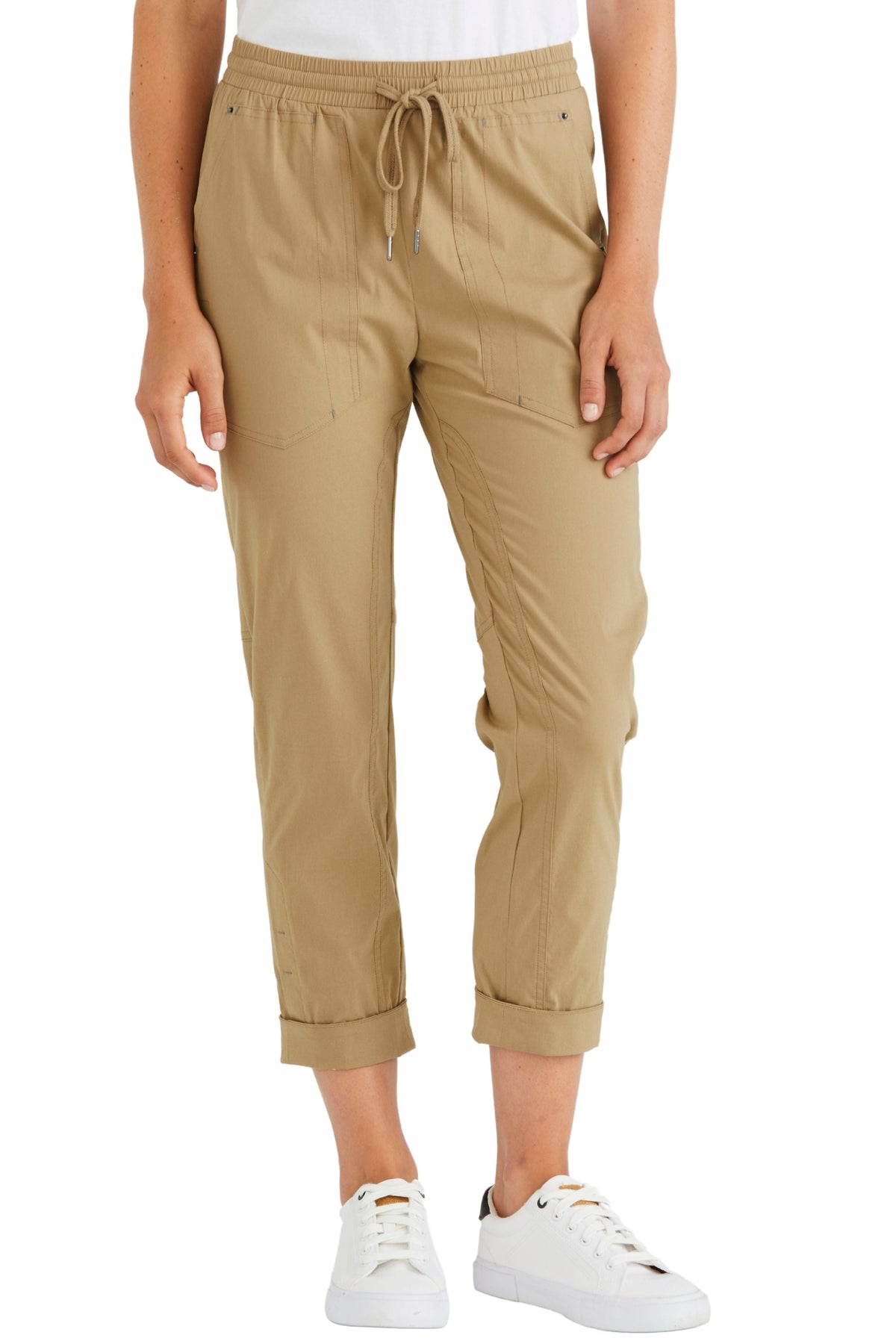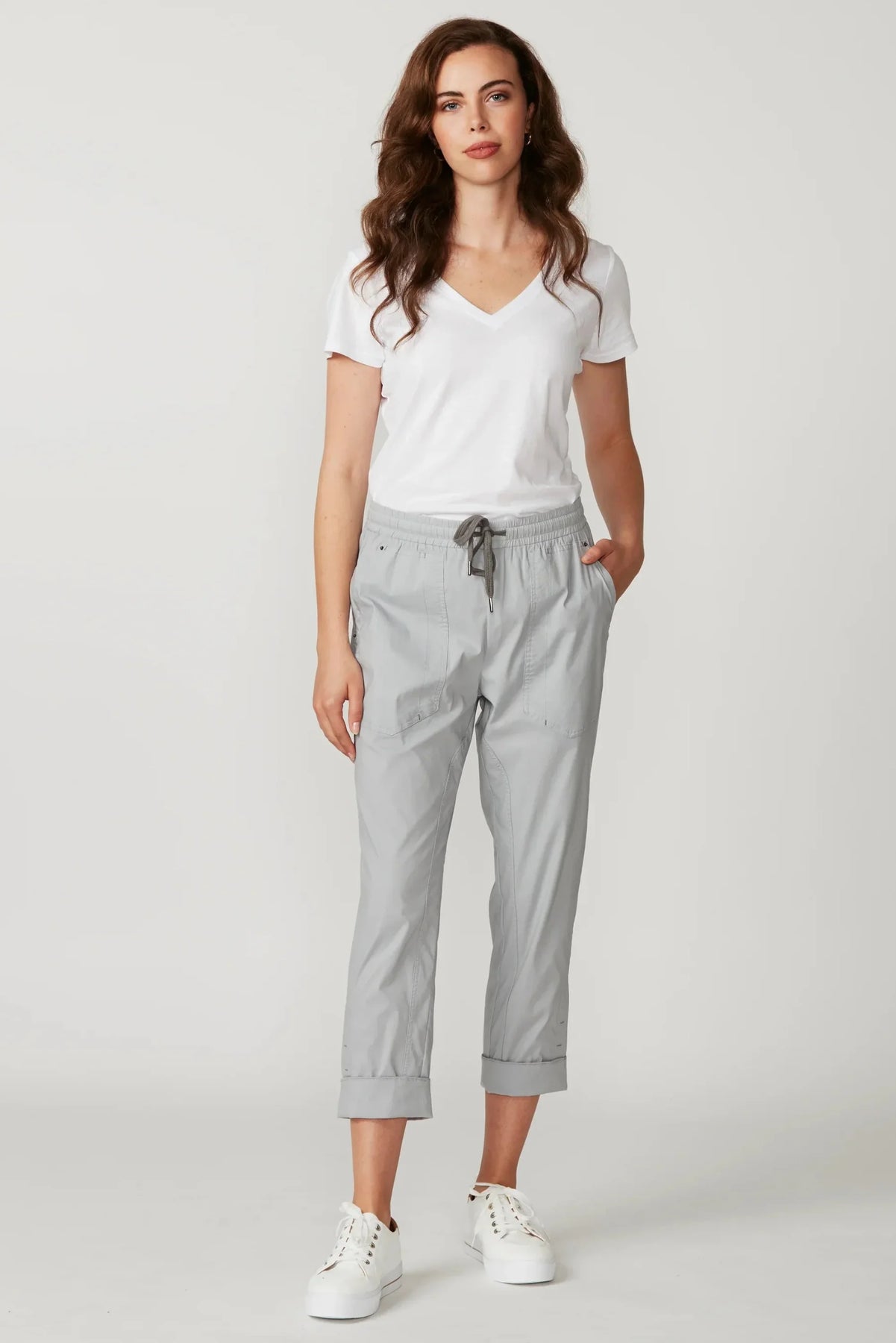 The LTL port 7/8 pant - features elasticated waist with adjustable drawcord, front pocket with antique nickel hardware & relaxed leg with optional turn up cuff. Perfect lightweight cotton-rich stretch pant for everyday.