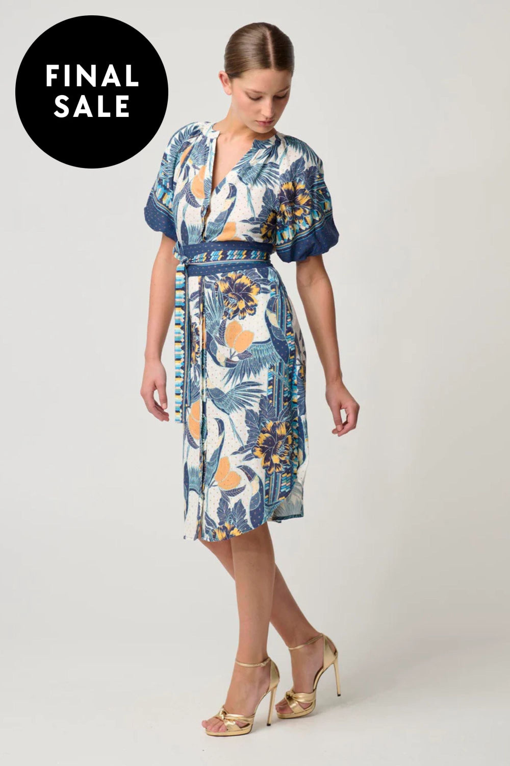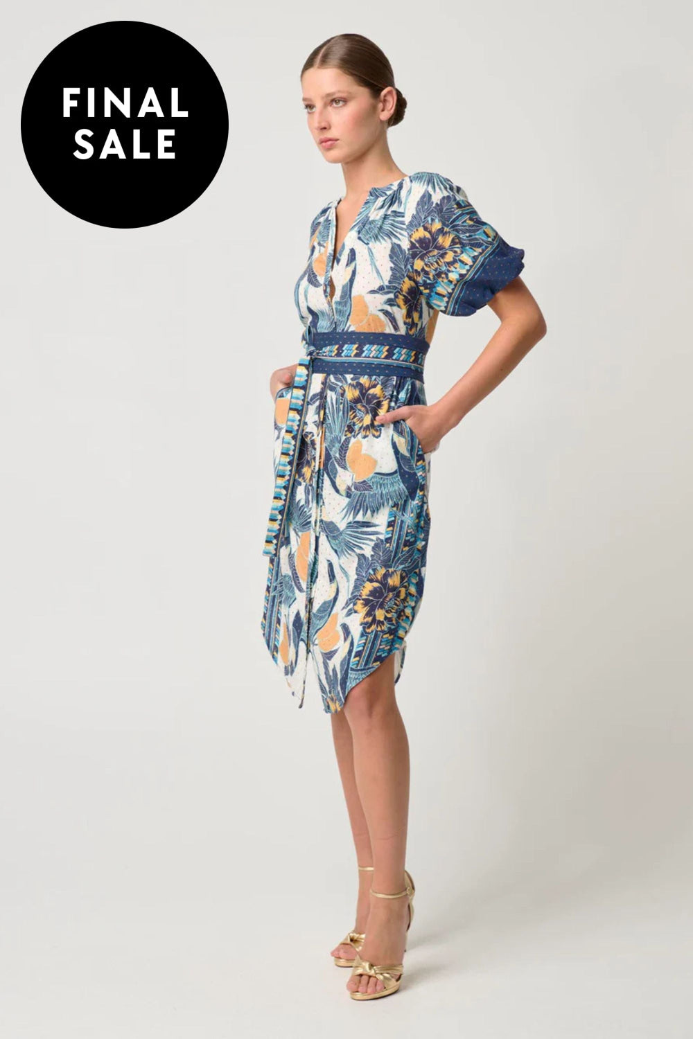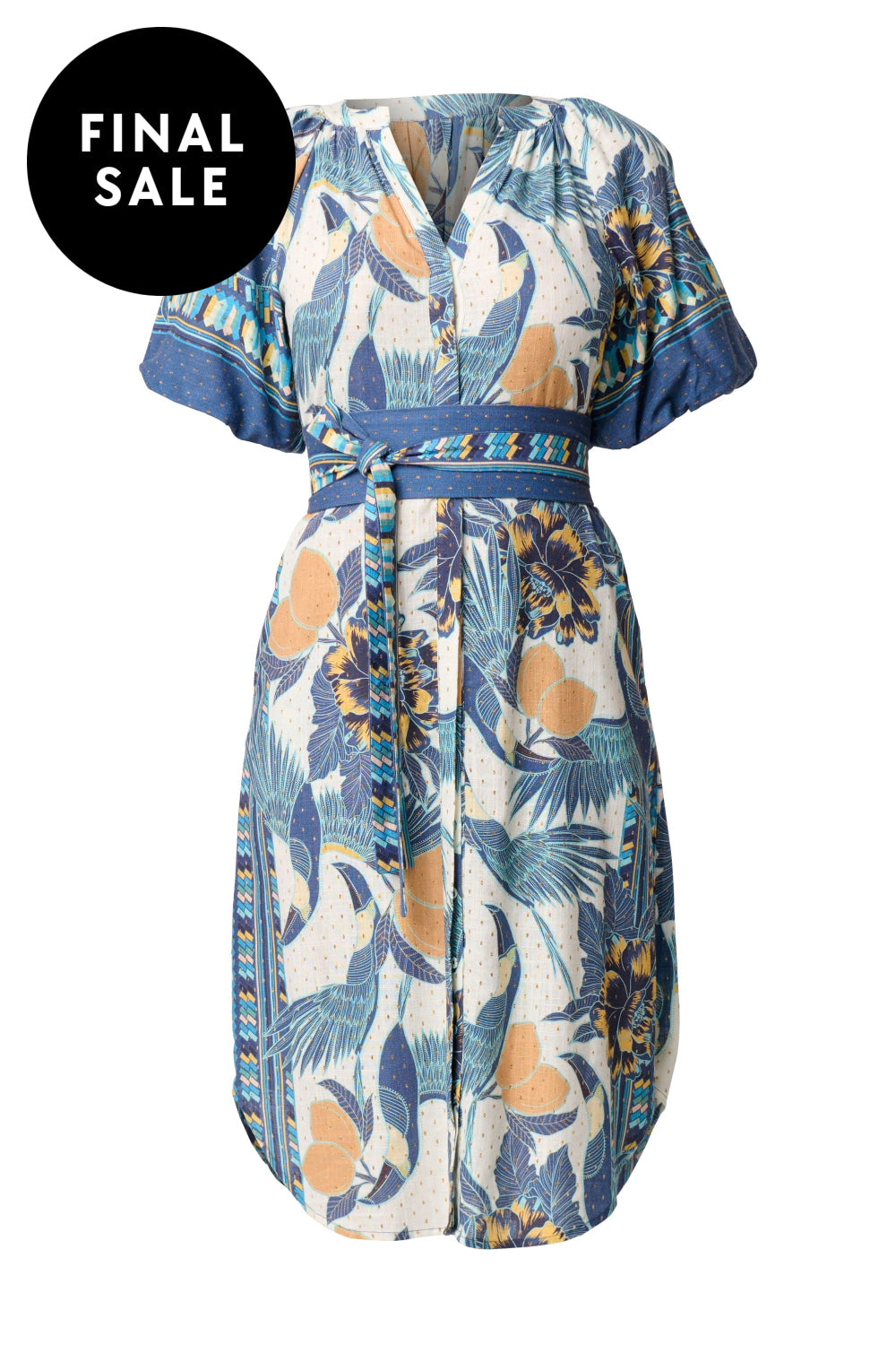 Meet the Bijou Linen Viscose Dress, a perfect fusion of modern sophistication and effortless comfort. Crafted from a breathable linen-viscose blend, this dress is designed to flatter with its curved hemline, offering a graceful drape and fluid movement. The voluminous puff sleeves with elastic cuffs add a touch of bold femininity, while the button loop front closure brings a subtle vintage-inspired charm. Complete with a removable waist tie, the Bijou dress allows for customisable styling, letting you define your silhouette for any occasion. Ideal for daytime events or evening gatherings, this dress offers versatility and standout appeal.