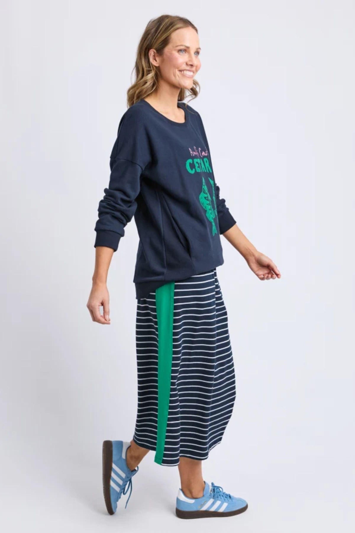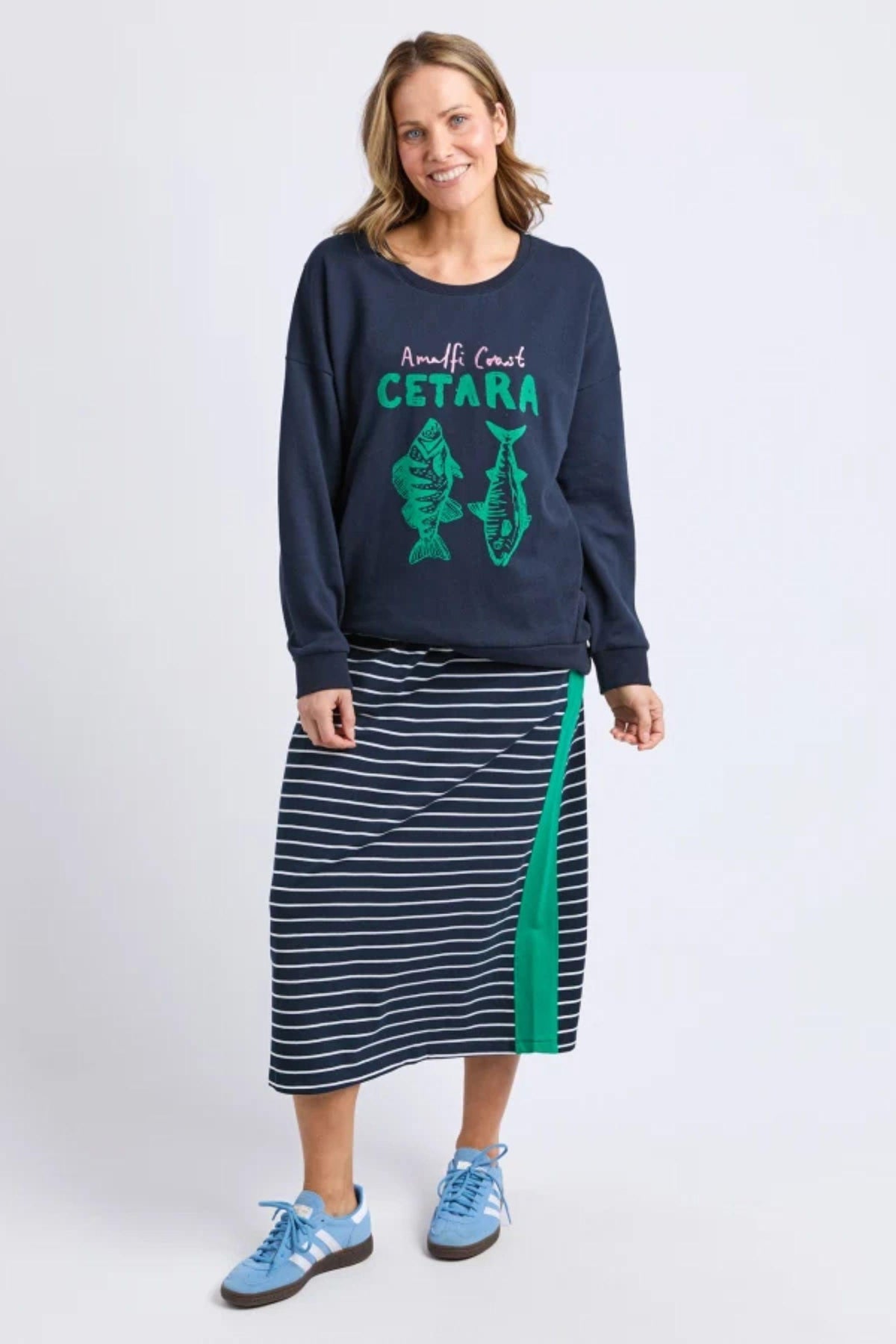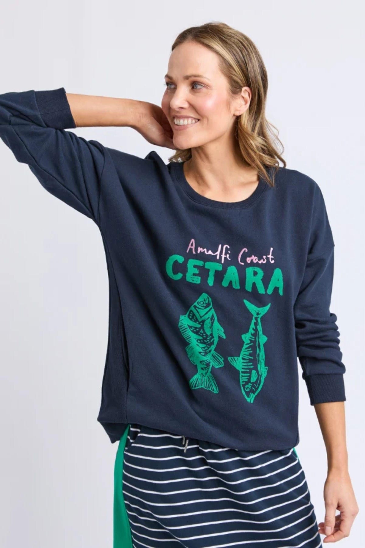 The Elm Cetara Crew combines cosy comfort with statement Elm detailing. Designed in a relaxed fit from 100% cotton unbrushed fleece, it features exclusive Elm artwork, rib detailing down the sides and a curved hem with back hem drop. Style with relaxed pants or denim for easy, everyday layering.