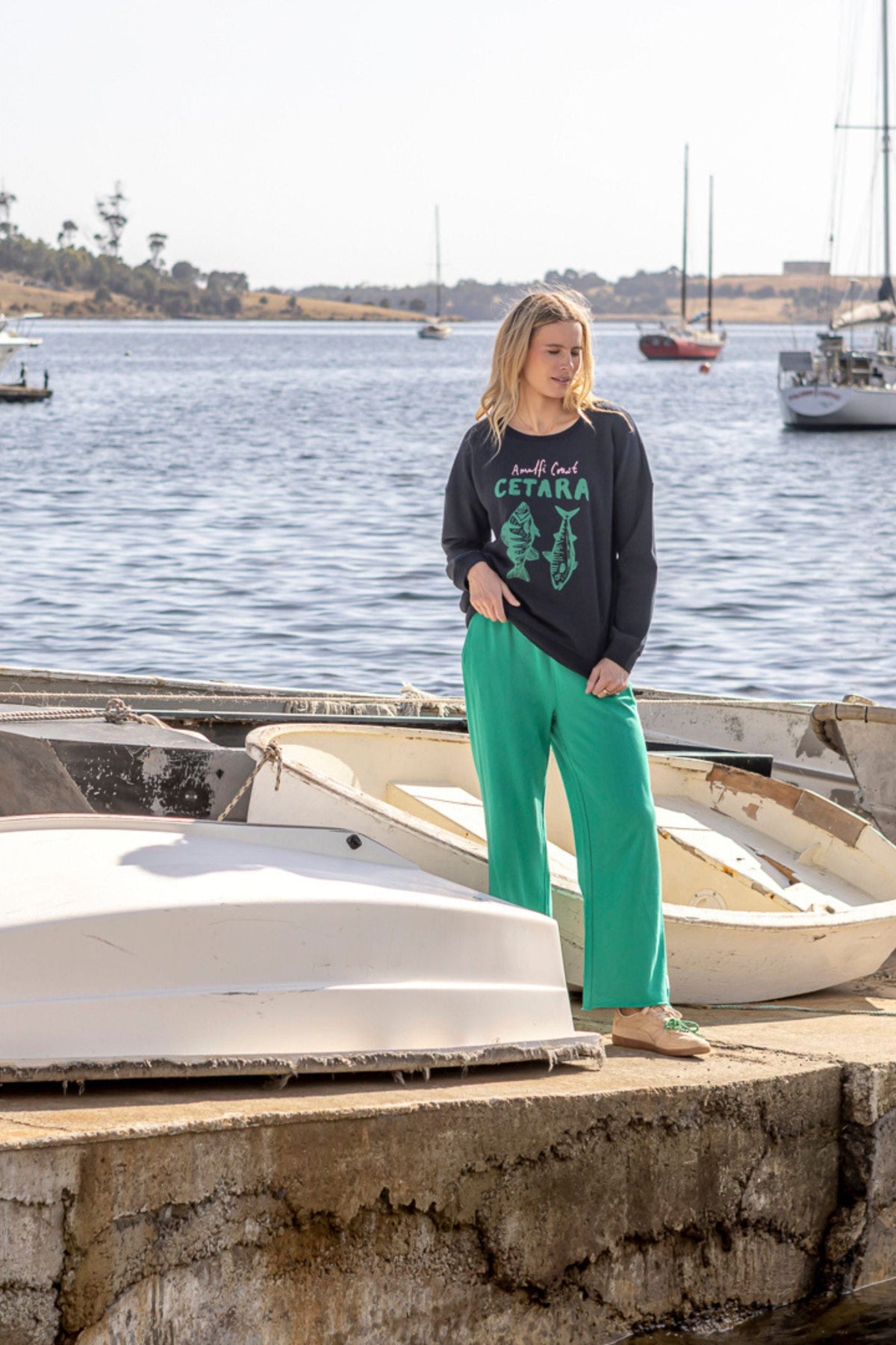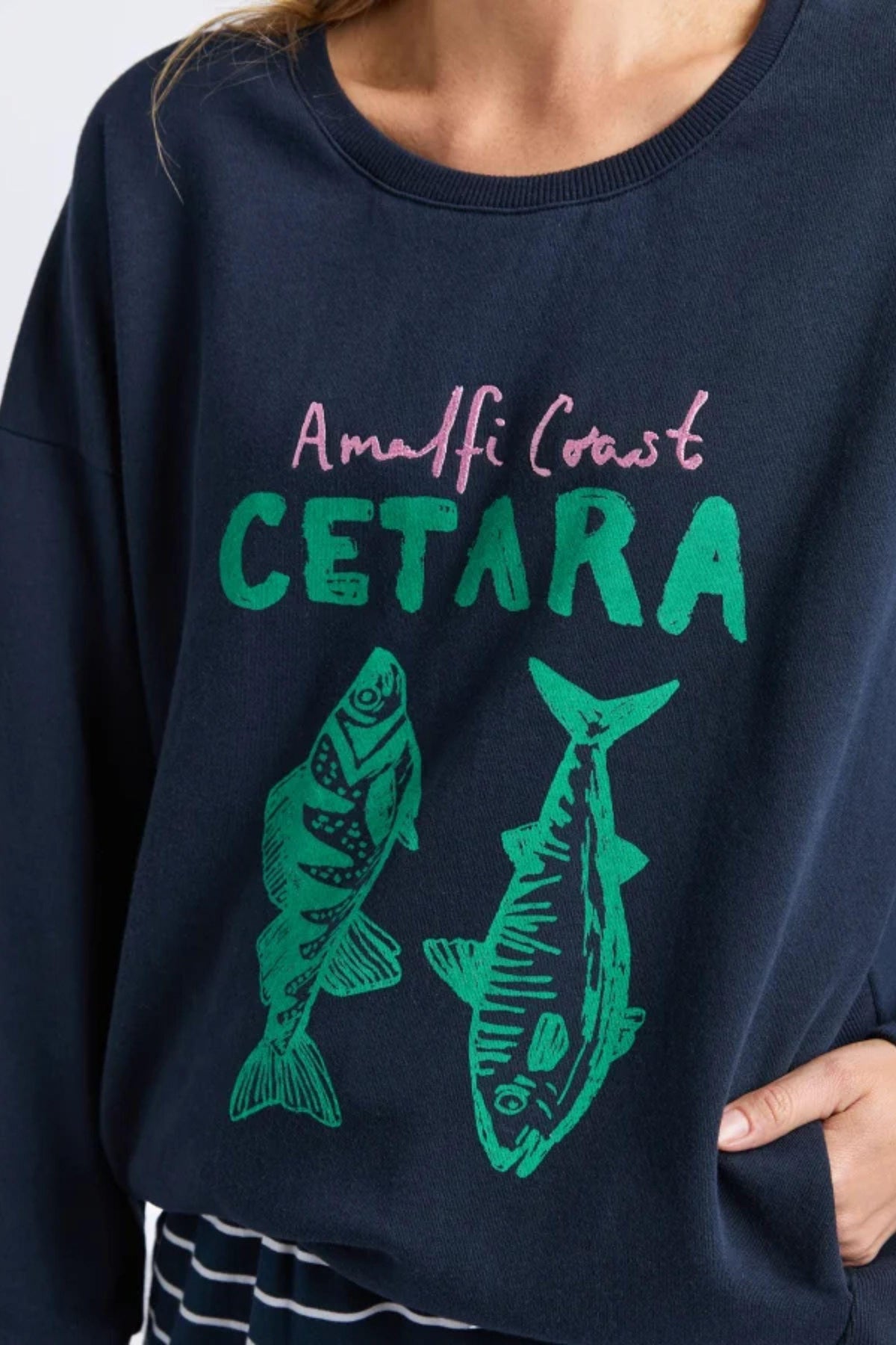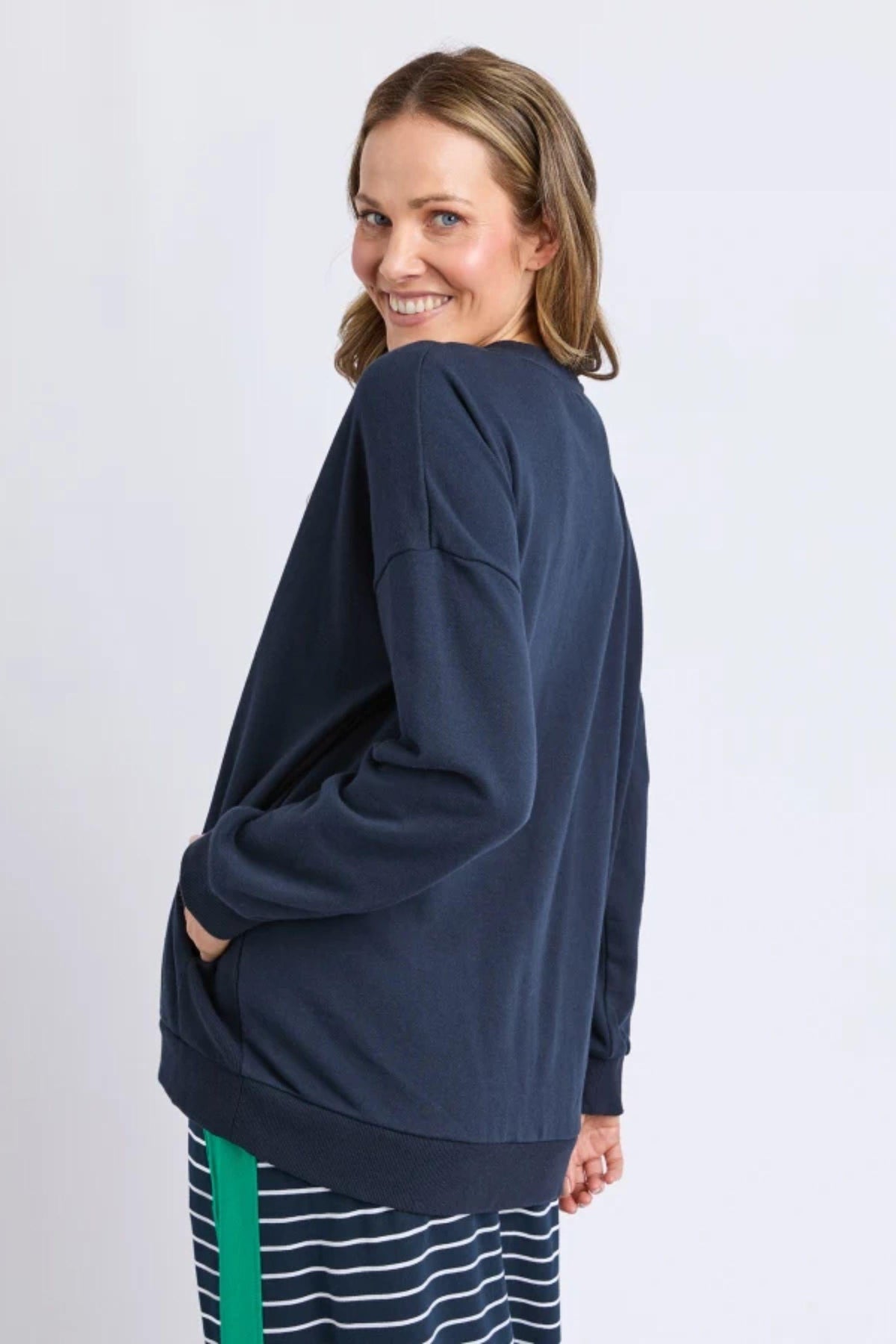 The Elm Cetara Crew combines cosy comfort with statement Elm detailing. Designed in a relaxed fit from 100% cotton unbrushed fleece, it features exclusive Elm artwork, rib detailing down the sides and a curved hem with back hem drop. Style with relaxed pants or denim for easy, everyday layering.