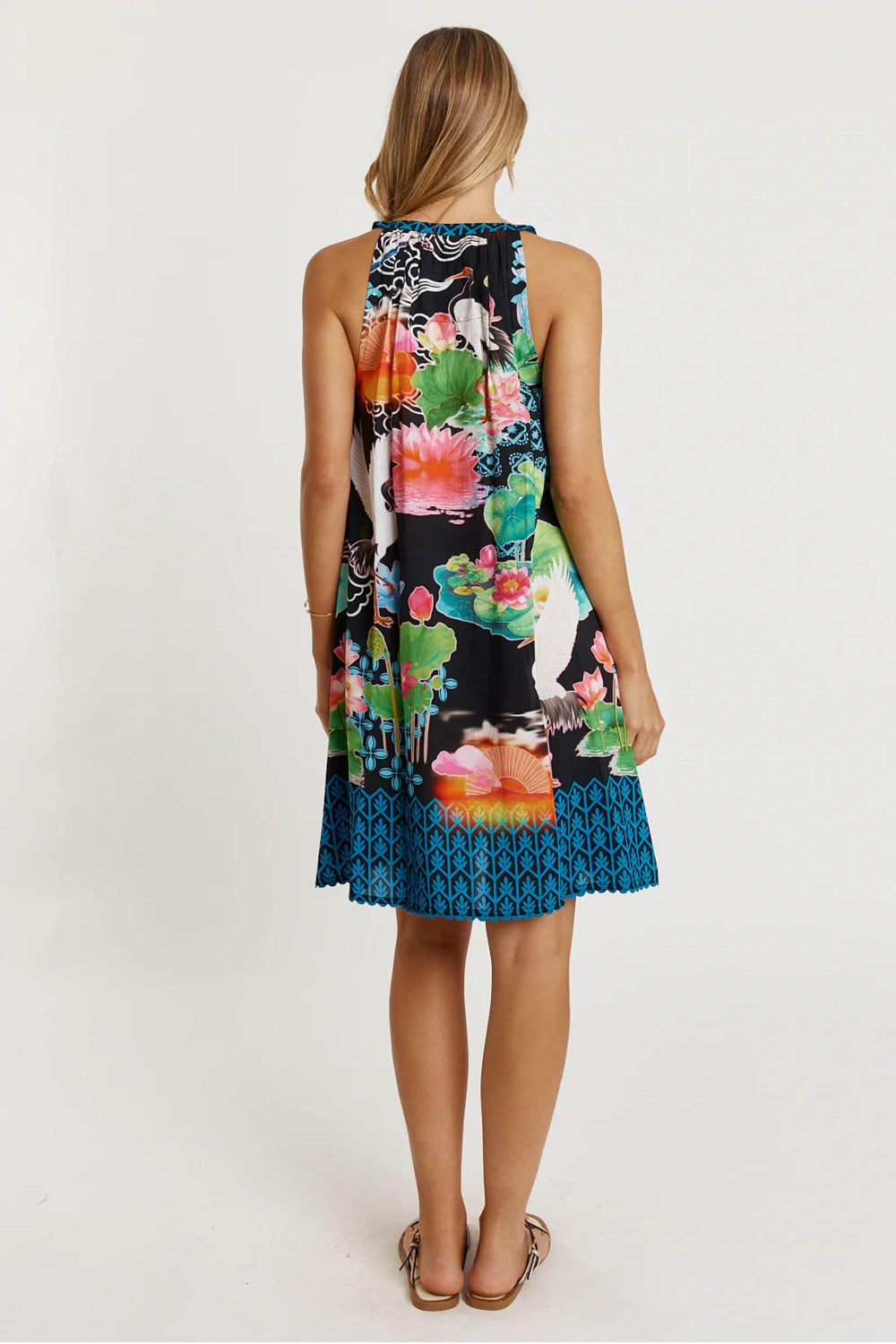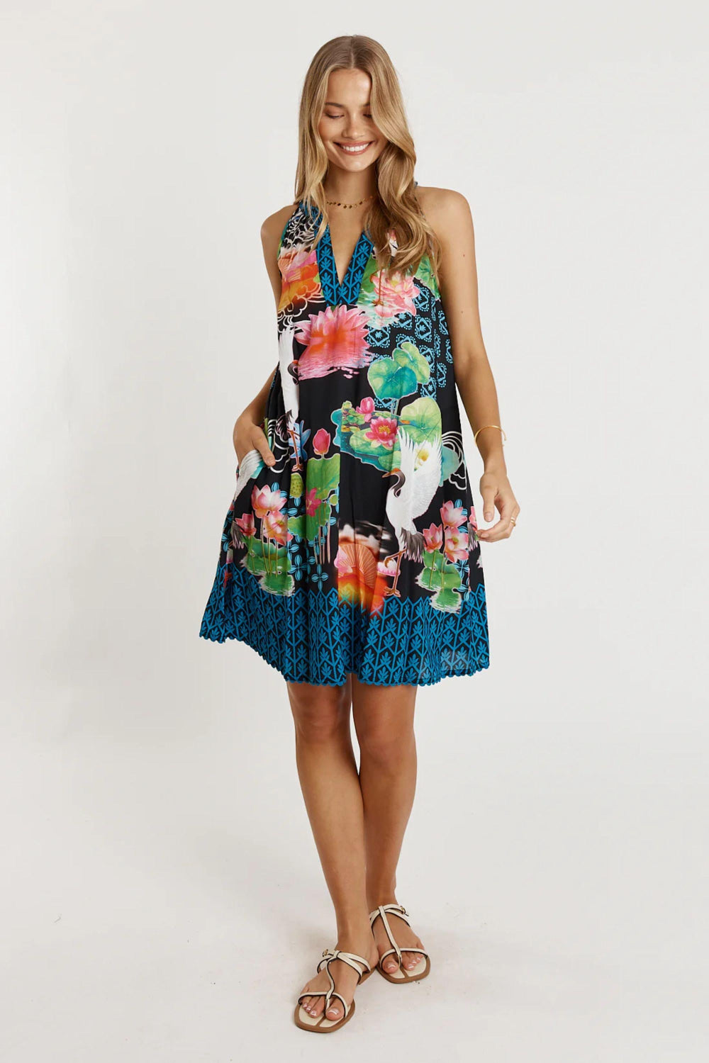Stepping into warm days feels effortless in the Lula Life Akiko Sundress, a breezy favourite made from 100% viscose for a soft, lightweight feel. Designed with a round neck with band, this relaxed A-line dress gives you easy movement and everyday comfort. The side pockets add a practical touch, while the knee-length cut and ricrac trim on the hem keep things fun and feminine. Finished in a Japanese-inspired digital print and proudly designed in Australia, it’s the perfect throw-on style for weekends, holidays, or sunshine-filled outings.