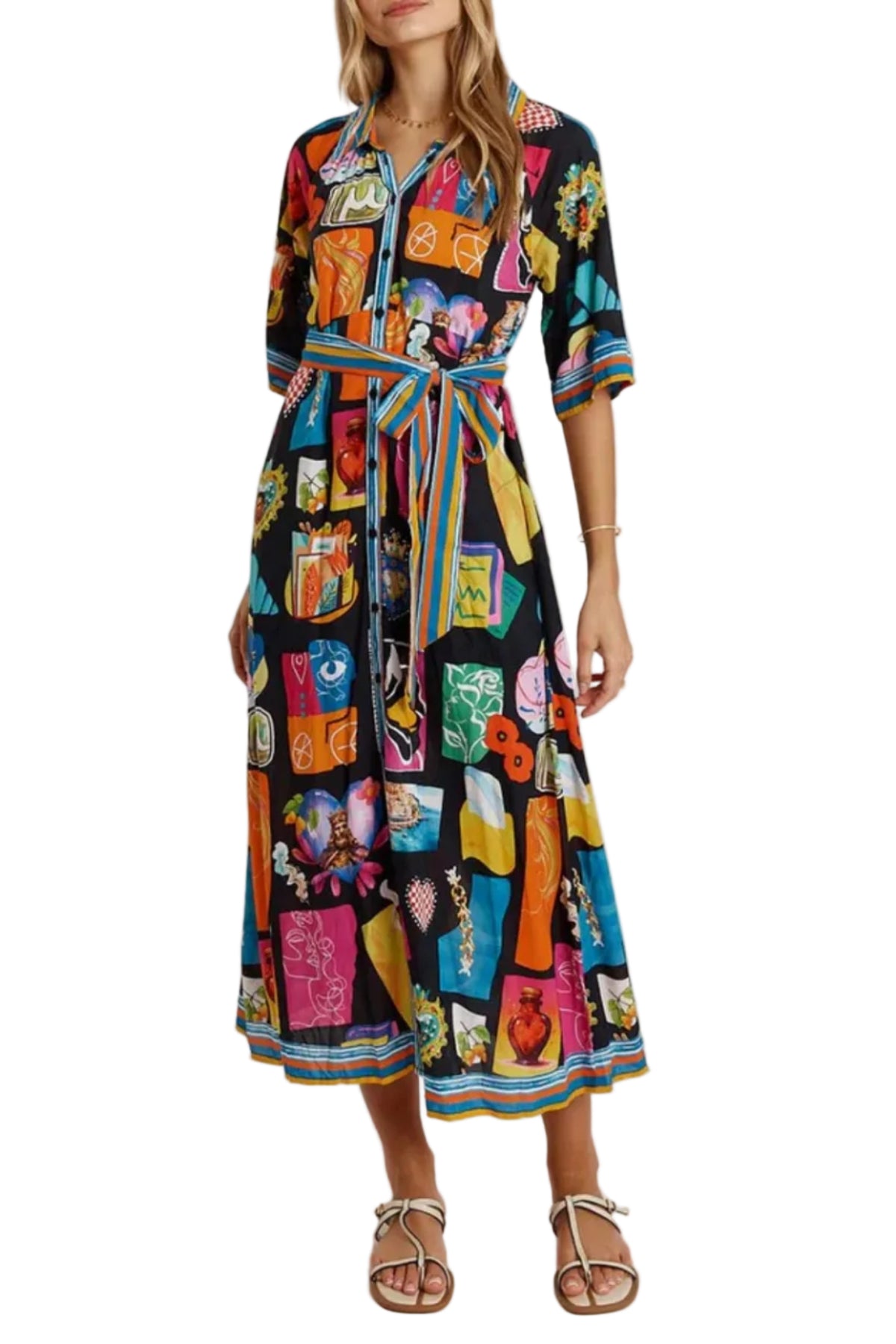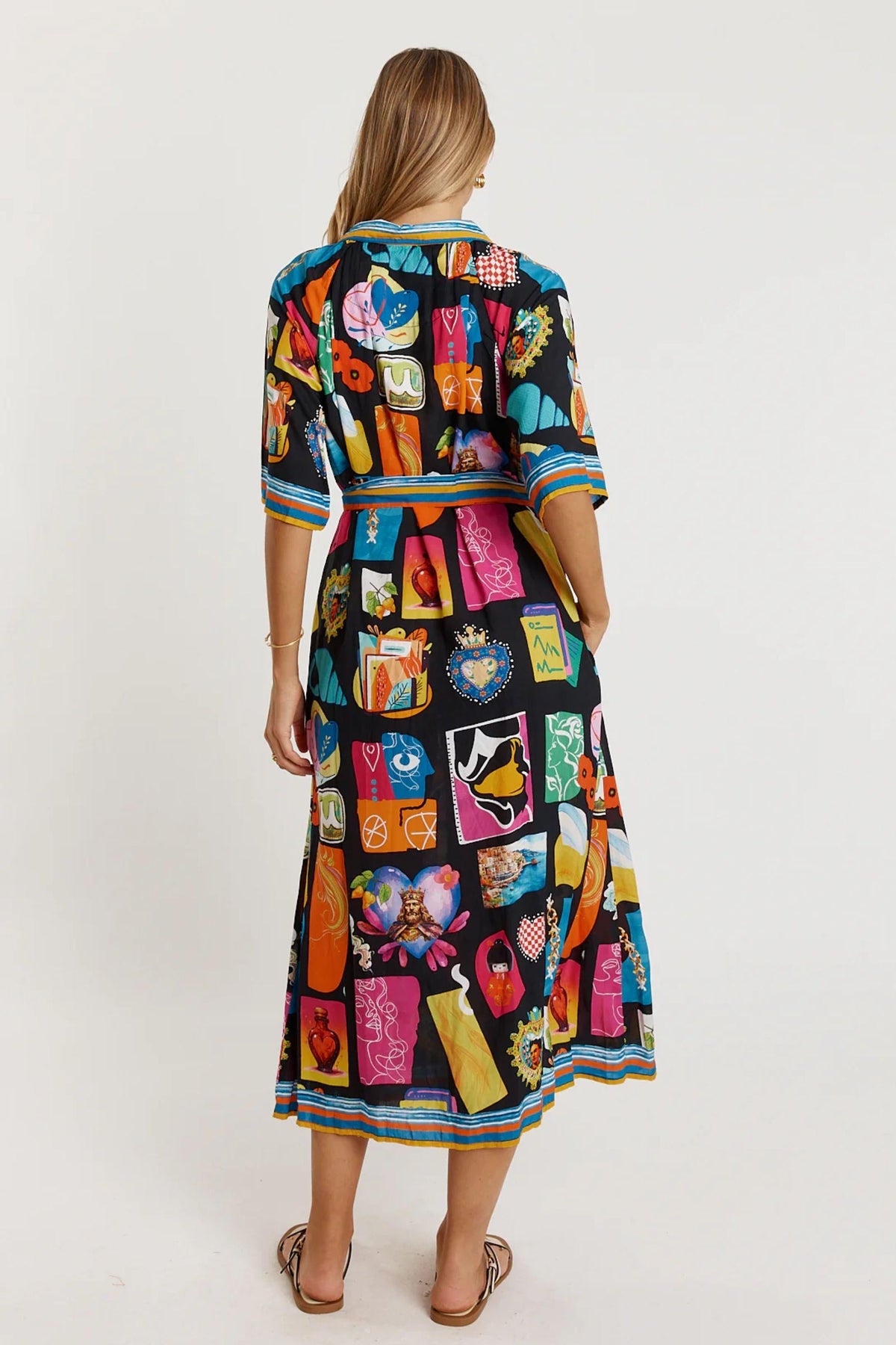 Soft, stylish, and easy to wear, the Lula Life Odette Buttoned Midi is your go-to for relaxed warm-weather dressing. Made from 100% viscose, it feels lightweight, breathable, and effortlessly comfortable. The collared neckline and buttoned-through design give it a clean, polished look, while the A-line shape adds natural movement. With below-elbow sleeves, handy side pockets, and an optional waist tie for shaping, it’s a versatile midi that works for everyday outings. Finished in a vibrant digital print and proudly designed in Australia, this dress blends comfort and colour with ease.
