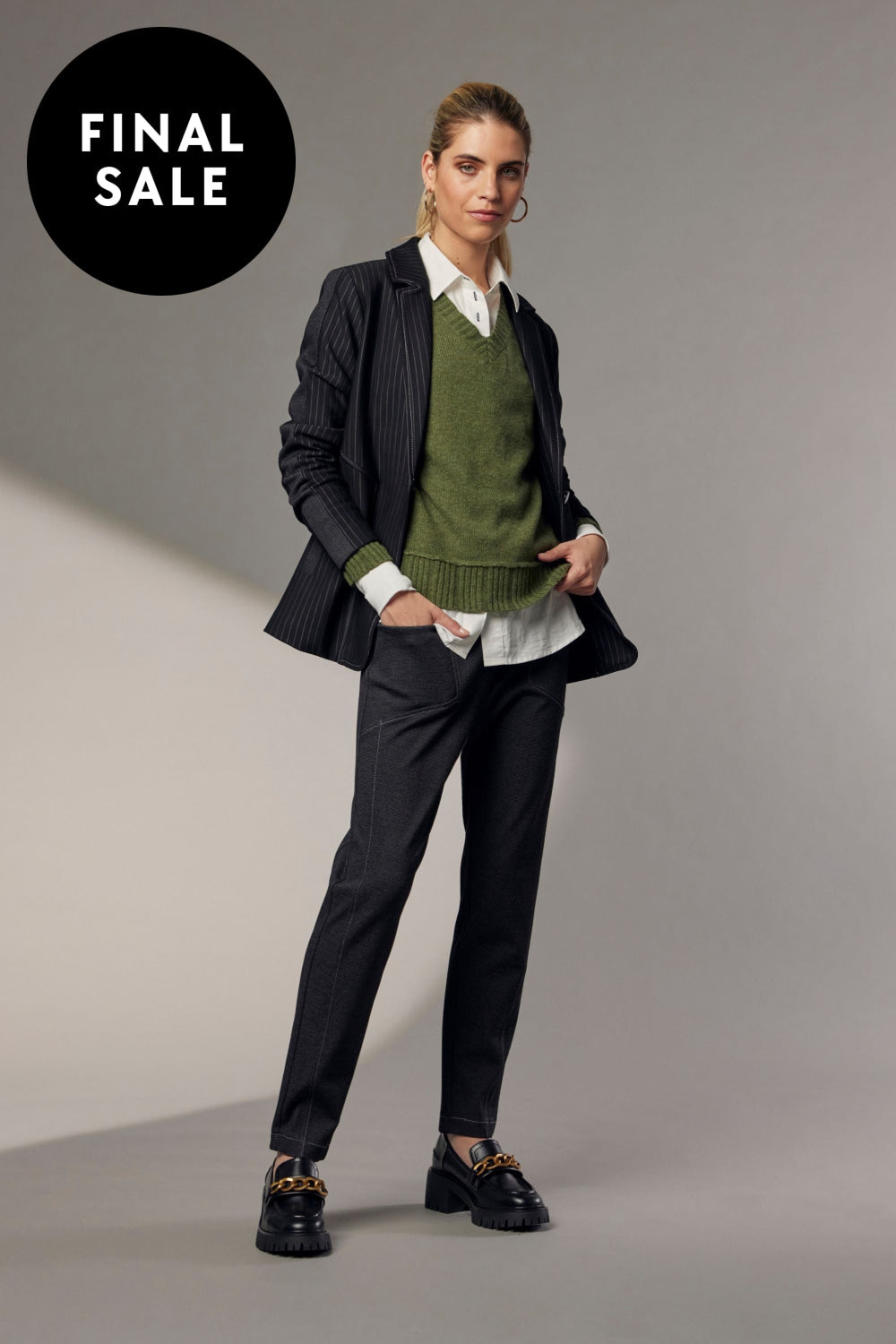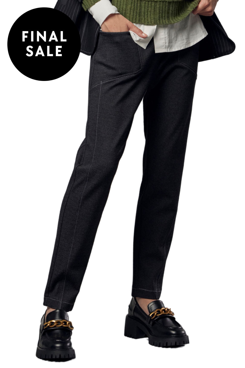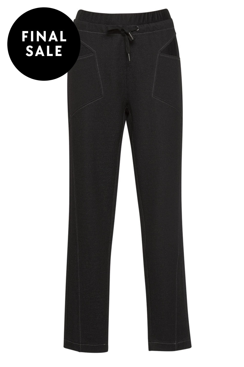 Introducing the Litt Pant by Madly Sweetly, the perfect blend of casual style and versatility. Designed for both travel and work, it's the ultimate wardrobe staple for weekends and beyond. Timeless in its design, this pant is a must-have for any modern wardrobe. Stretchy classic pant with angled seaming and front slanted pockets with a slim leg line. Drawstring waist is elasticated for a comfortable fit.