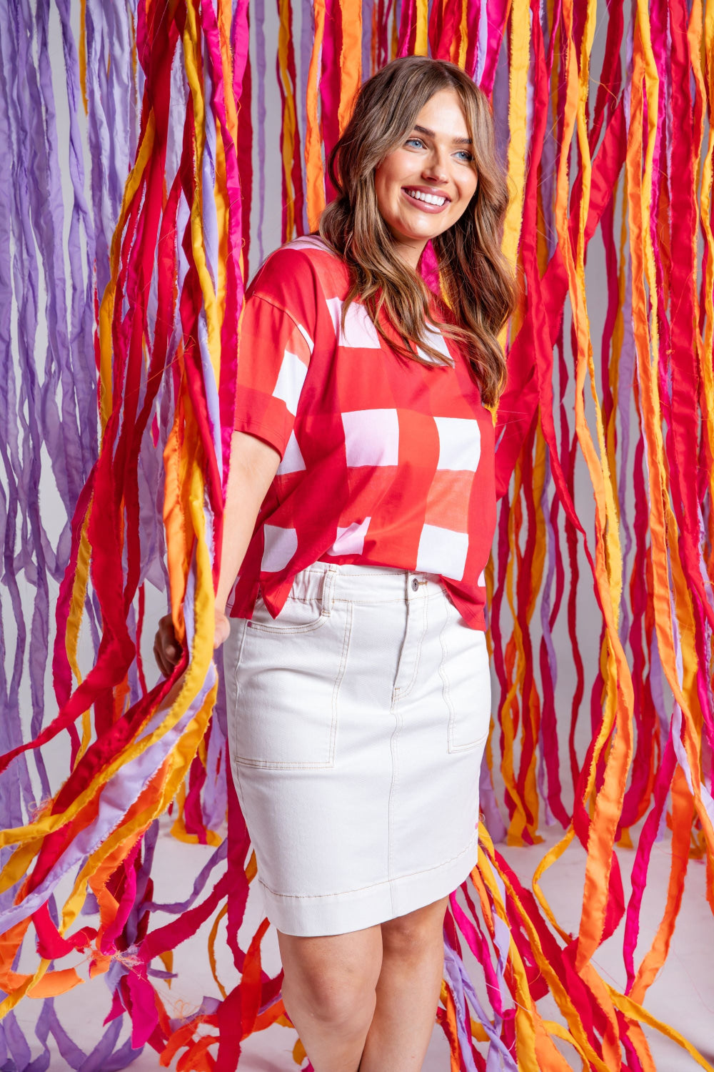 Featuring our exclusive Christmas Poppy Check the Edin Tee bring the fun of the party to any outfit with the colour and comfort of a 100% cotton tee.