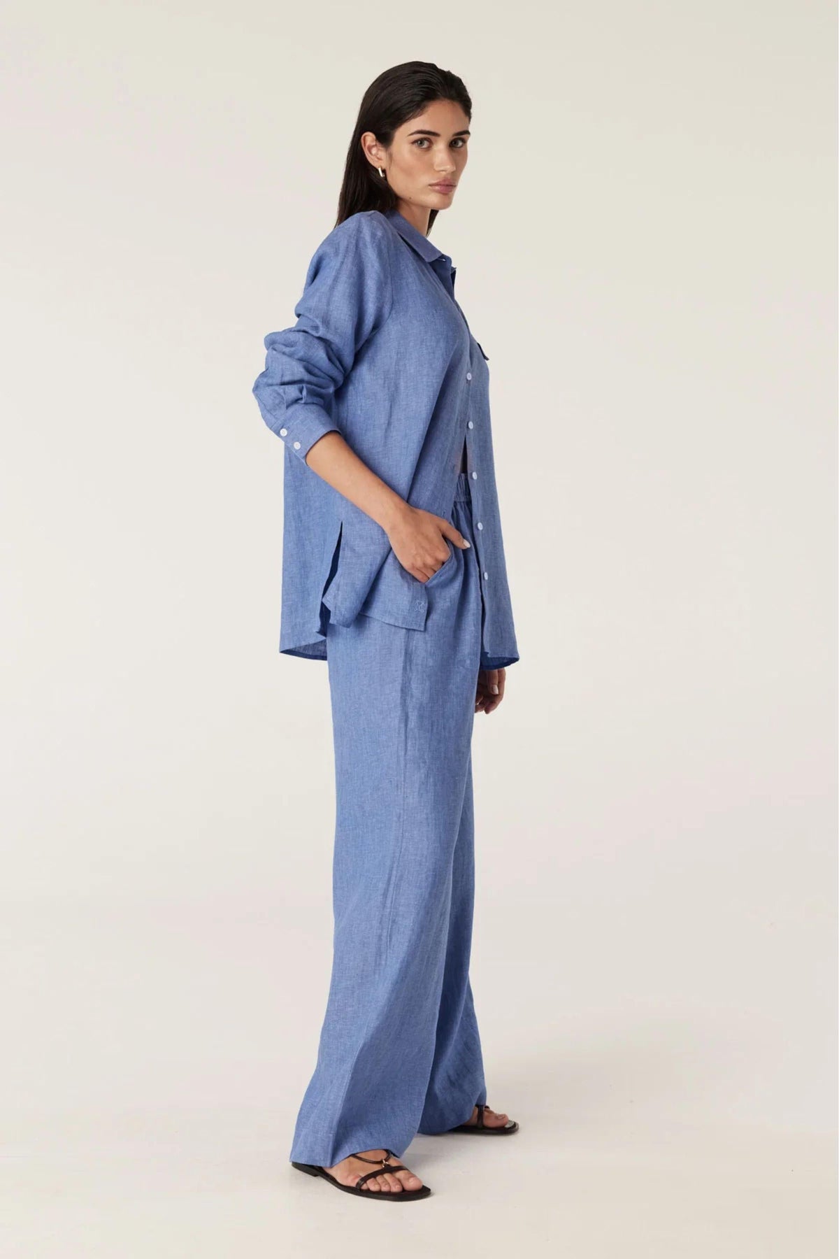 The Sail Shirt is a classic fit style crafted from French linen. It features long cuffed sleeves, contrast buttons and side splits for ease of wear. Pair it with the matching Sail Pant for a coordinated look.