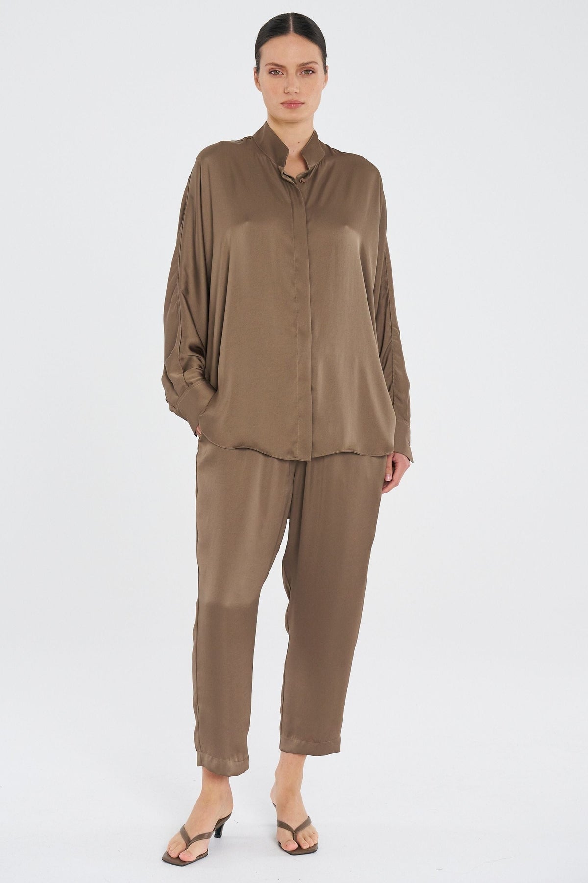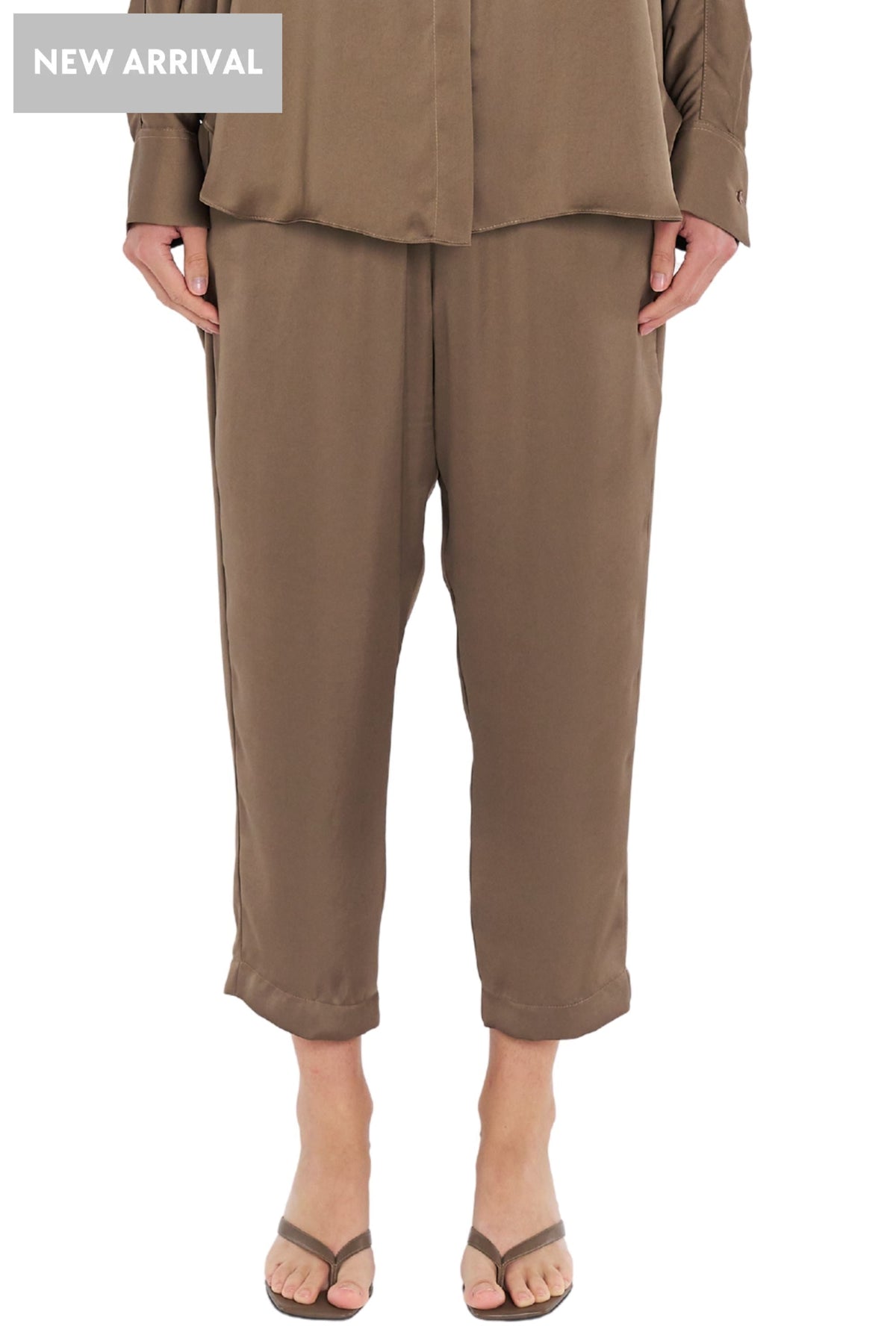 Crafted from Mirror Satin a fine gauge featherlight satin with an air flow finish for easy wearing. the Soft Capri pants are slightly cropped in length and cut for tapered fit through the leg.