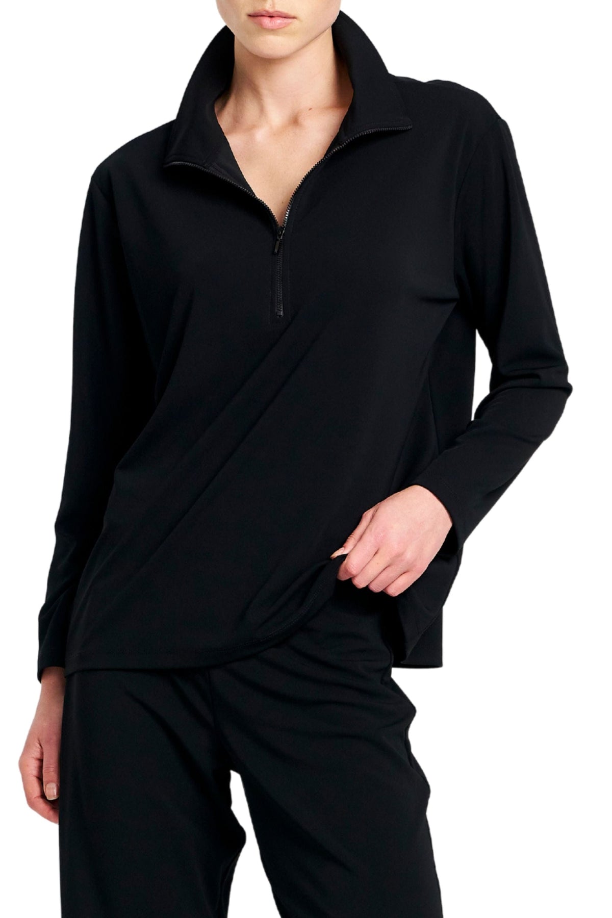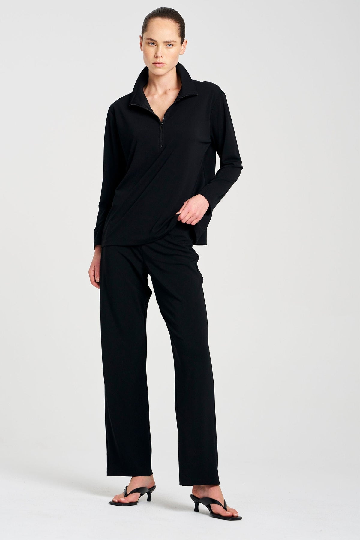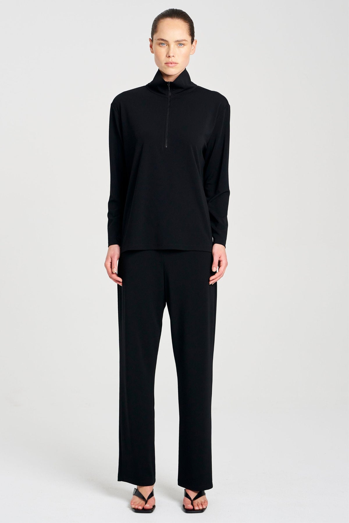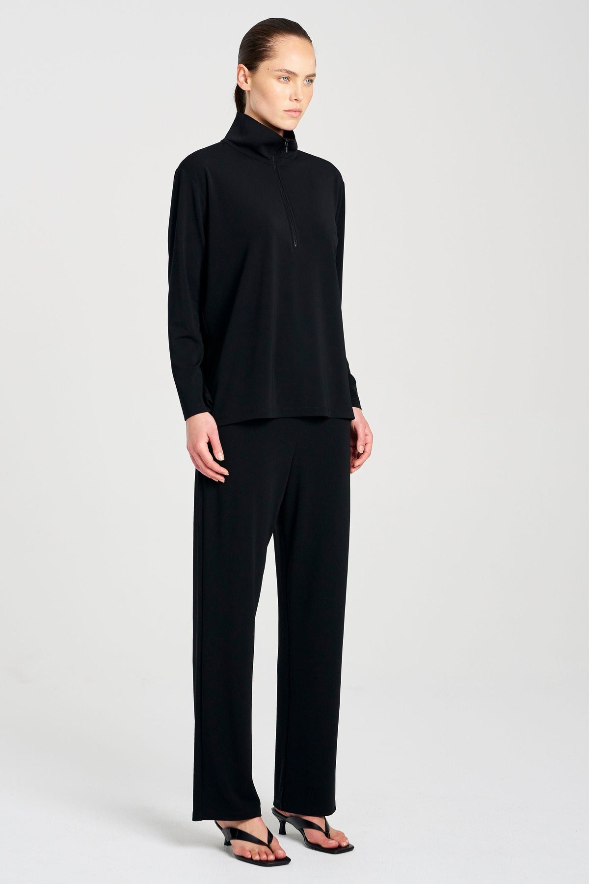 Crafted from Mela Purdie's compressed Matte Finish Powder Knit, The Zip Front Sweater features half zip detailing through front with a firm stand collar.