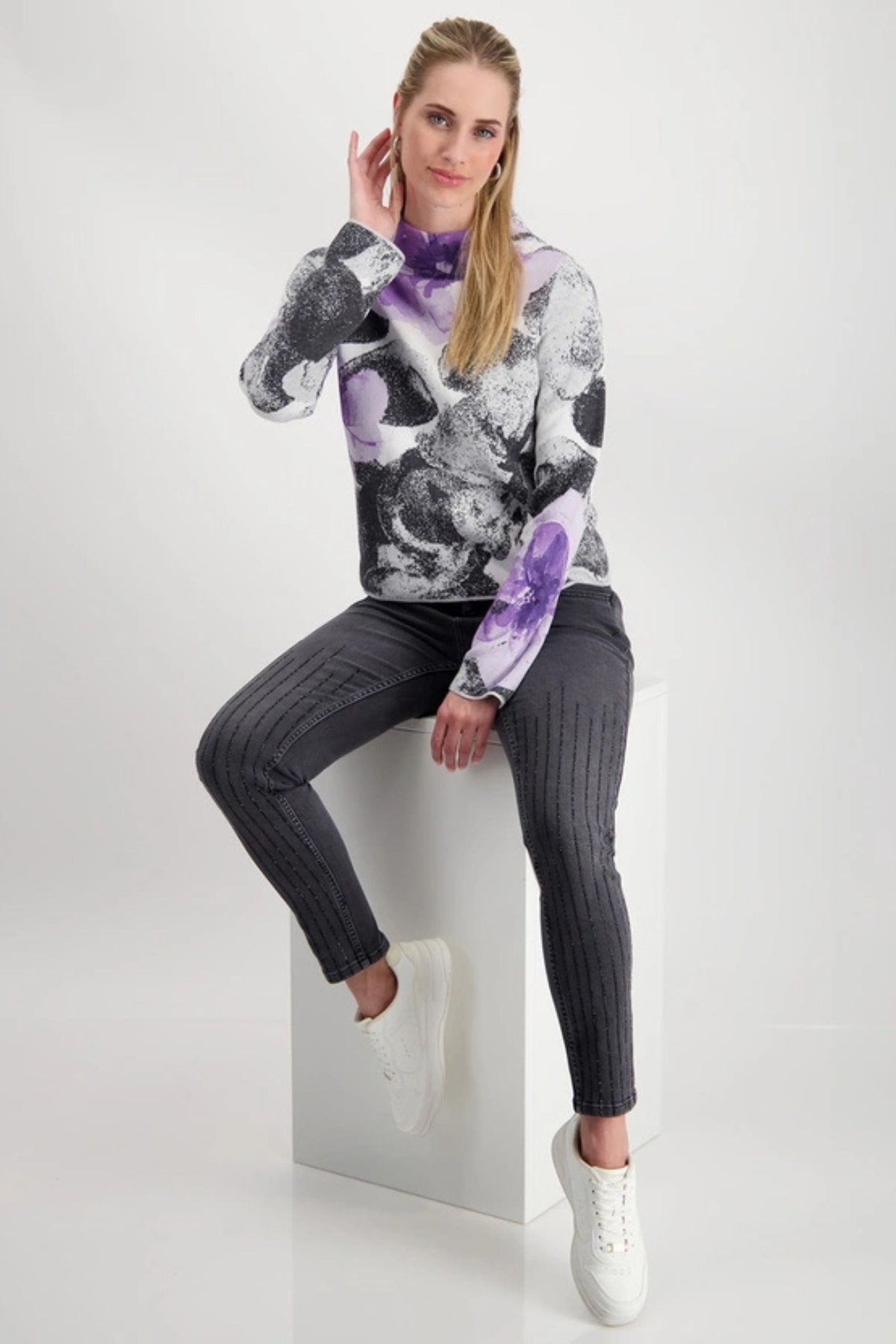 Introducing our Monari Floral Knit - the perfect blend of femininity and warmth. With a beautiful purple flower print, this sweater is both stylish and cozy. Elevate your winter wardrobe with this luxurious piece.