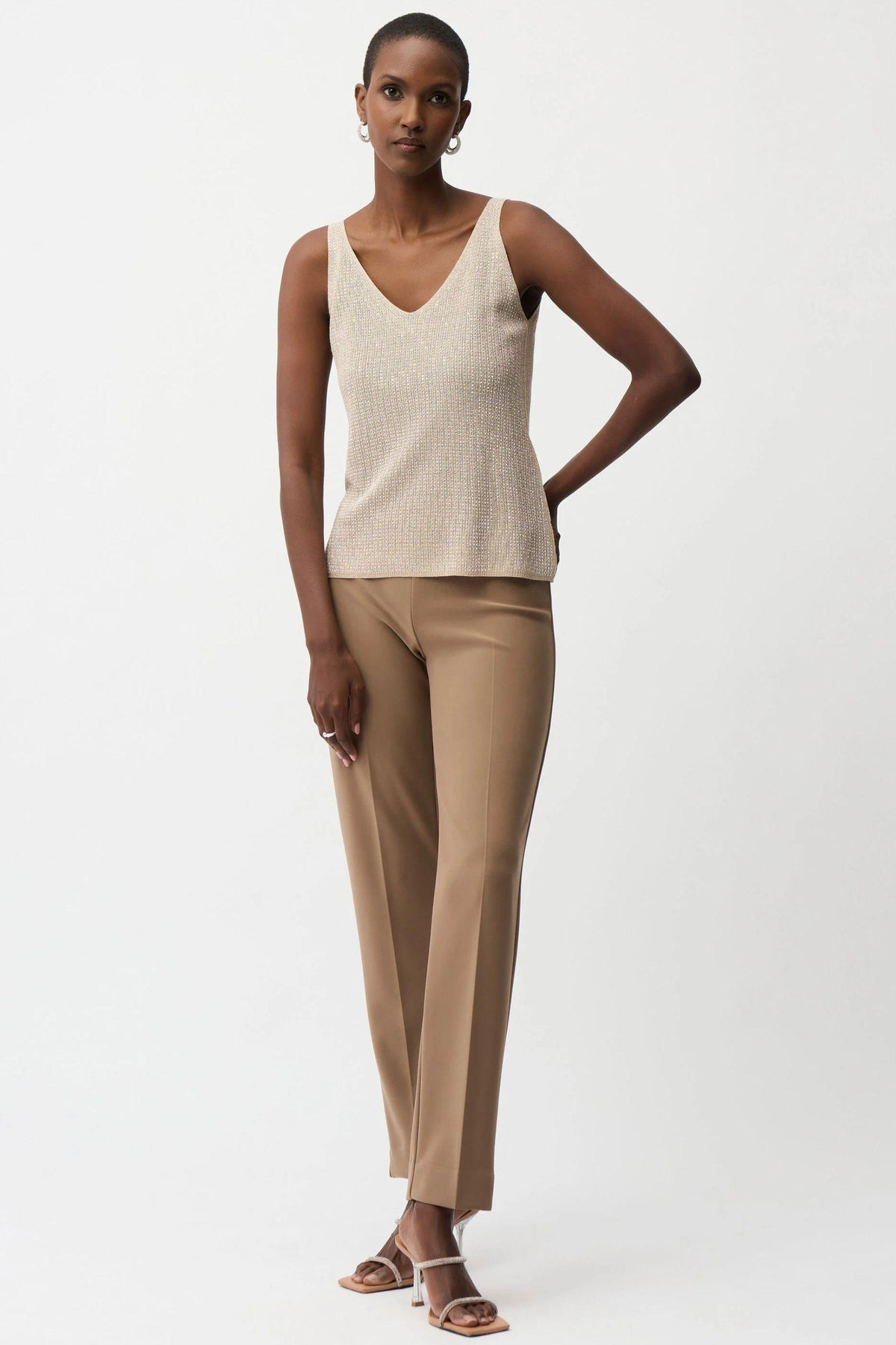 Get ready to dazzle at your next event in this sleeveless camisole. Crafted from a ribbed sweater knit blended with shimmering metallic fibres, it’s designed to catch the light and all the attention. The flattering V-neckline line in both the front and back, paired with iron-on detailing, makes this top perfect for any party or night out.