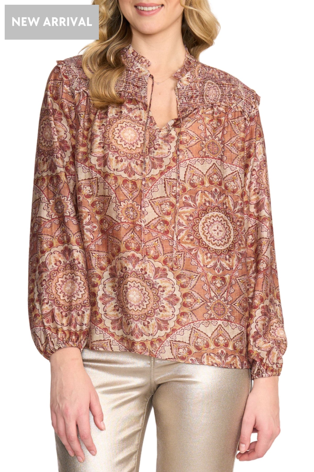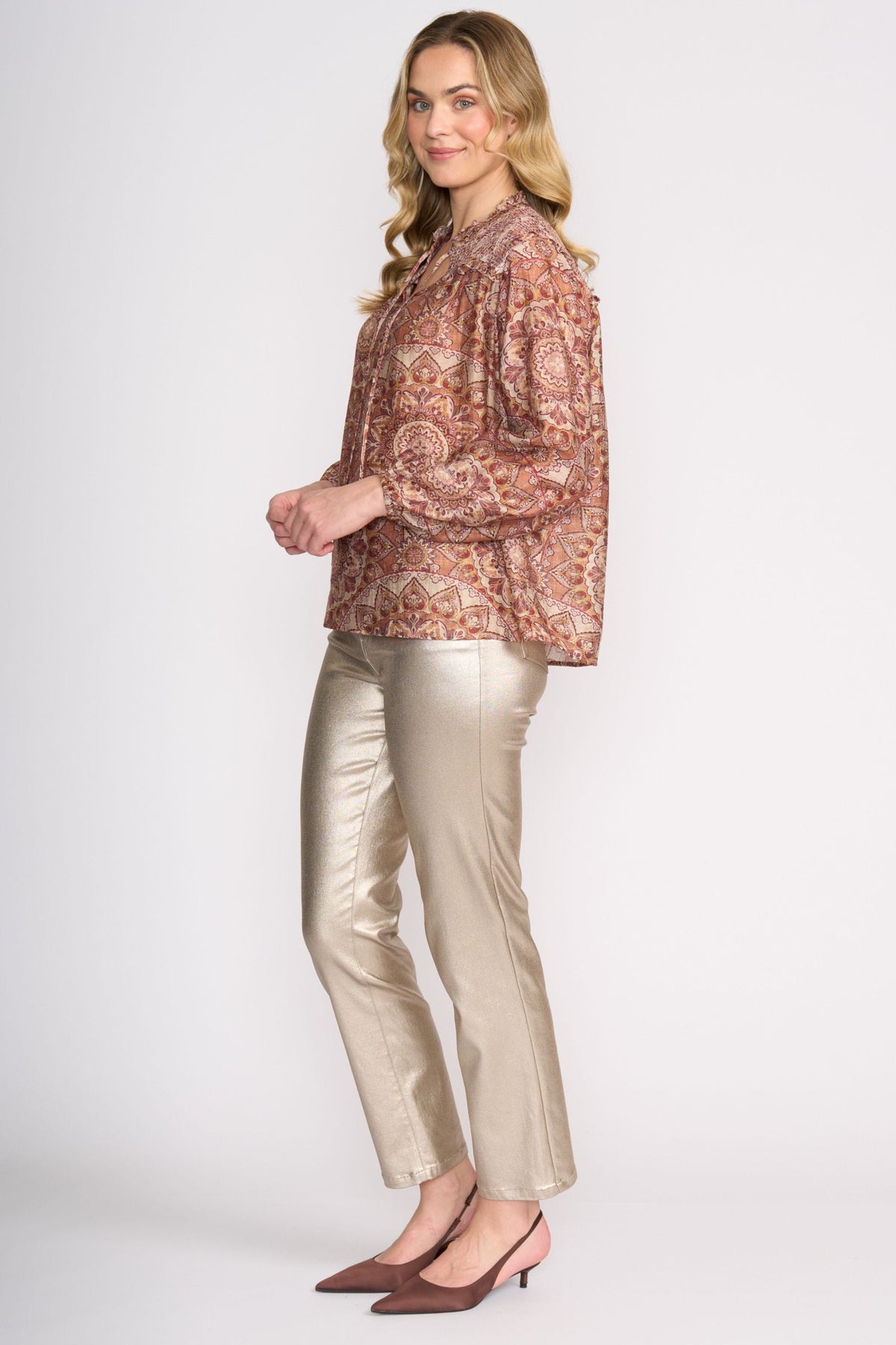 FOIL BLOUSE 8 / TAN STEPPING OUT BLOUSE - FO8514