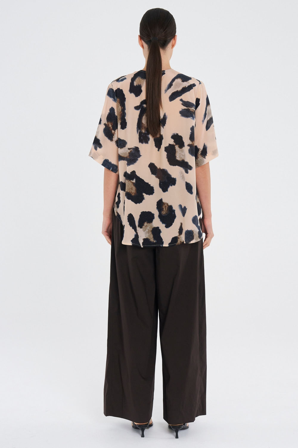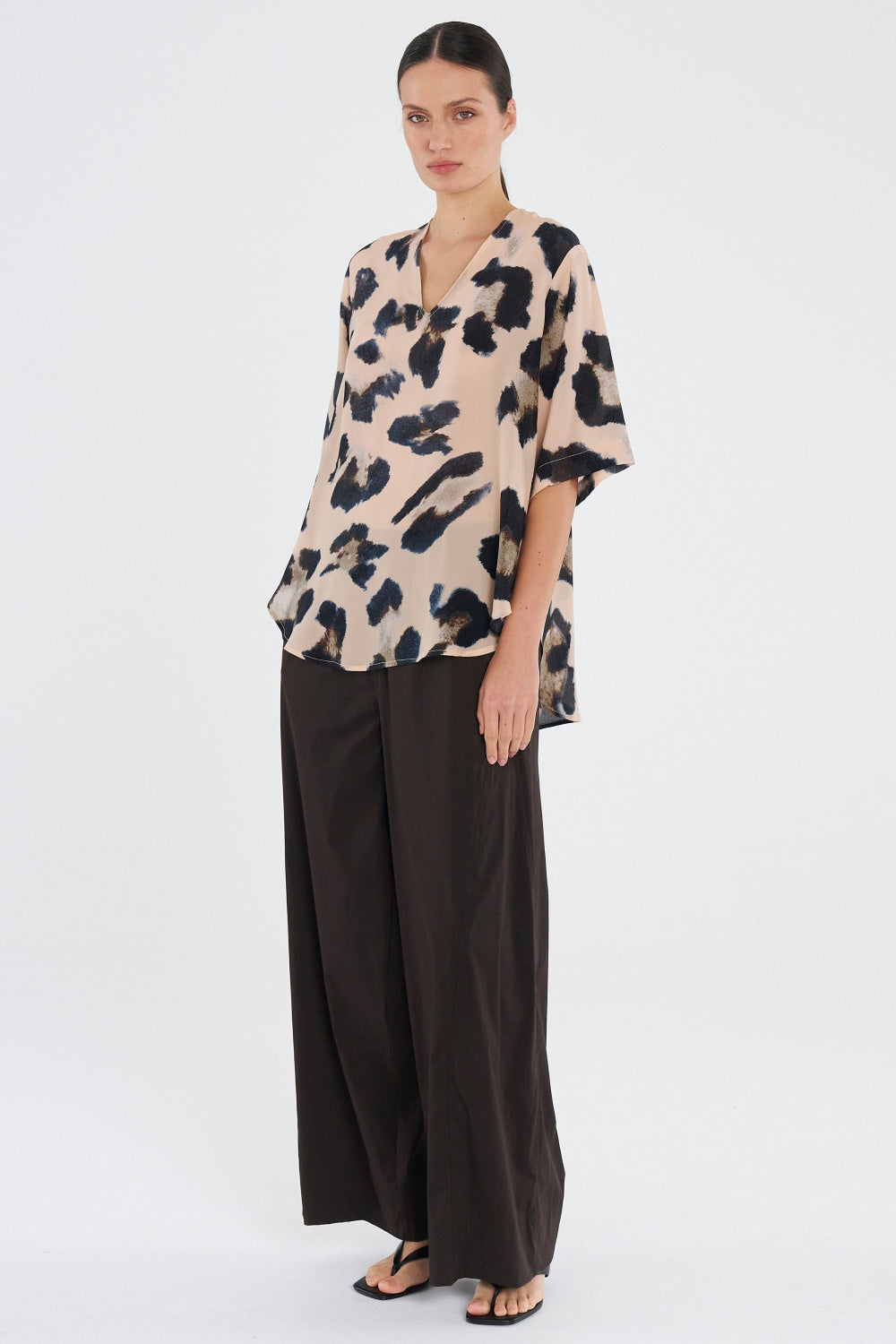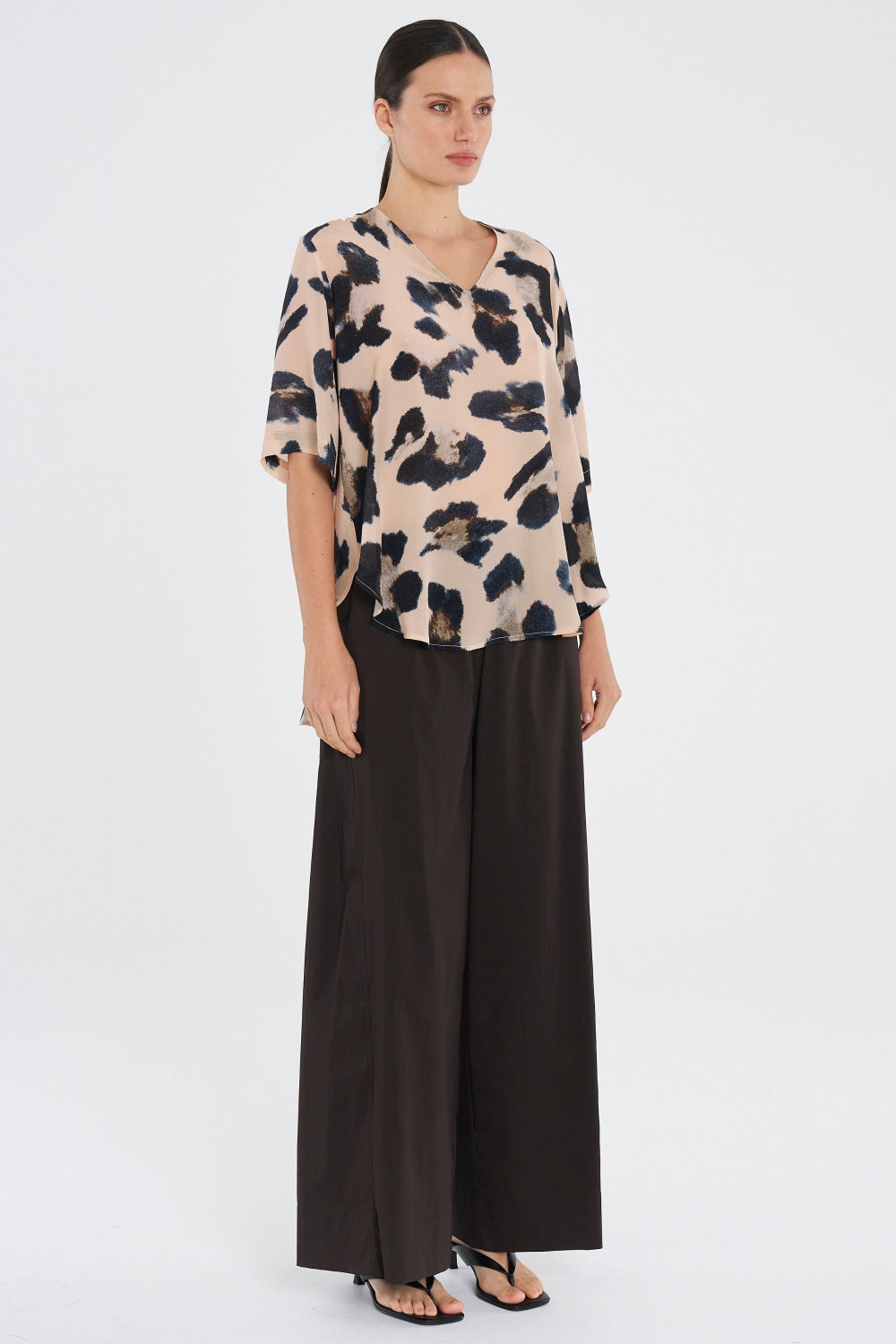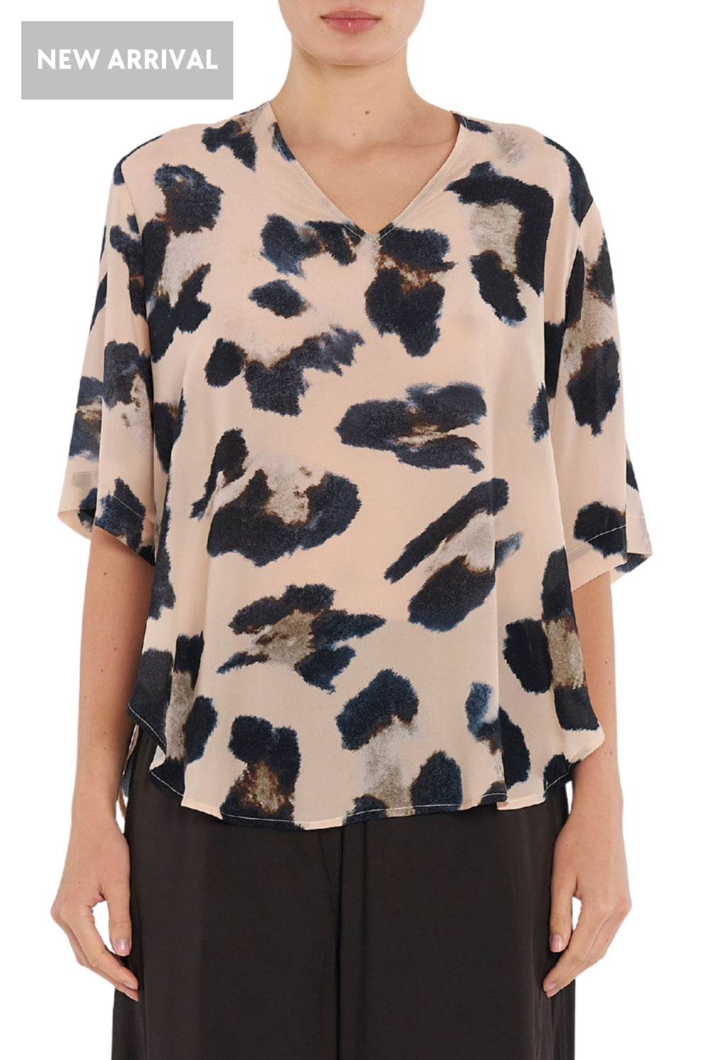 Crafted in Mela Purdie's mid-weight, soft washed Silk Crepe De Chine, in the Blurr Silk Print, a statement print perfect for any occasion. The Swish Plaza Top features a flattering V neckline and curved hem.
