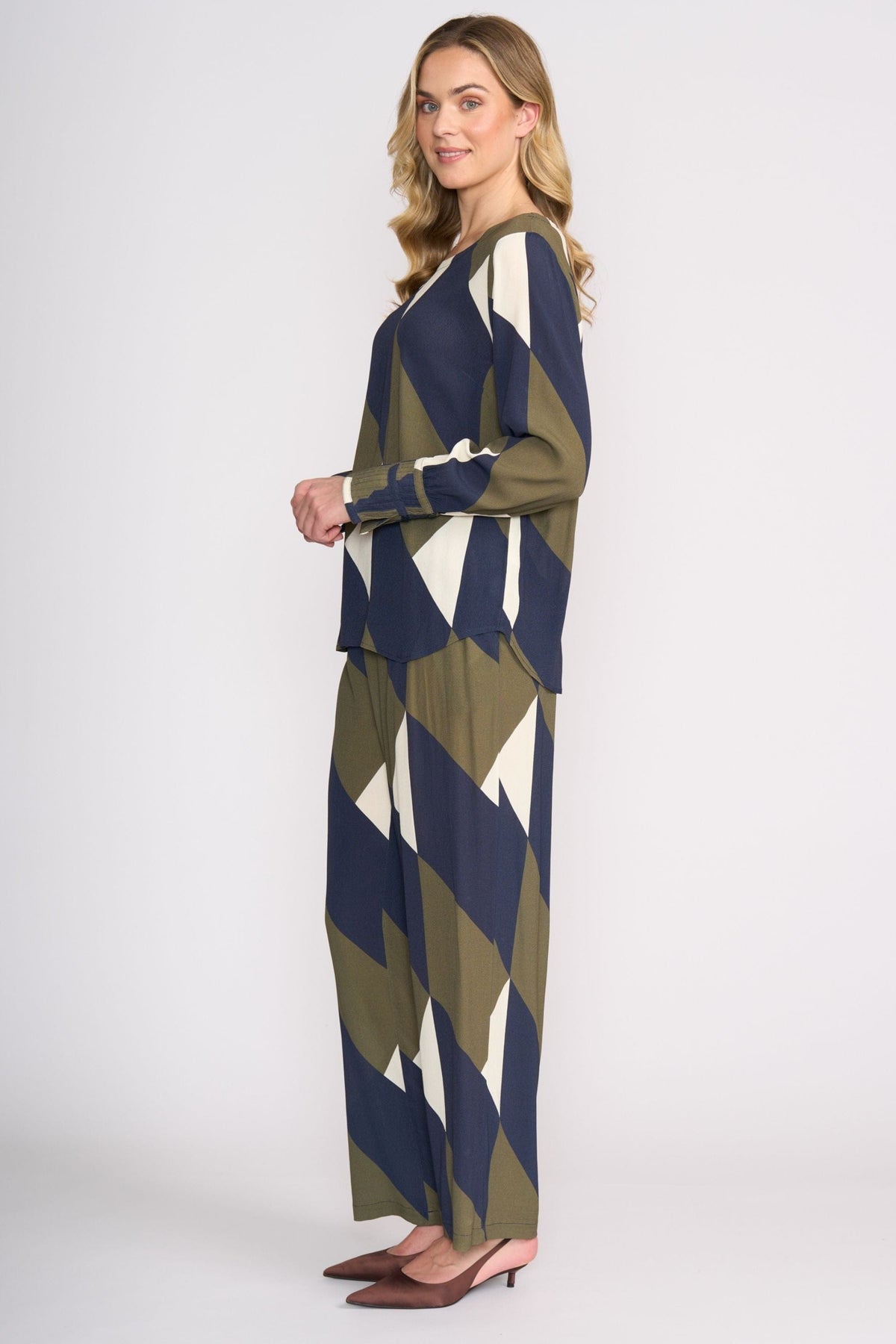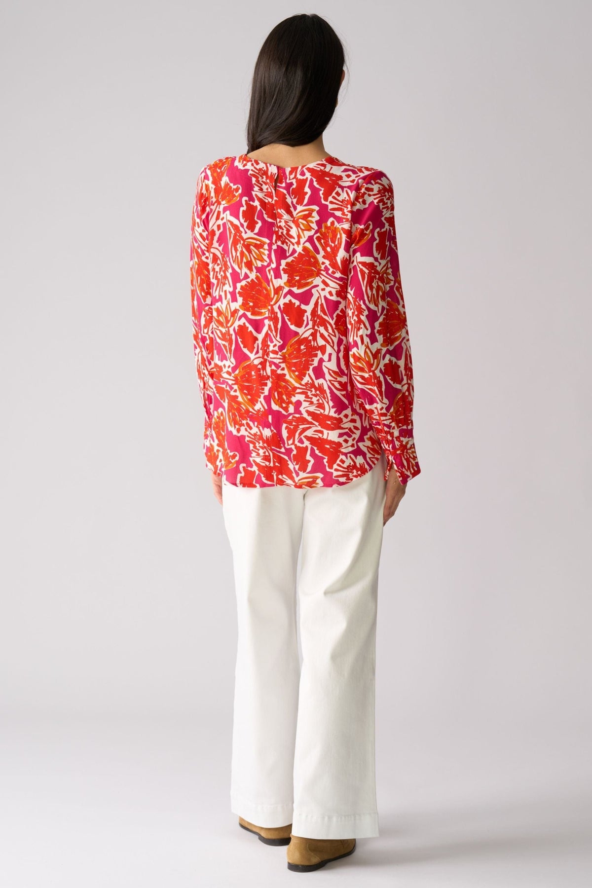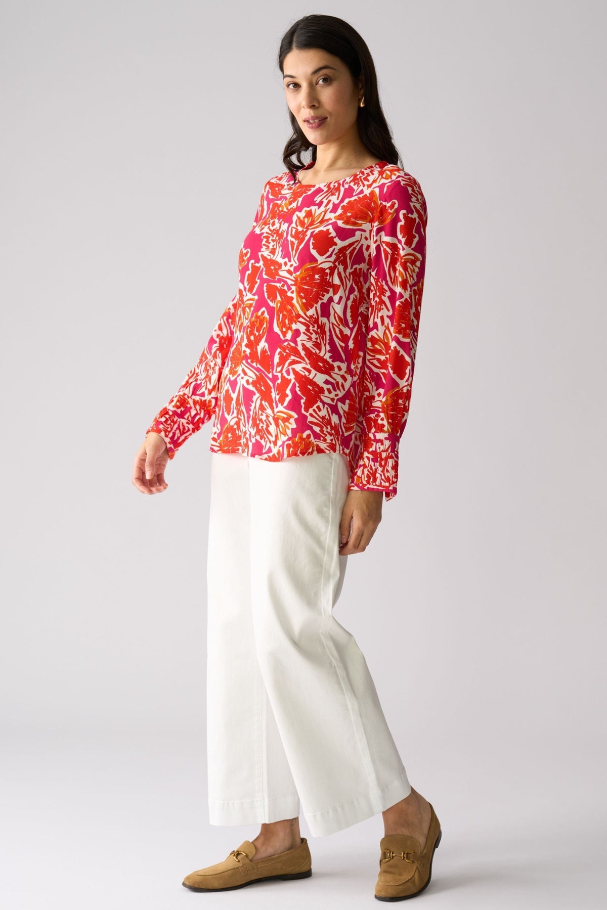 Crafted from sumptuous viscose, this long-sleeved blouse marries elegance with practicality. Distinctive pleated cuffs frame the wrists with refined detail, while the shirt tail hem creates a polished silhouette that transitions seamlessly from office to evening. Lightweight and breathable, it's the ideal companion for the discerning traveller who refuses to compromise on style or comfort.