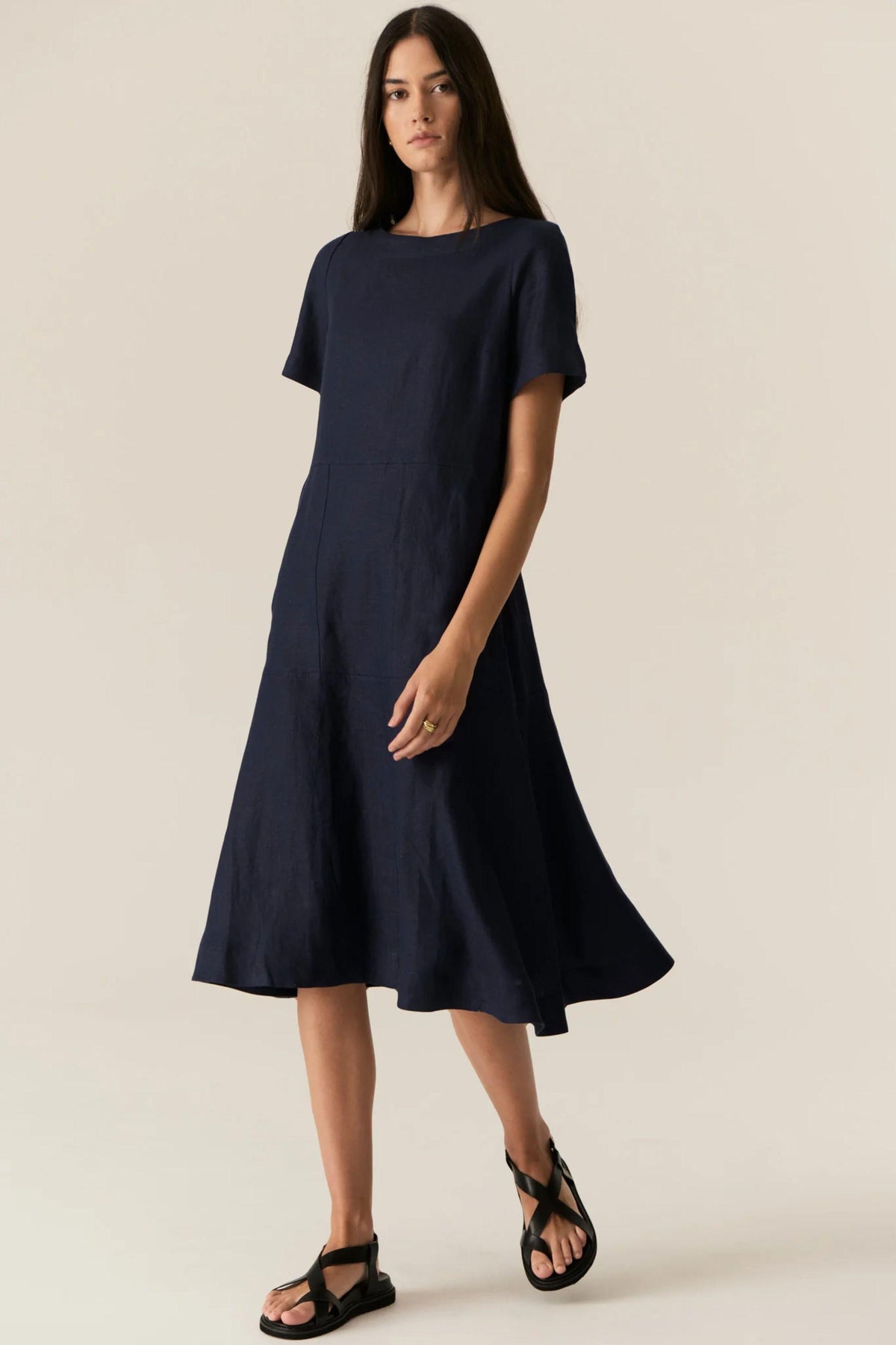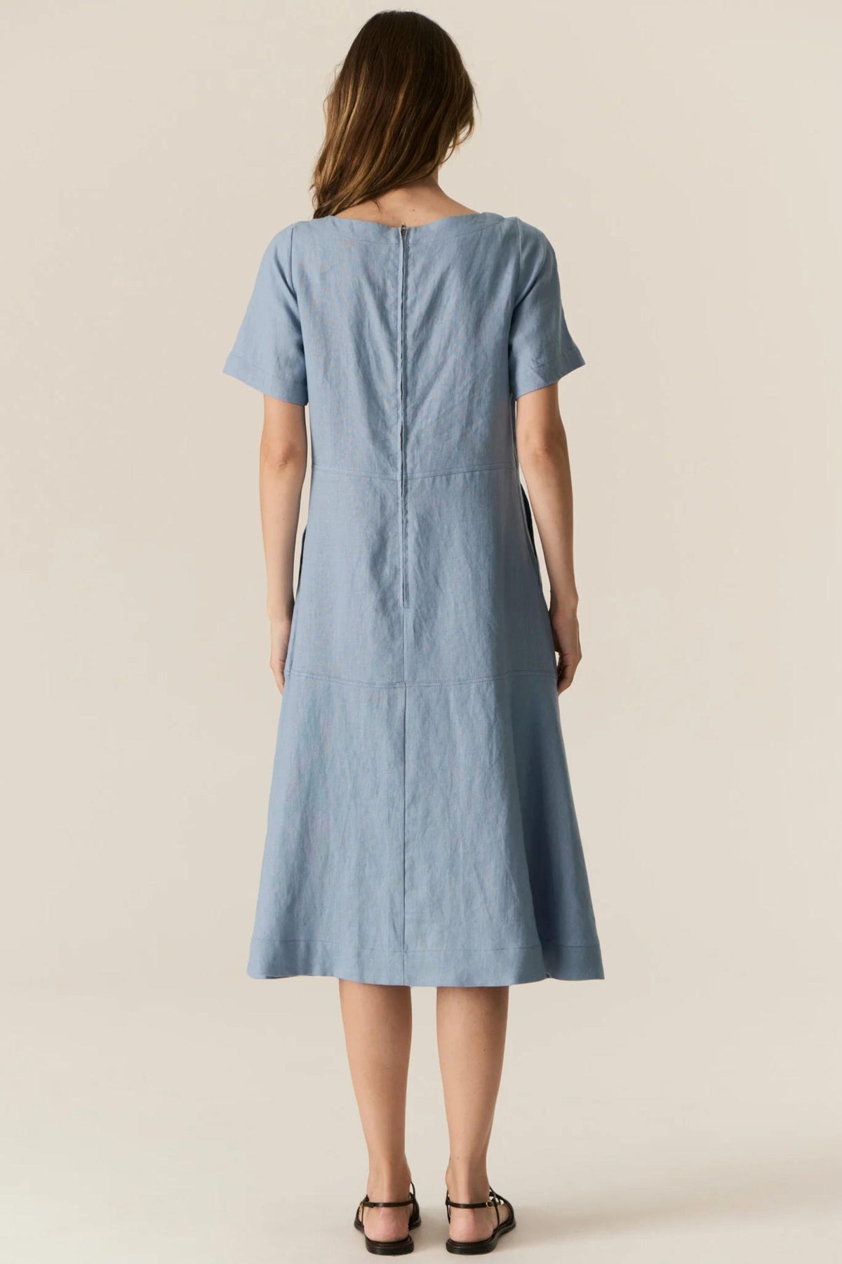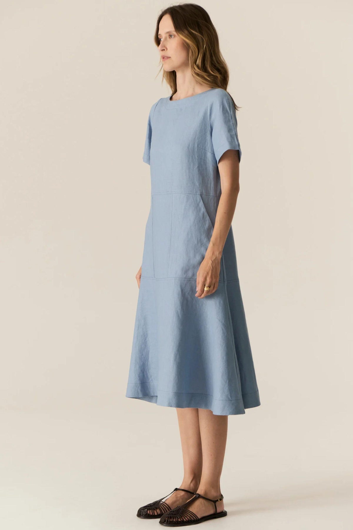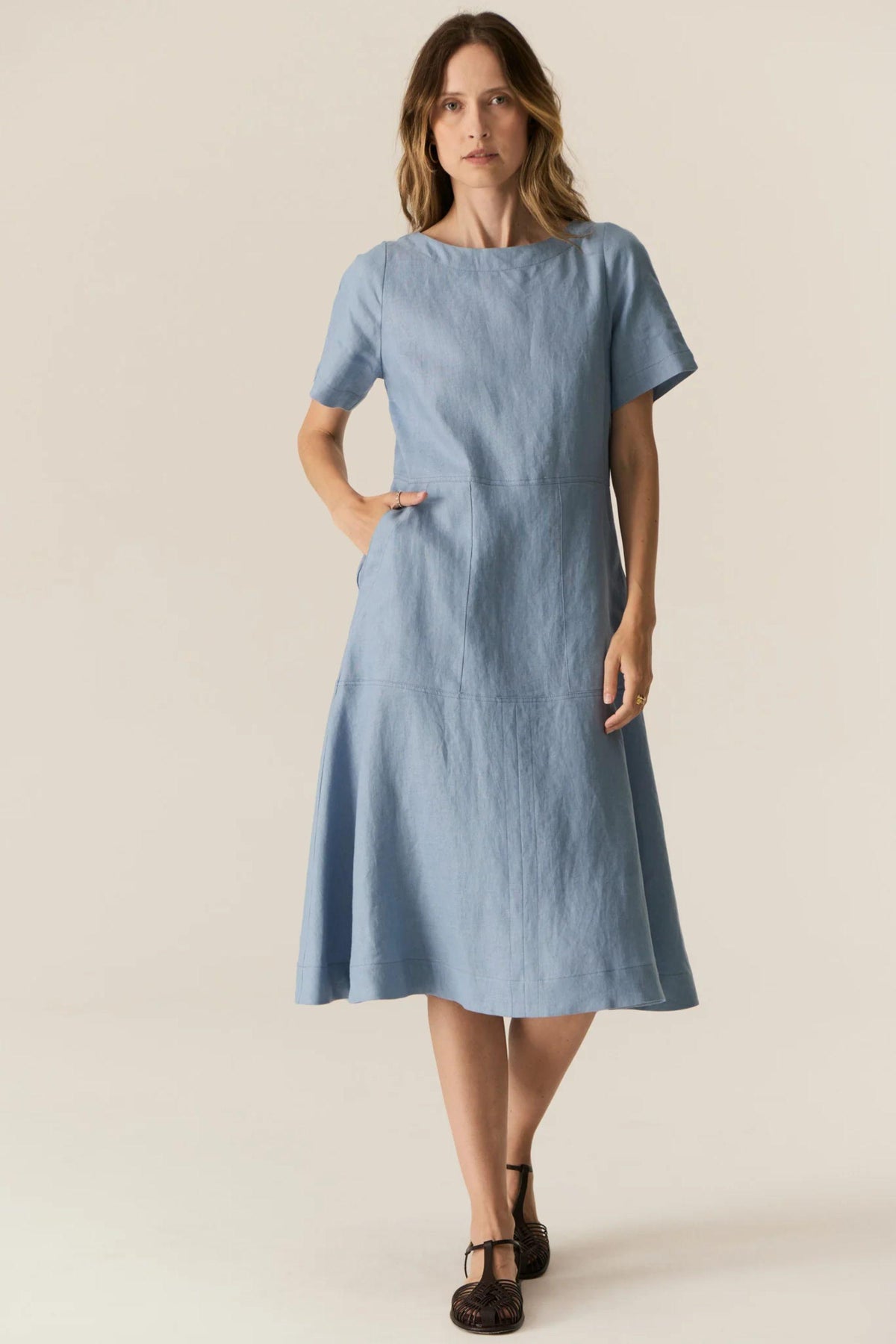 Made from pure linen in two new shades, the Saga Pocket Dress is an elevated pop on piece.