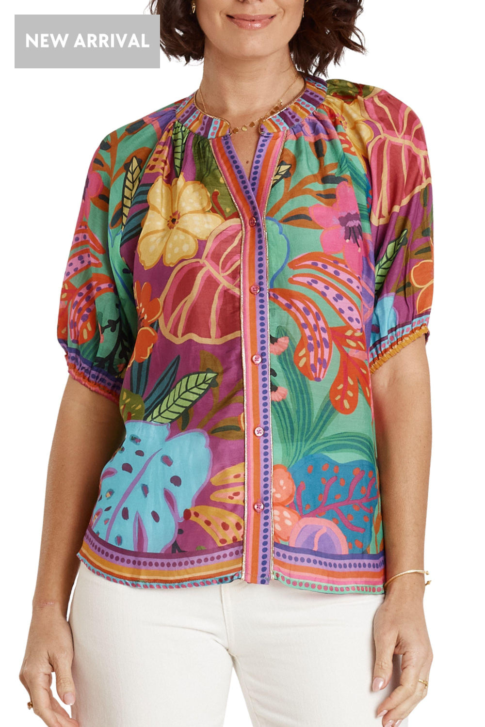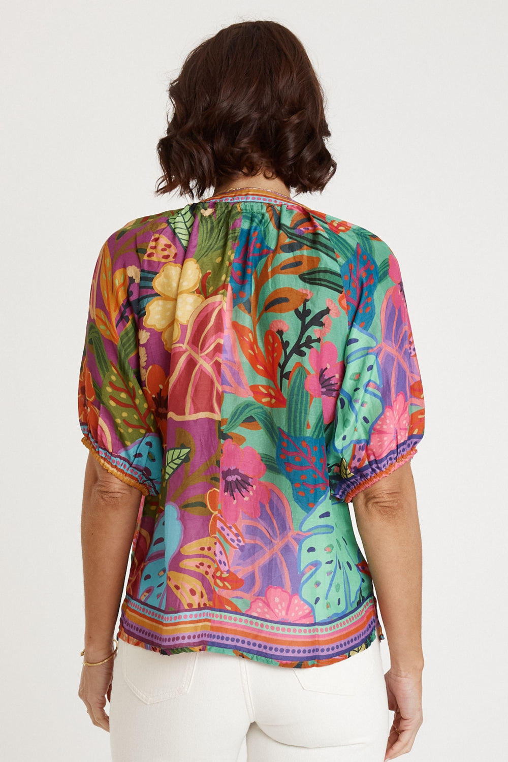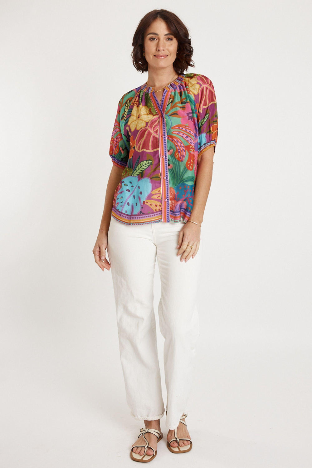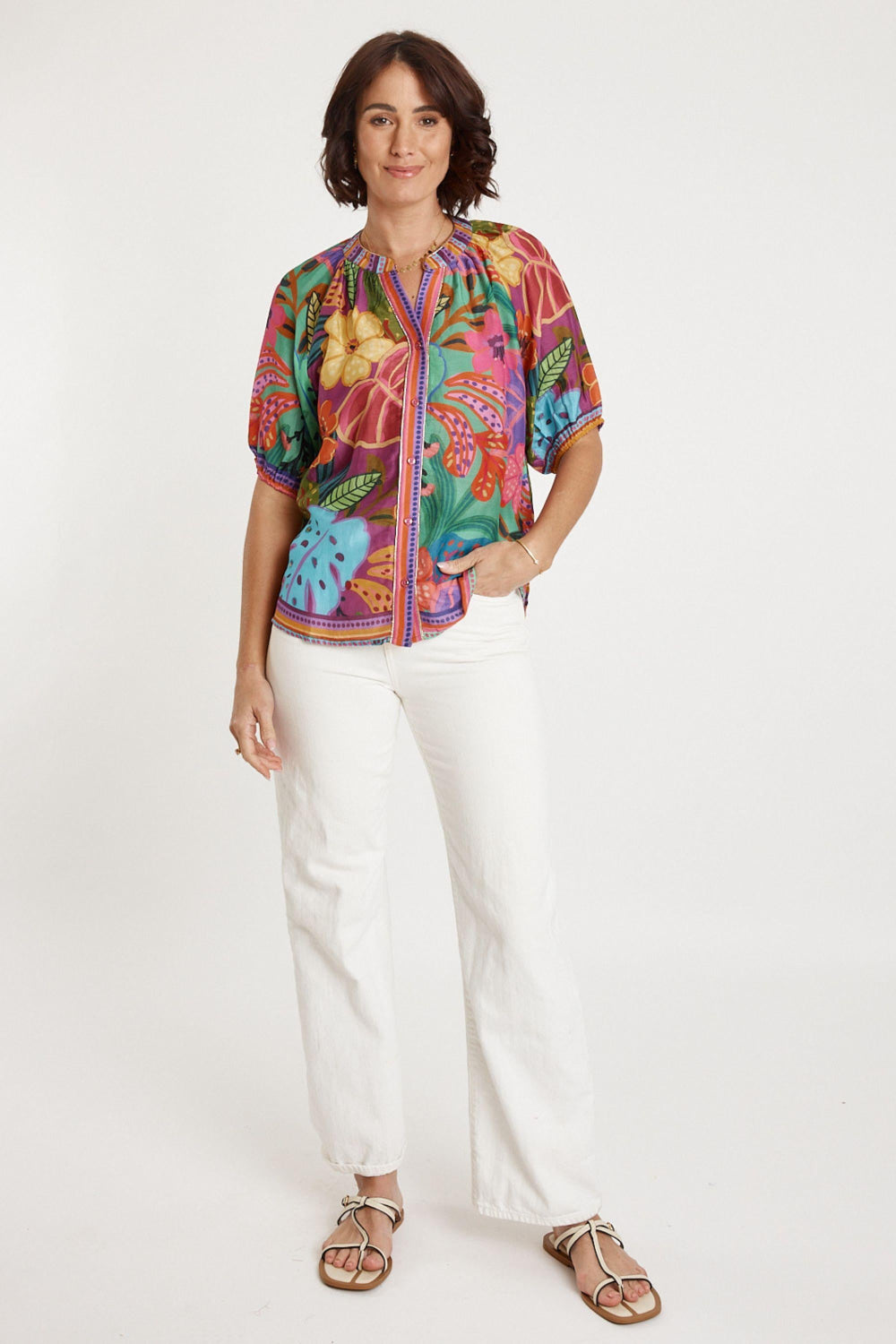 A beautiful mix of colours make this top perfect for pairing with white pants. Designed in Australia and perfect for our weather and lifestyle.