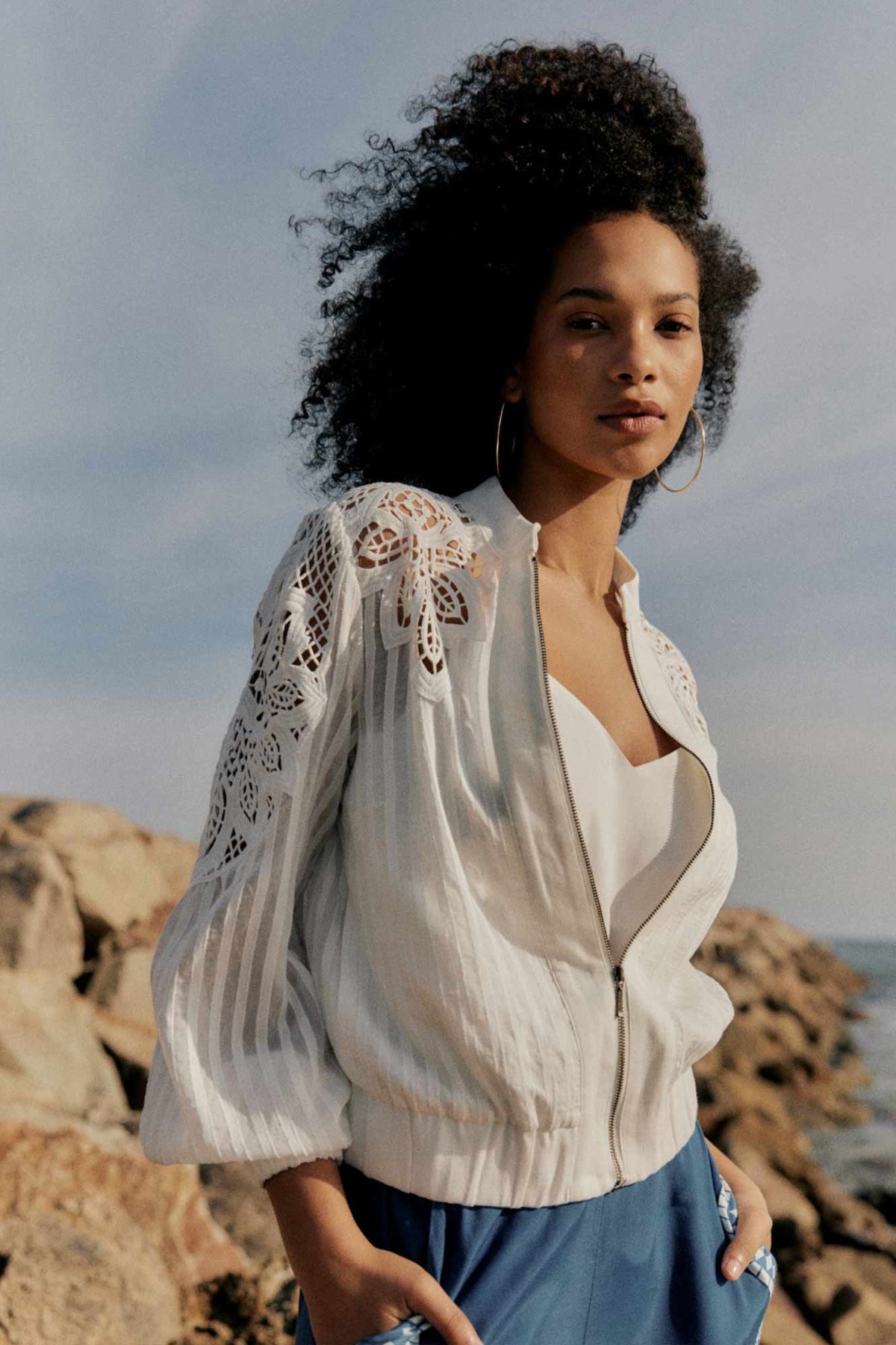 Elevate your outerwear with the Lamia Tencel Lace Detail Bomber in Ivory, a modern reinterpretation of the classic bomber jacket with a feminine, artisanal touch. Crafted from sustainably sourced Tencel, this lightweight bomber offers a soft, breathable feel while maintaining structure and elegance.
