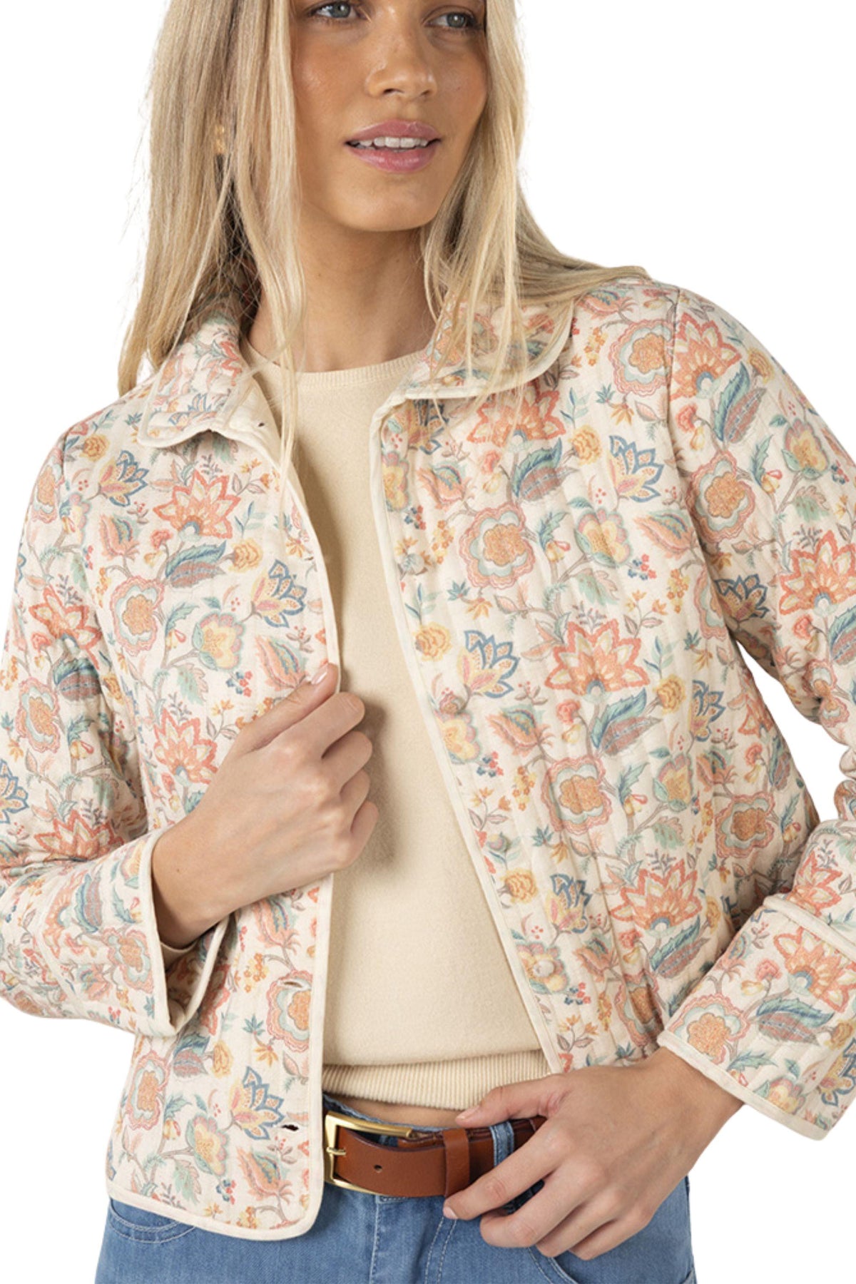 • Cute, quilted jacket with binding trim detail in two unique floral prints