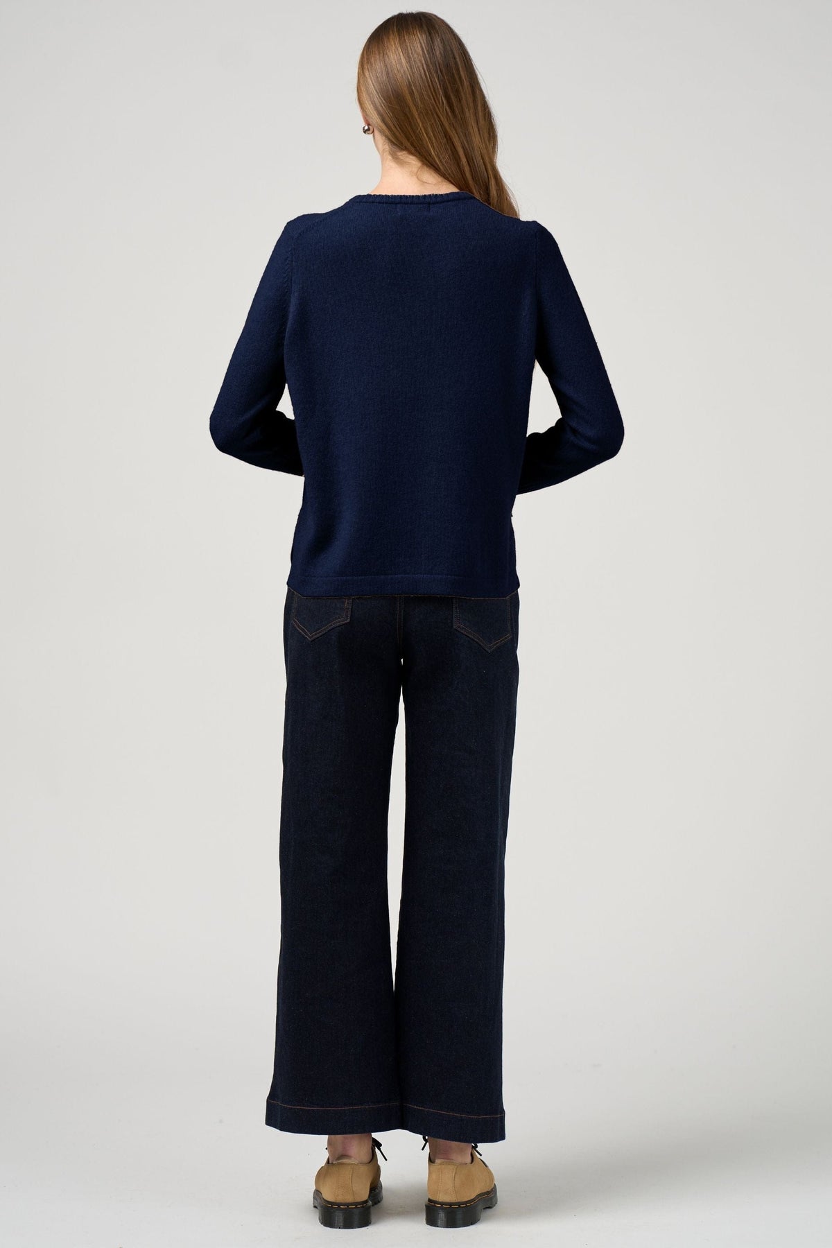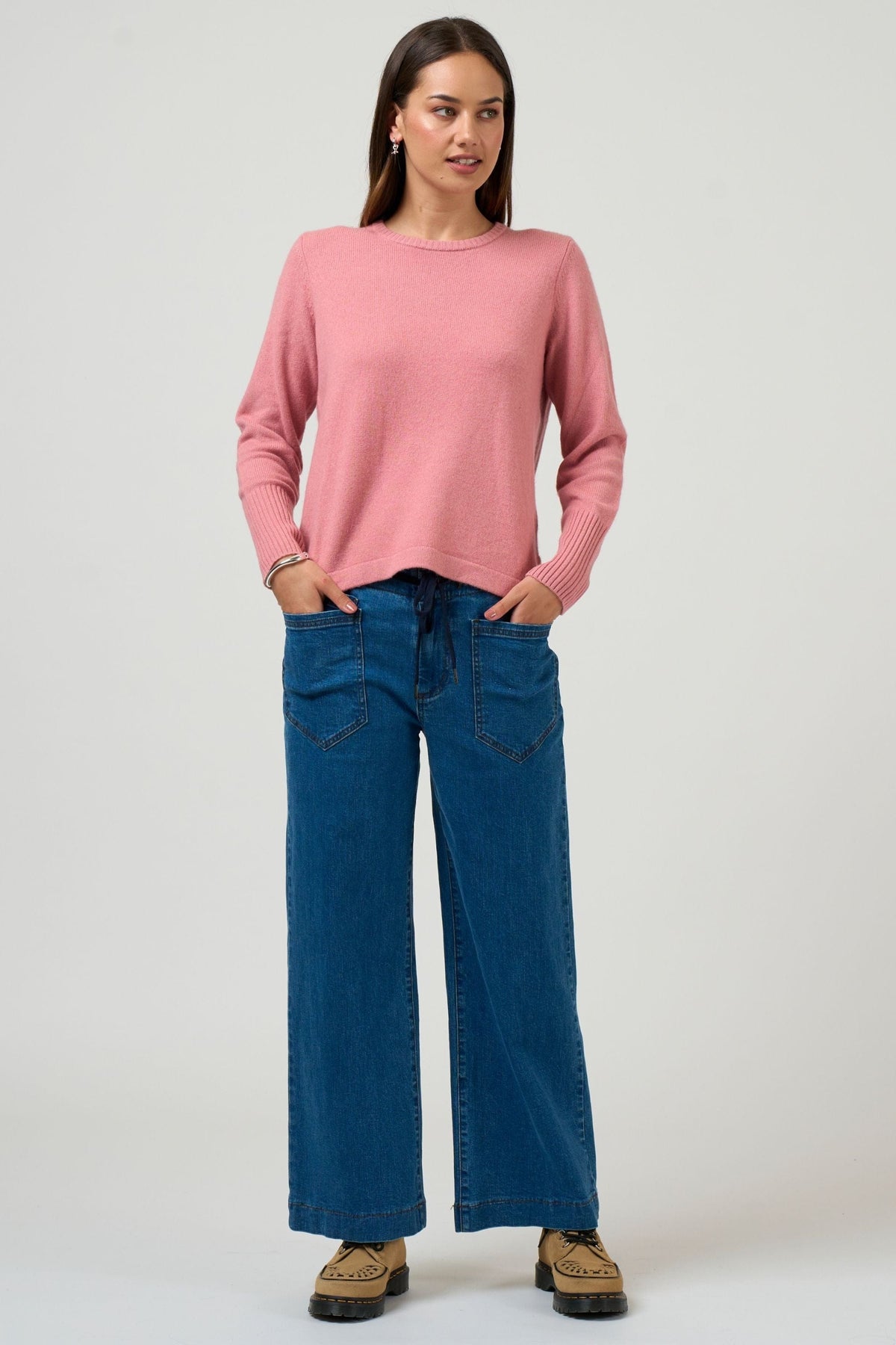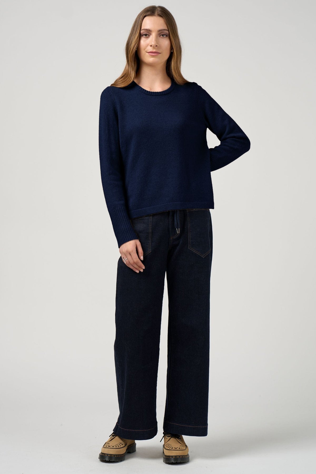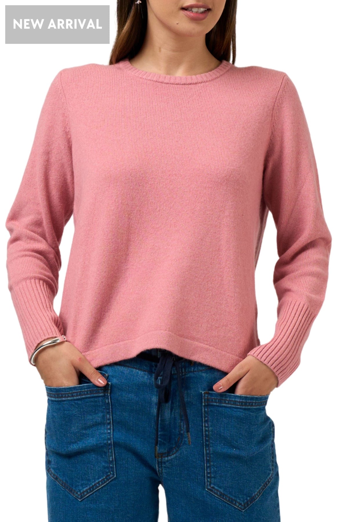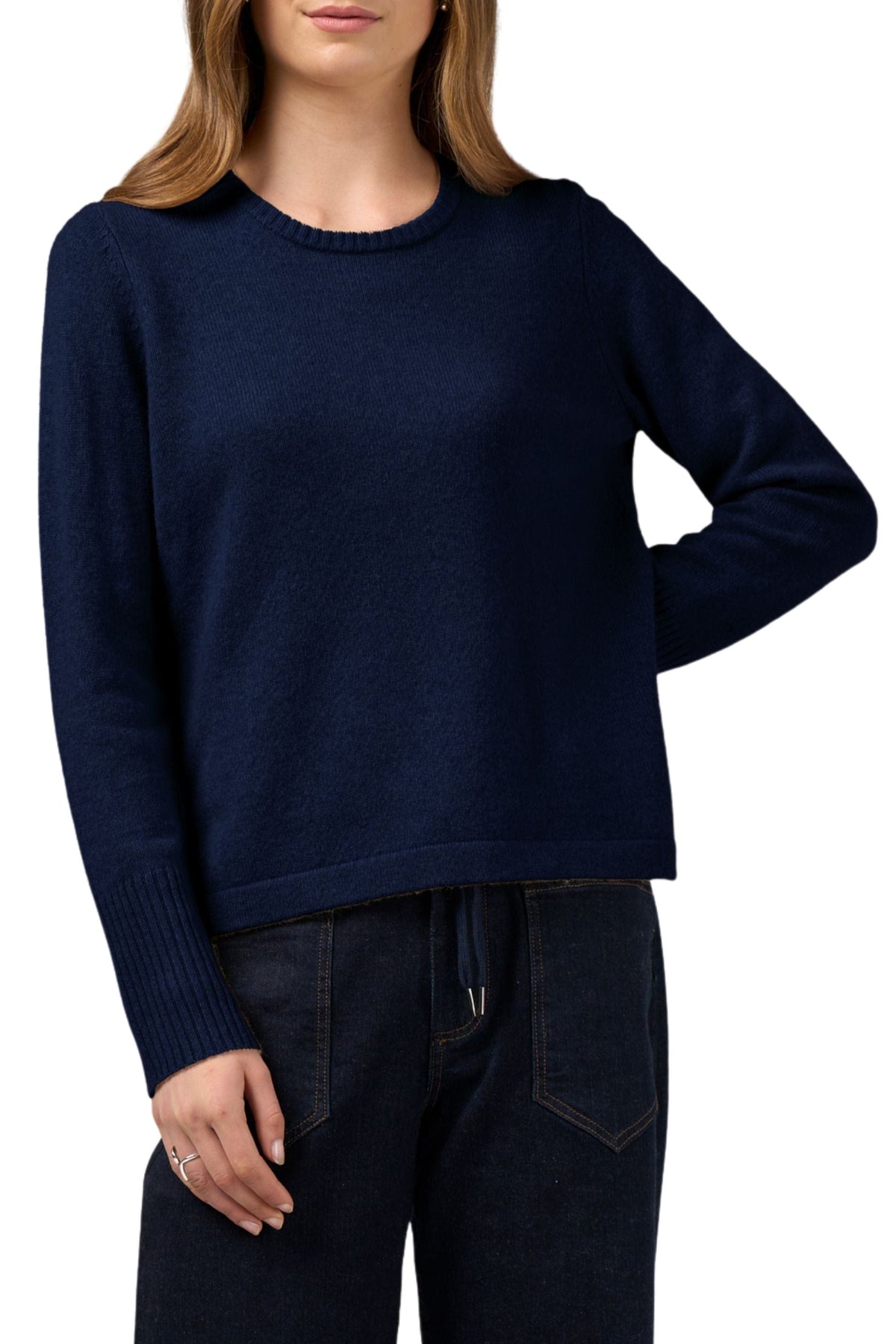 Crew neck sweater in a super soft merino-cotton blend, featuring deep ribbed cuffs and side splits, perfect for layering.