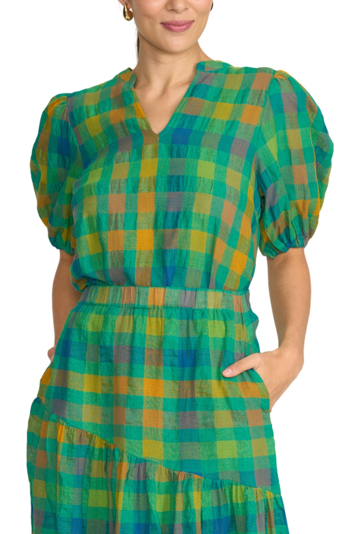 Turn heads this summer with the Checkmate Top paired perfectly with its matching skirt. This vibrant green set blends bold style with a light, breathable feel—ideal for sunny events. Its playful pattern and modern cut make it a standout choice for those who love fun fashion that keeps you cool and confident all day long.