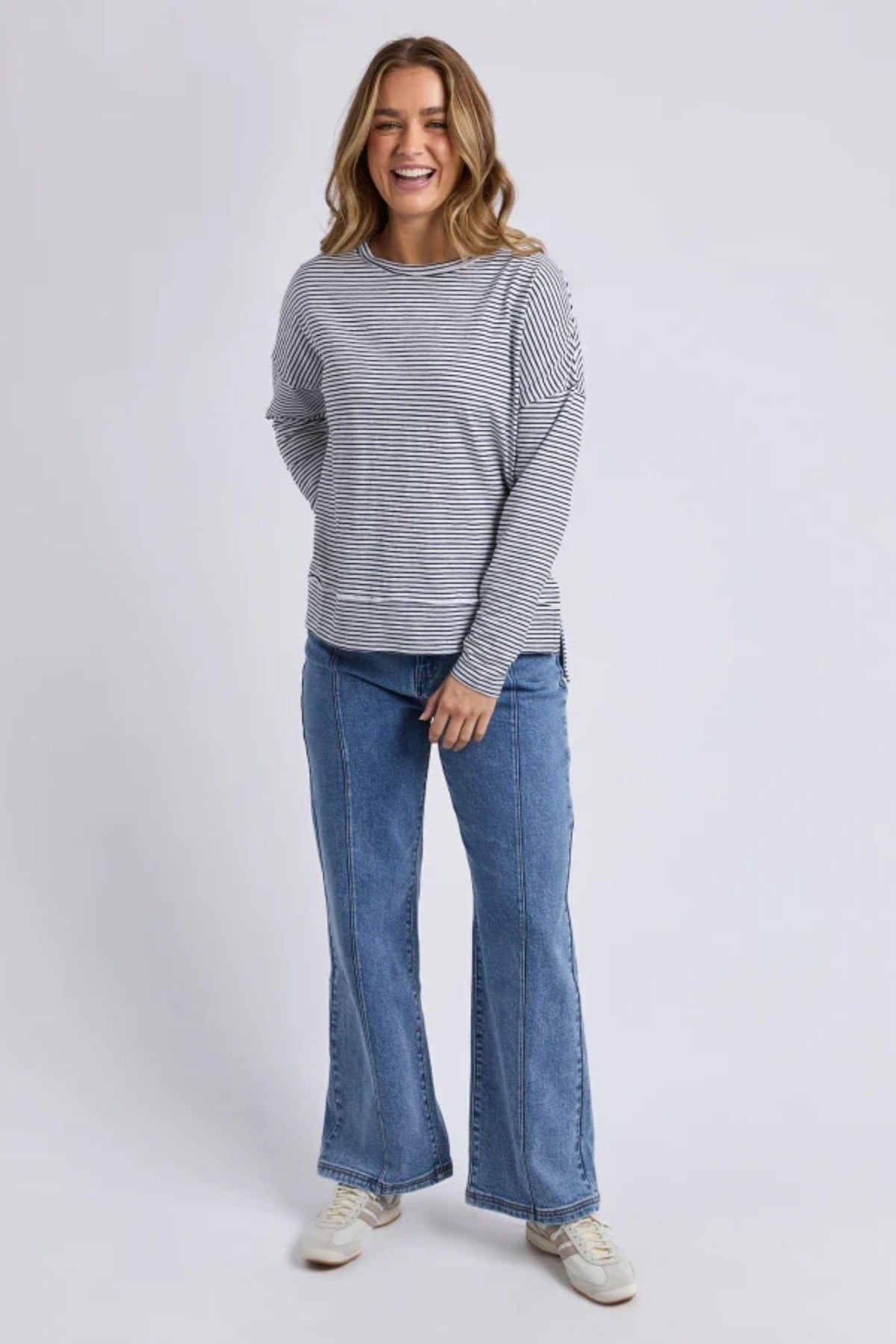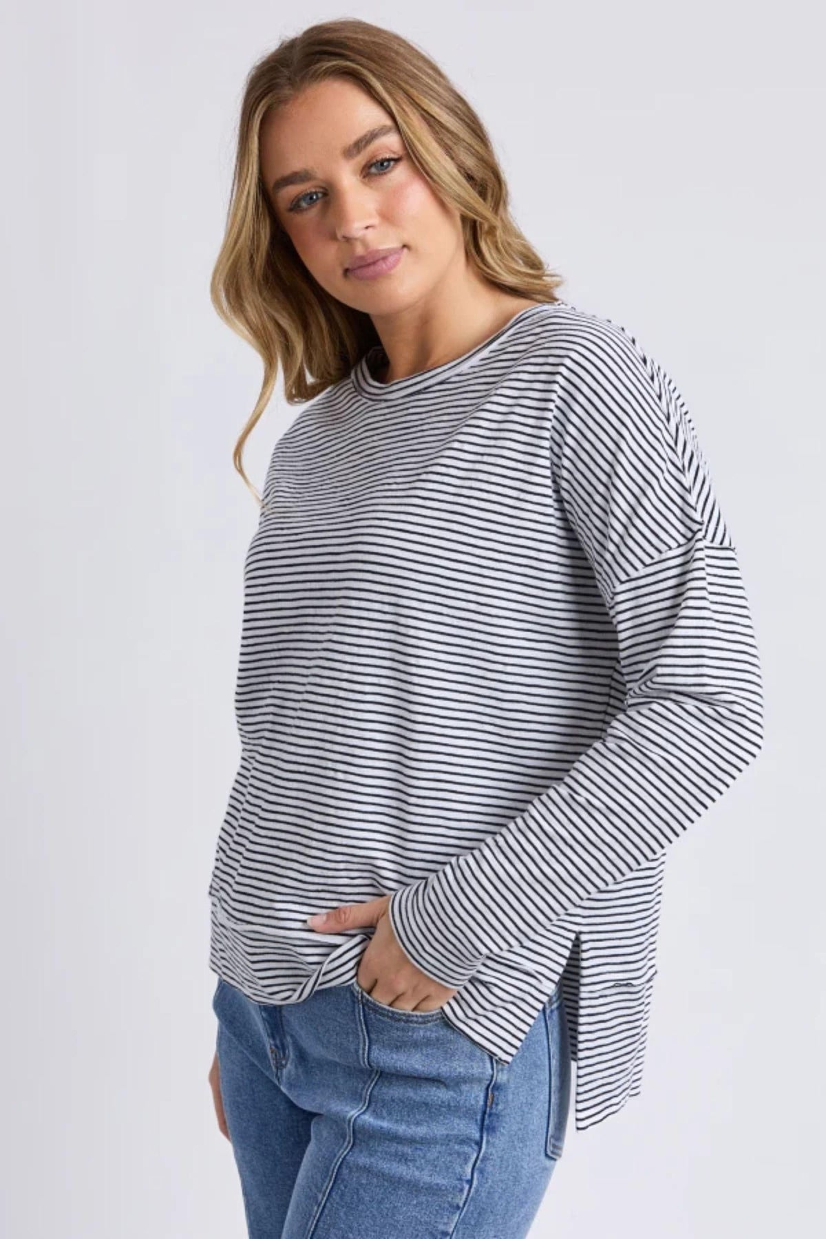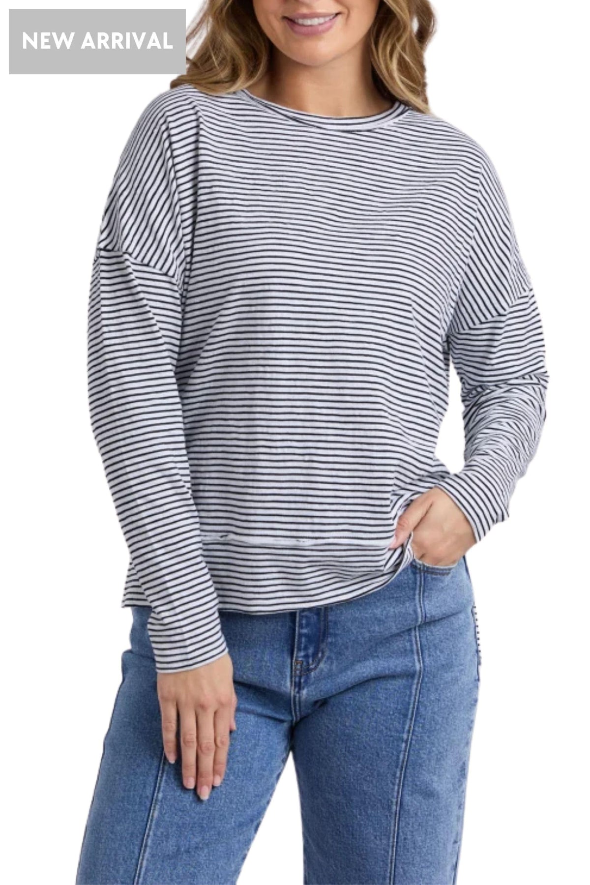 The Eddie Stripe Top is the ultimate throw-on piece for everyday wear. Designed in the signature Jayne throw on top shape, it features a classic yarn dyed stripe and an easy relaxed fit for all-day comfort. Made from 100% cotton, it’s perfect for layering, weekend styling, and pairing with your favourite denim.