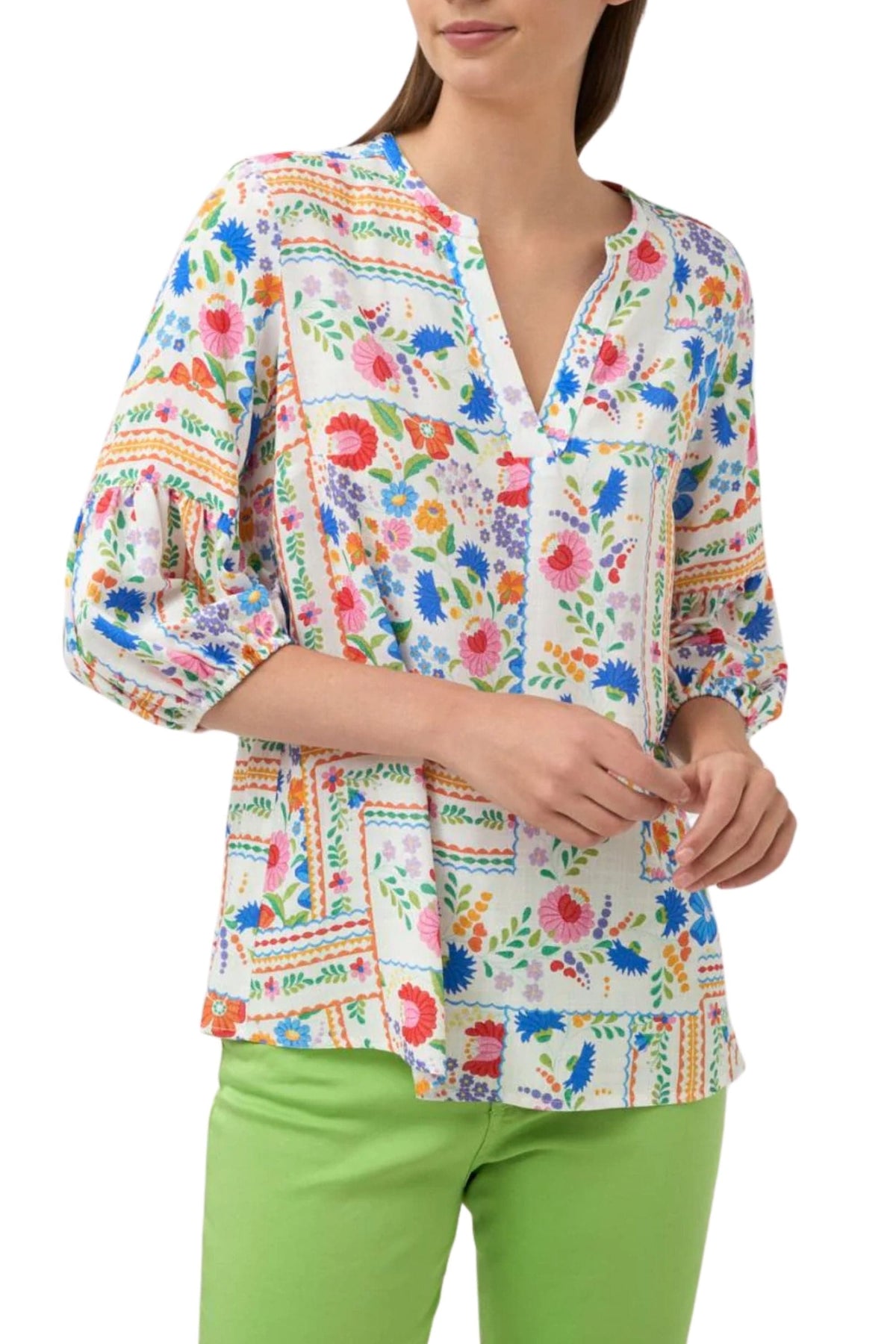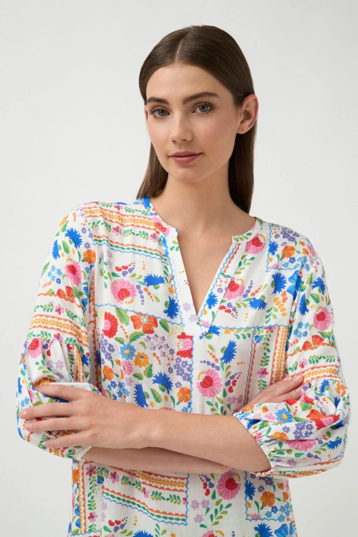 Introducing the Talida V Neck Top - a sophisticated, Spanish-crafted blouse. With its flowy, printed design and vibrant floral patterns, this top is perfect for summer and will add a touch of luxury to any outfit. Embrace elegance and exclusivity with Talida.
