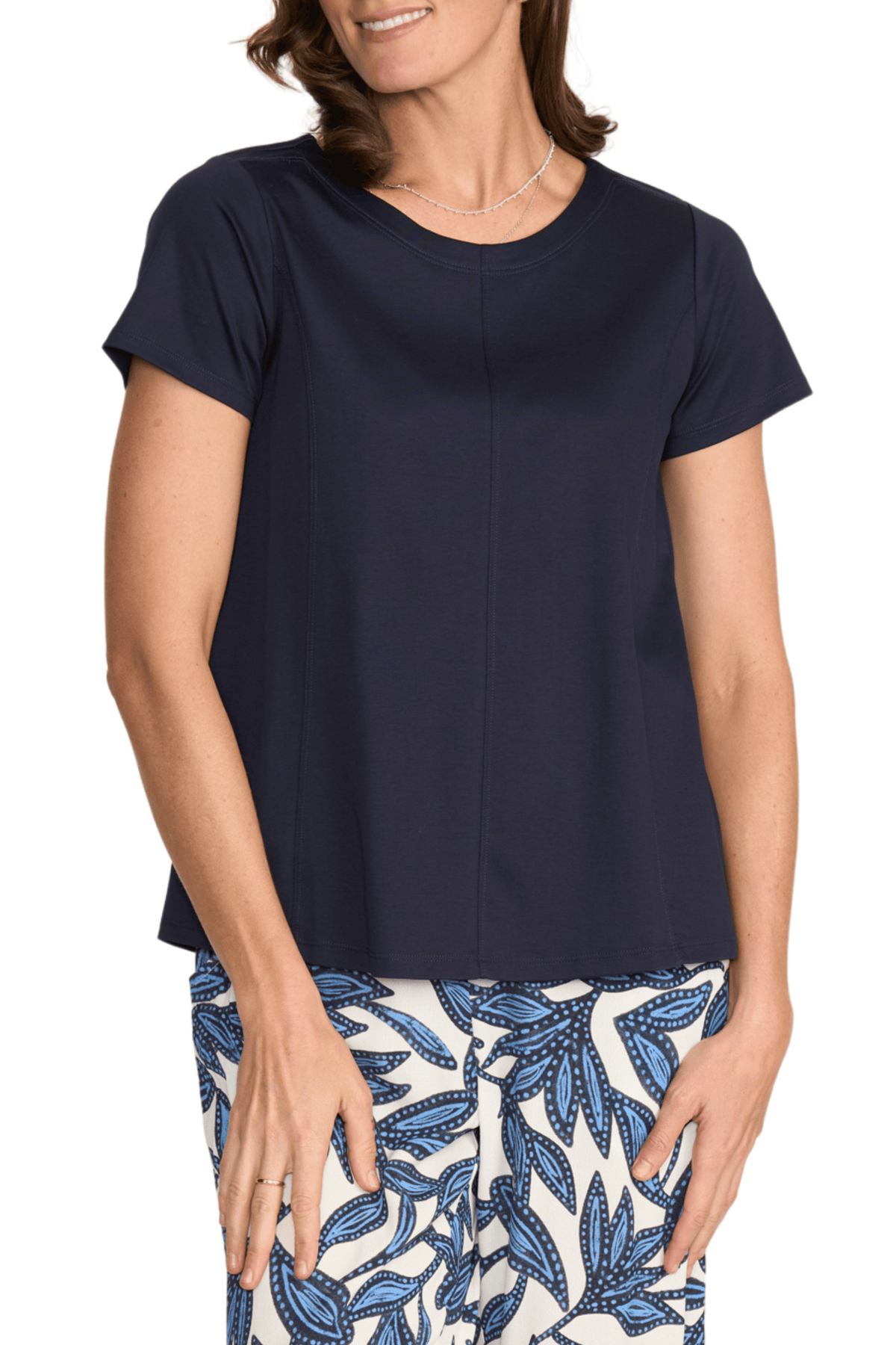 Elevate your everyday wardrobe with the You've Got Flare Top. Featuring refined topstitching along the neckline, shoulders, and princess panels, this round neck tee offers a subtly flared silhouette that combines comfort with understated elegance.