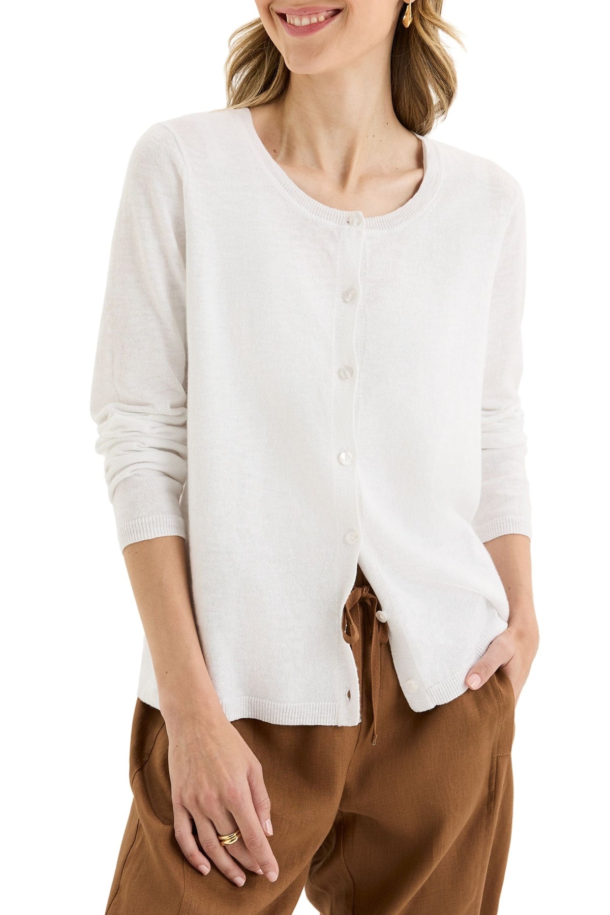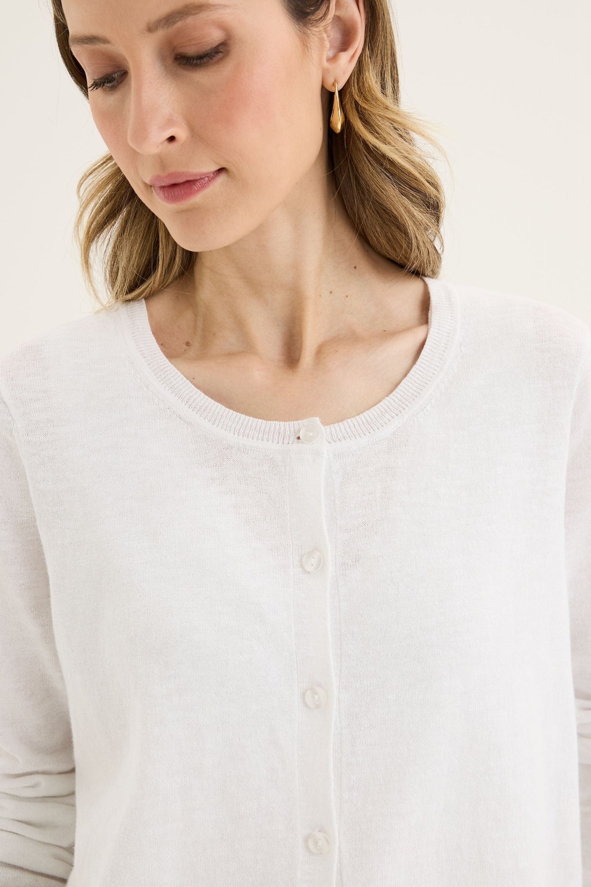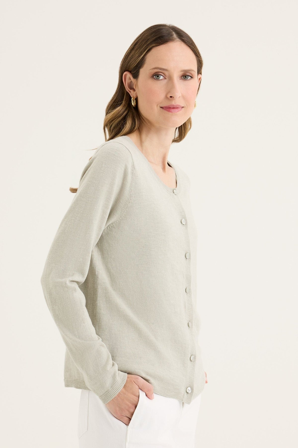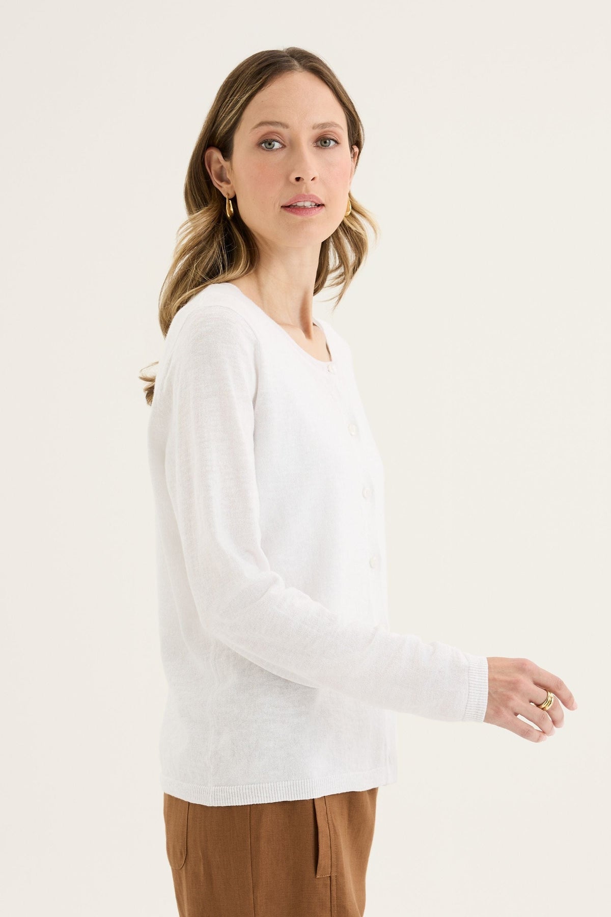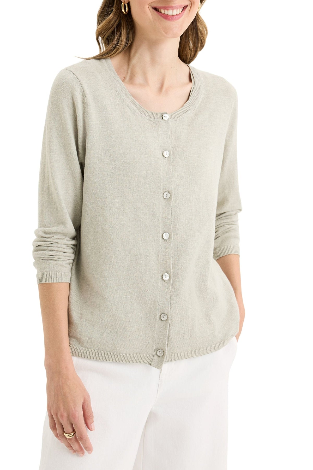 The Blaze Cardi is a timeless layer with all the ease of a true wardrobe essential. Crafted from a breathable cotton-linen blend, it offers a soft, natural feel that perfectly blends structure with comfort. The round neckline, full-length sleeves and button-through front retain the classic, quintessential cardigan look, while the relaxed fit allows for comfortable layering. Based on our bestselling Serene Cardi, this updated version is available in a range of flattering, wear-anywhere tones - the kind of cardigan that earns its place in every capsule wardrobe, ready to reach for season after season.
