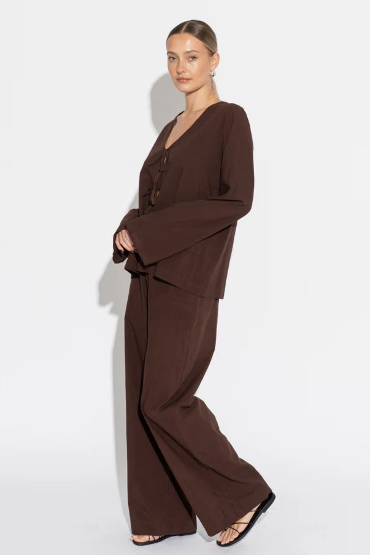 The Caterina Story is crafted from cacao cotton brush, offering a breezy drape and naturally creased texture. Part of the Carioca Resort ’26 collection, it embodies relaxed sophistication made for holiday mode.