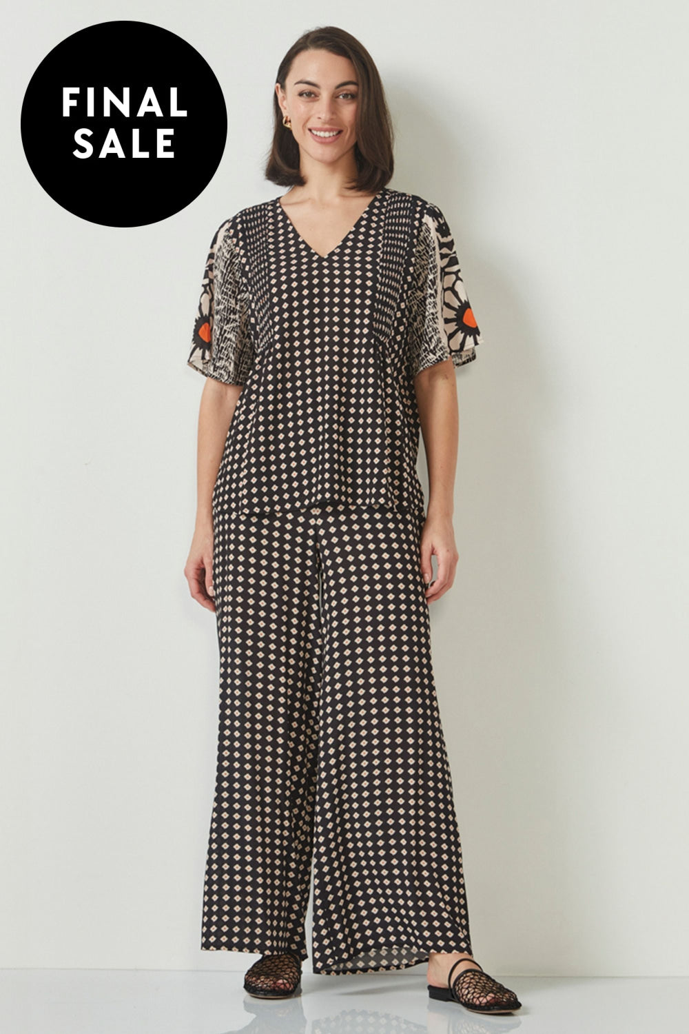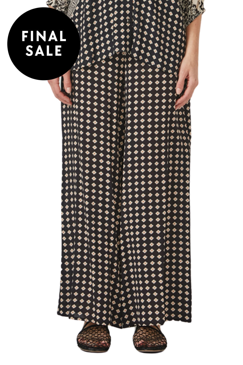 Printed Viscose Crepe pant with soft elasticated waistband and side pockets.  The Inspire pant features a relaxed wide leg profile and is full length.
