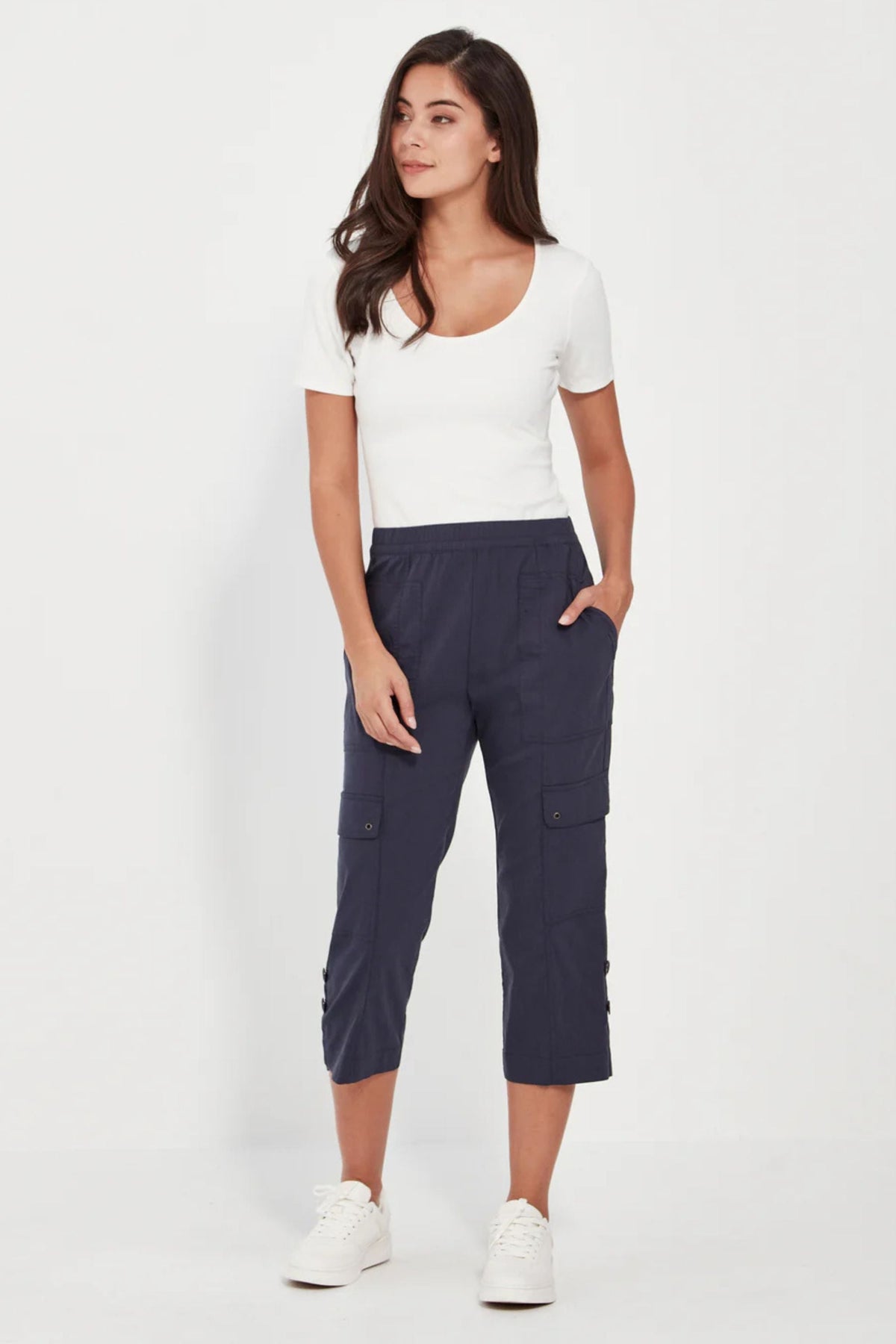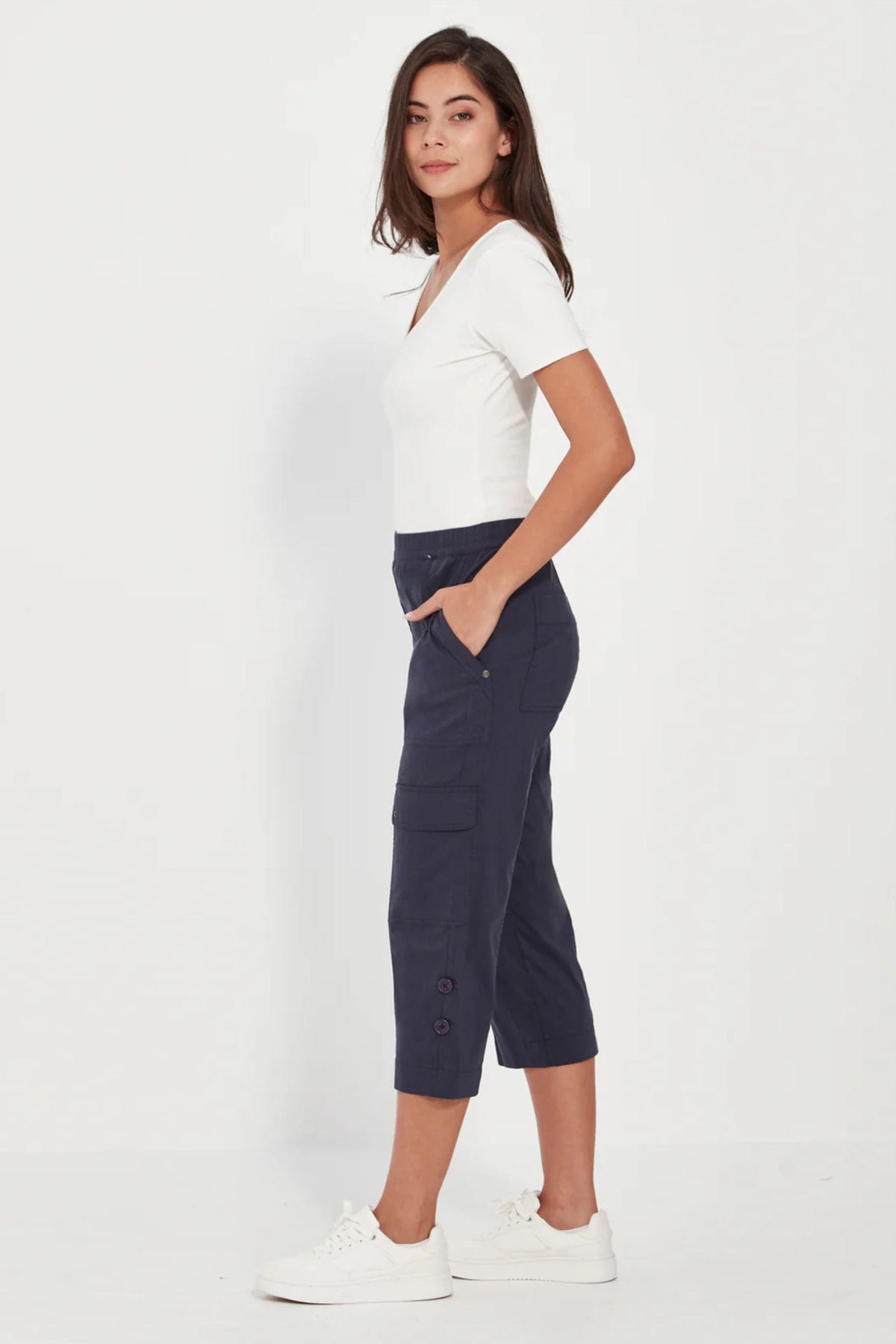 The Acrobat Cargo Short has an easy fitting straight leg with multiple pockets and flattering twin-stitch detail. Wear the Cargo Short full-length, or roll and tab it for a shorter cropped look. Verge's 'Acrobat' styles are our all-time favourites for their fit, comfort, breathability, easy care and an essential for your travel wardrobe.