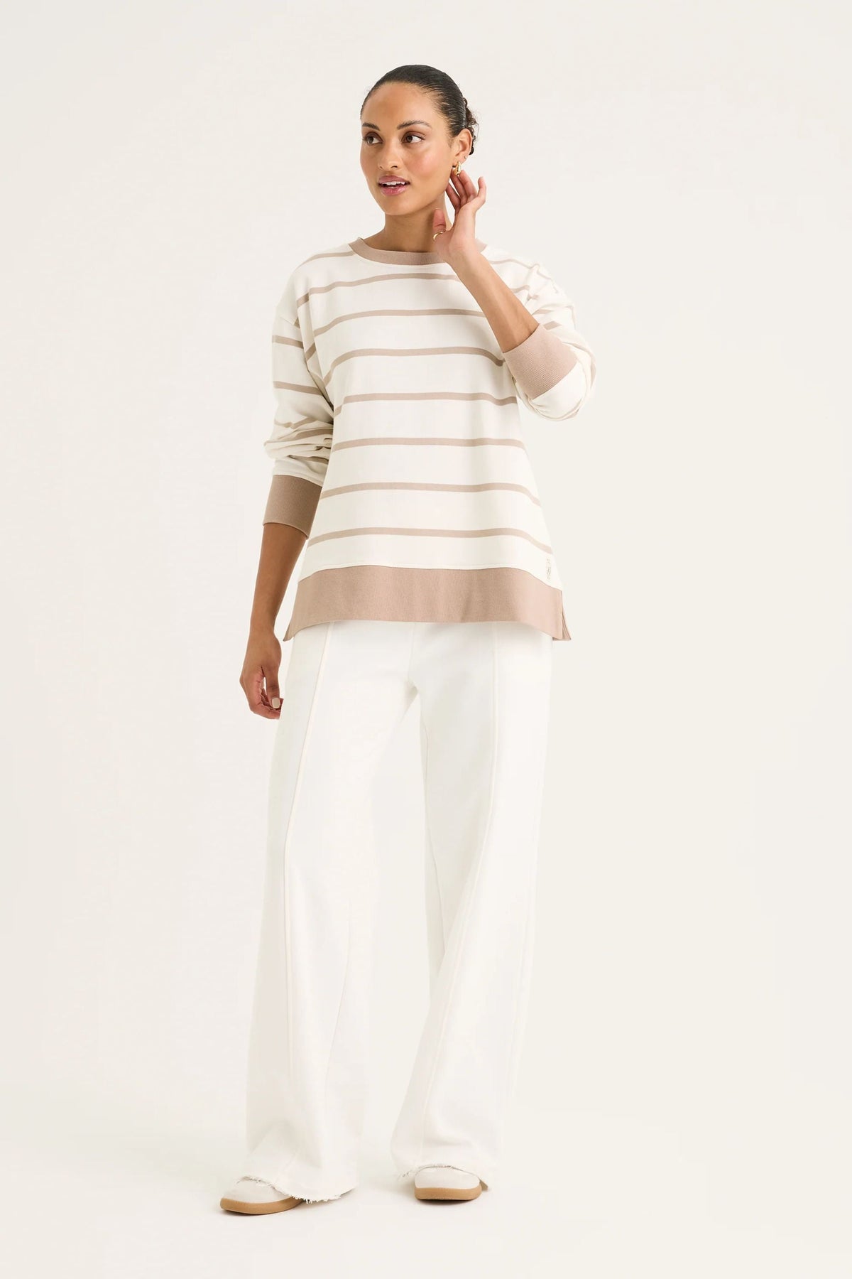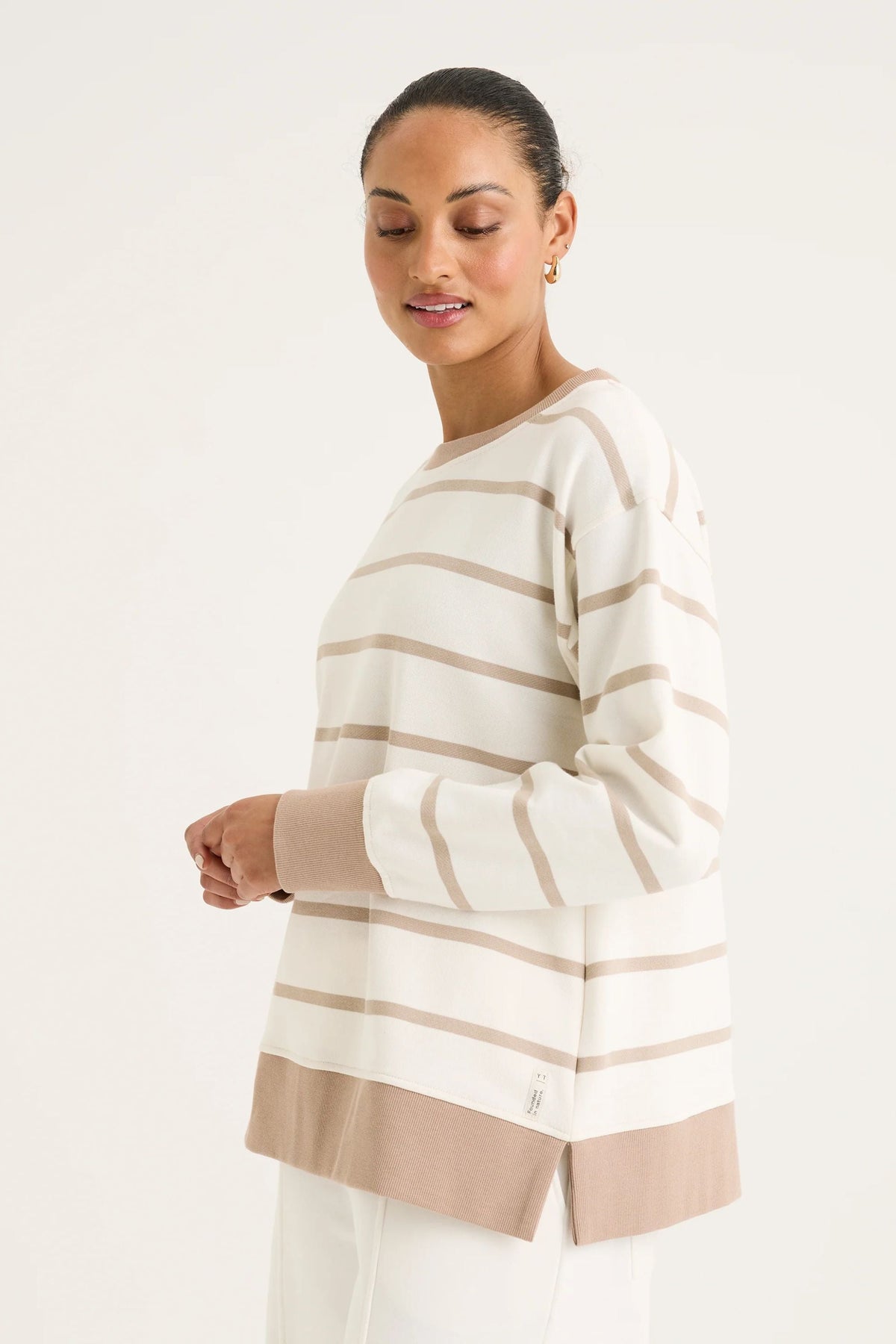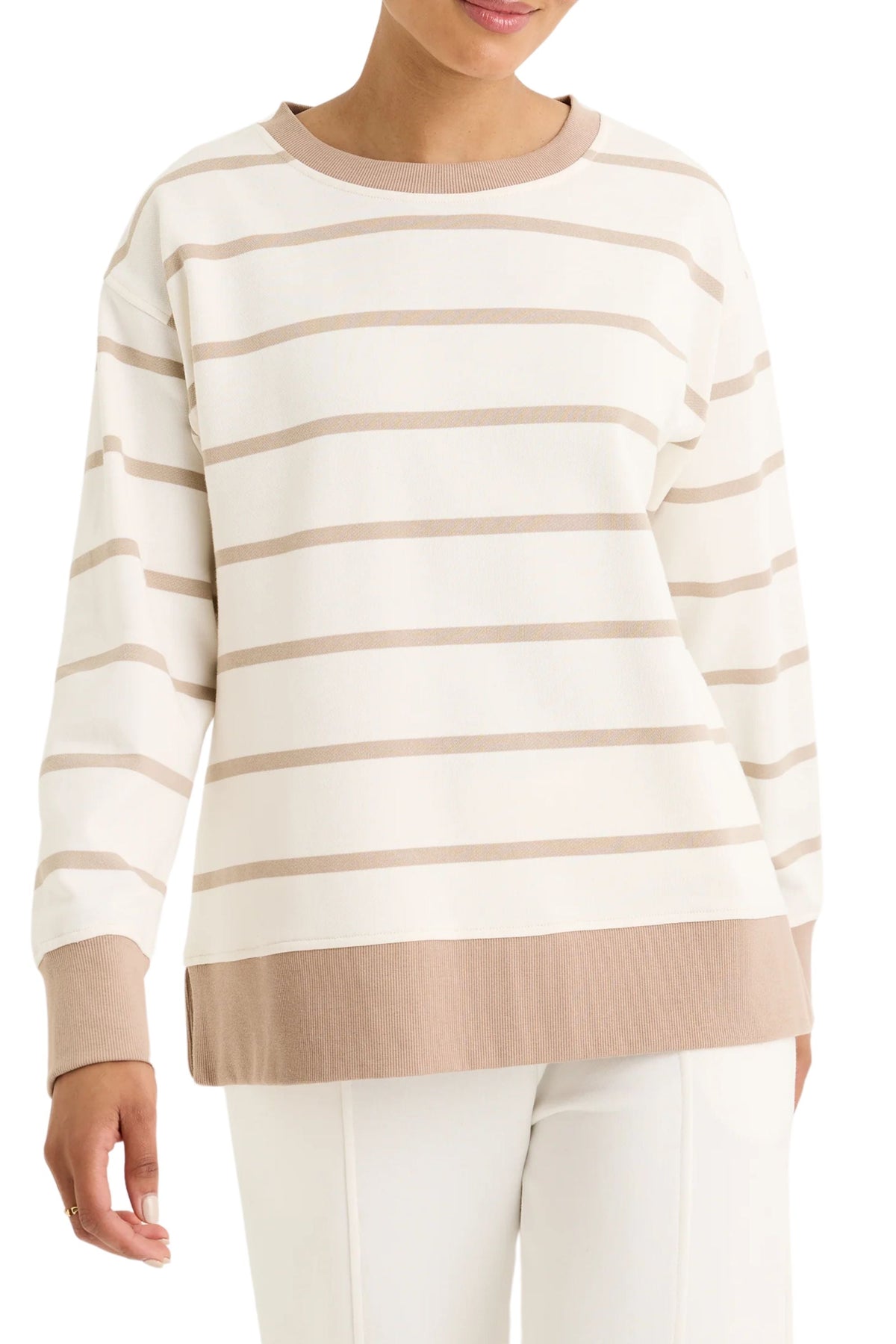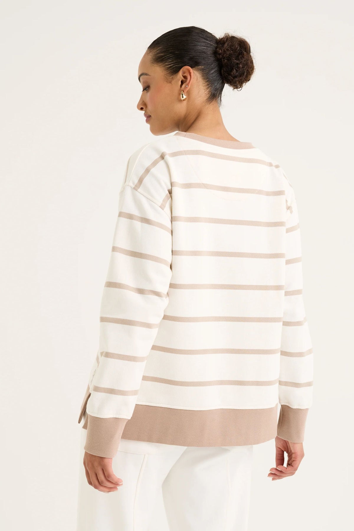 The Infinity Sweat is a classic by its stripe design. The round neckline and long sleeves ensure its timeless profile. Effortlessly style it with any of your favourite bottoms for the chic and fun twist outfit this winter.